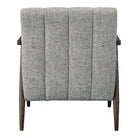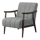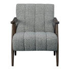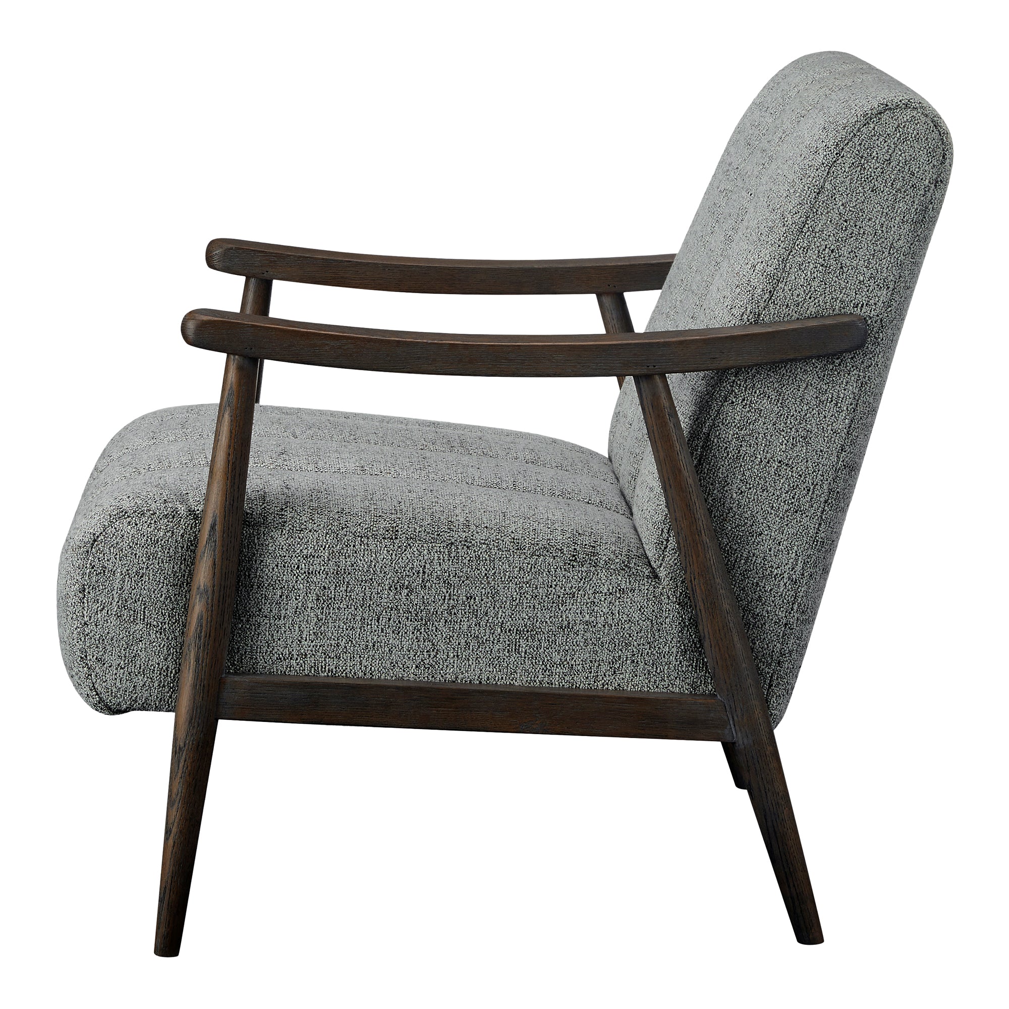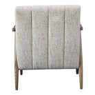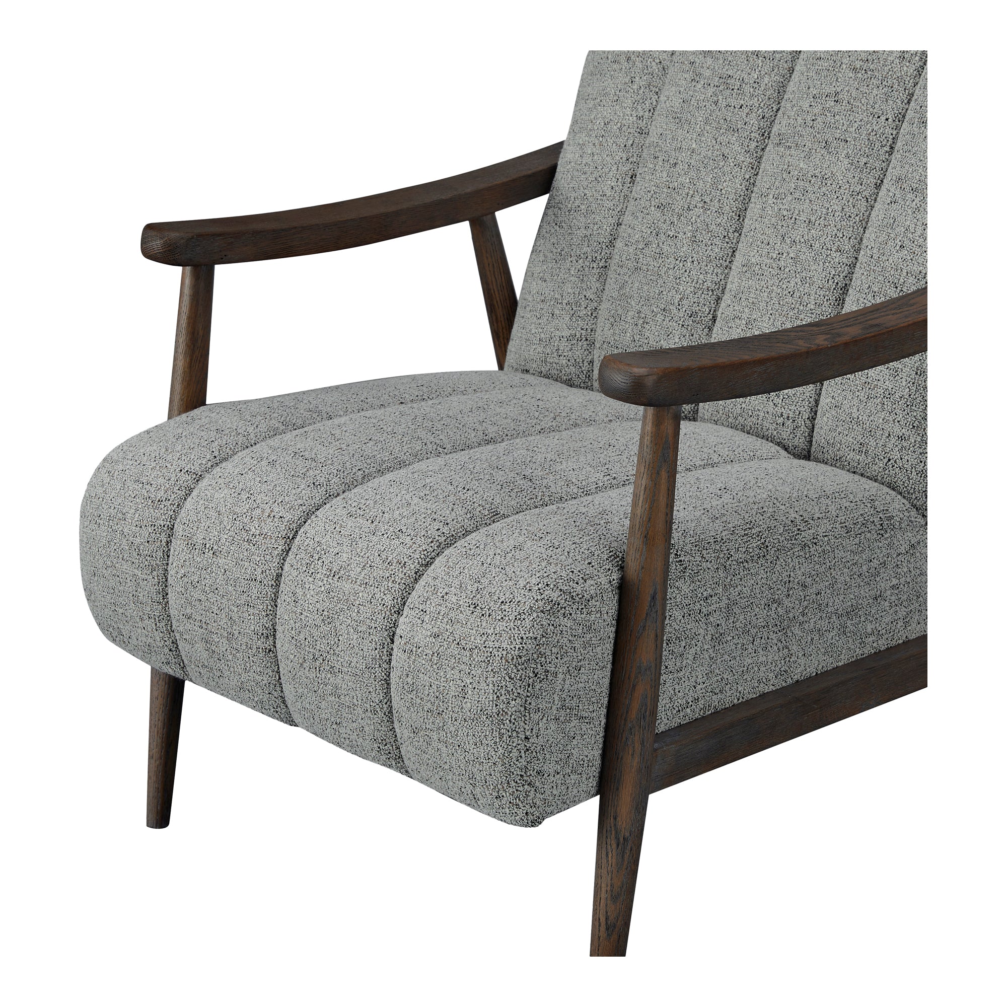 The Aster accent chair brings Mid-century inspiration and a rustic charm with a solid oak frame in an aged brown finish. Its channel detailing and textured upholstery in neutral tones add depth and visual appeal, while its timeless silhouette and meticulous craftsmanship add warmth to any space.