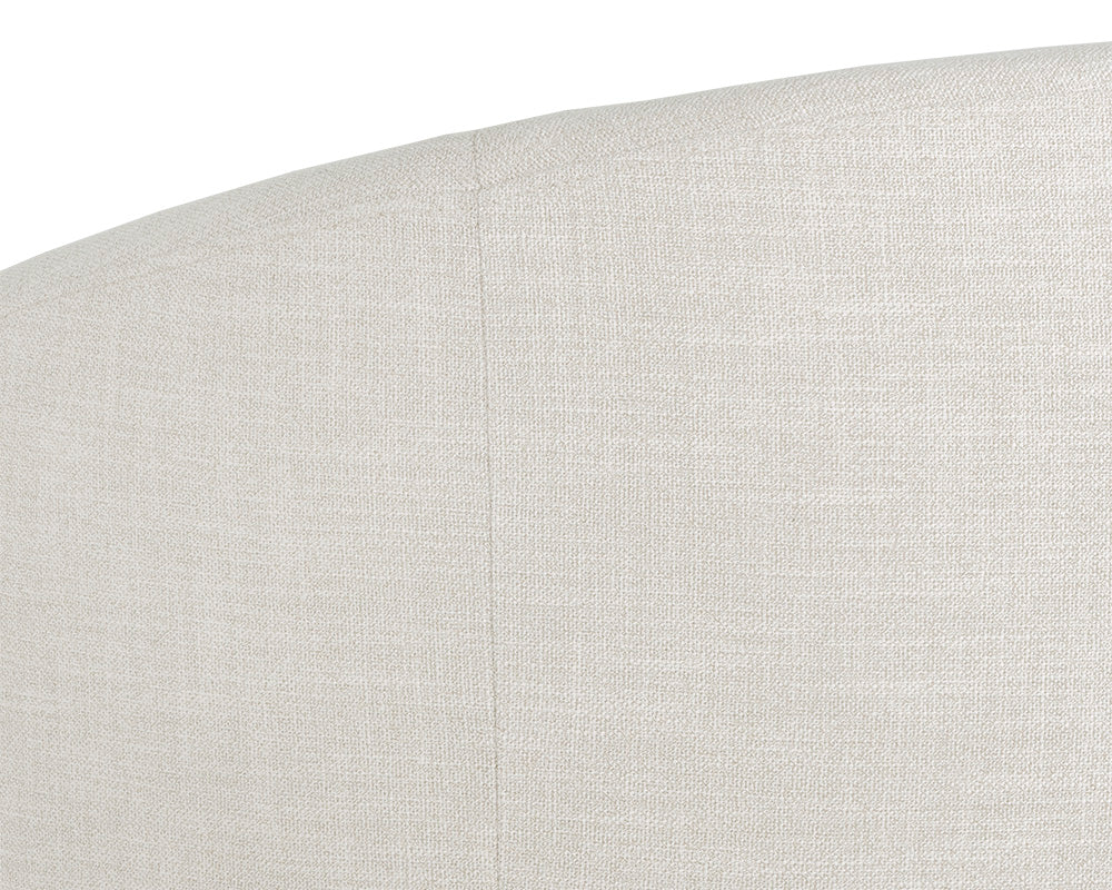Boasting a beautiful, curvaceous shape, this swivel lounge chair is both contemporary and effortlessly trendy. Stocked in effie linen and smoke fabrics, and completed with a black powder coated steel base.