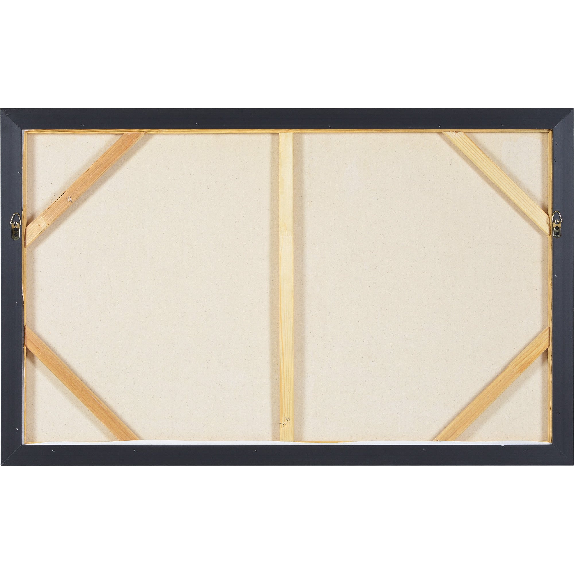 This work of ART is expansive in size and character. This hand-painted cotton canvas brings the meditative feel of staring out to sea right into the traditional interior space. The dark brown floating frame acts as a rich accent that grounds the soft hues of blue and beige.