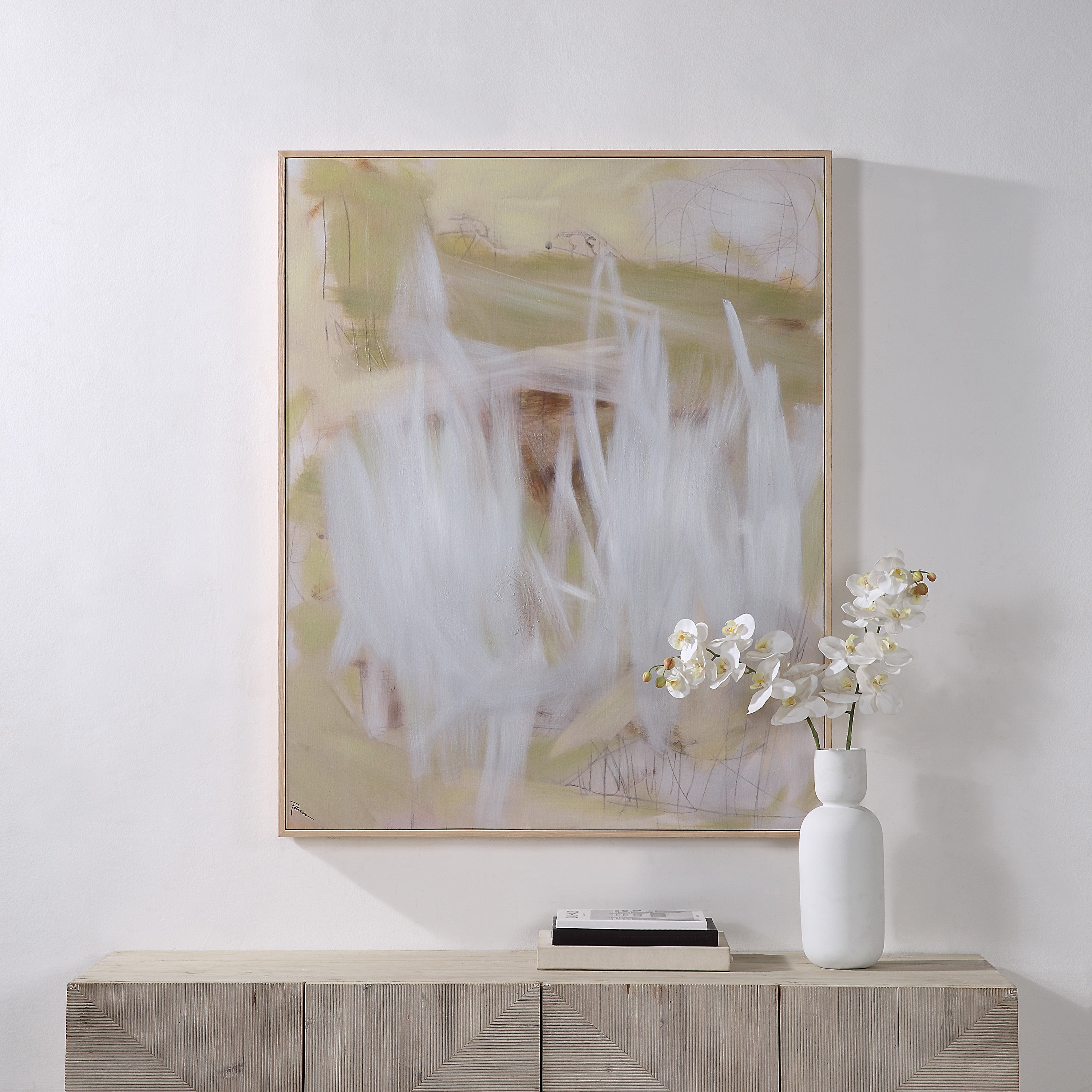 Add a touch of sophistication to your space with the Bonnet 40.1" Wide Canvas art with Wood Frame. This high-quality canvas is made from 100% cotton and is hand-painted, ensuring that each piece is authentic and unique. The wooden frame perfectly complements the canvas, creating a seamless finished look that's both polished and sophisticated. With vertical and horizontal hanging options, this canvas is versatile and will enhance any space in your home or office. The canvas comes pre-framed for immediate enjoyment, making it the perfect addition to any art collection.