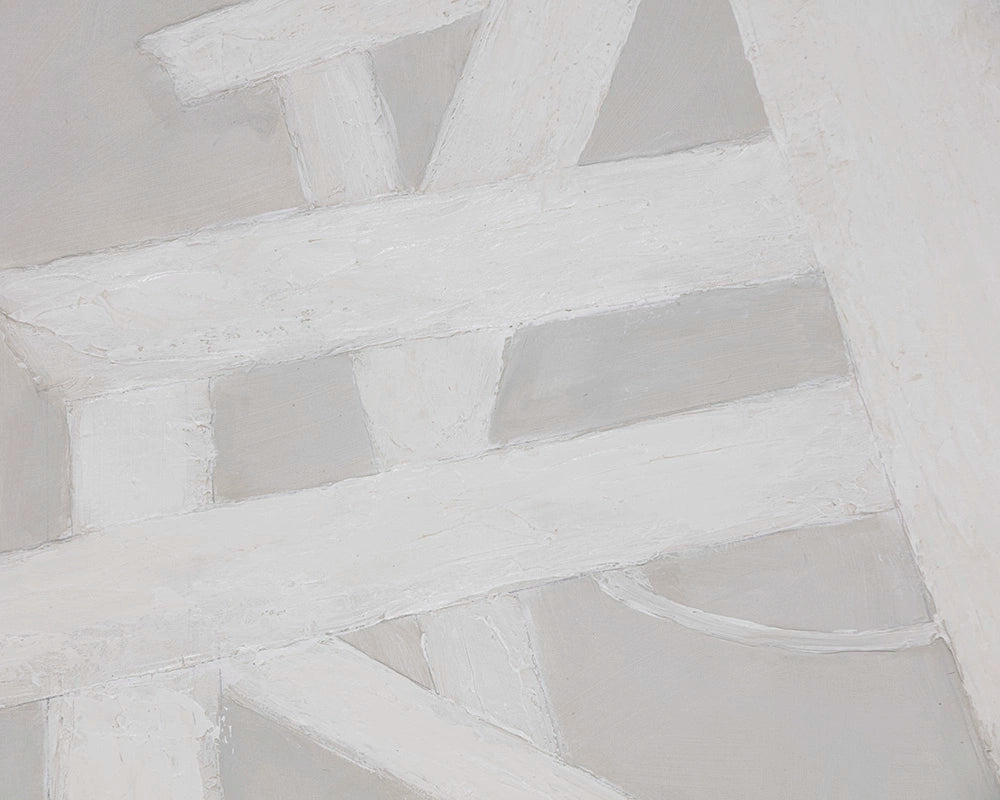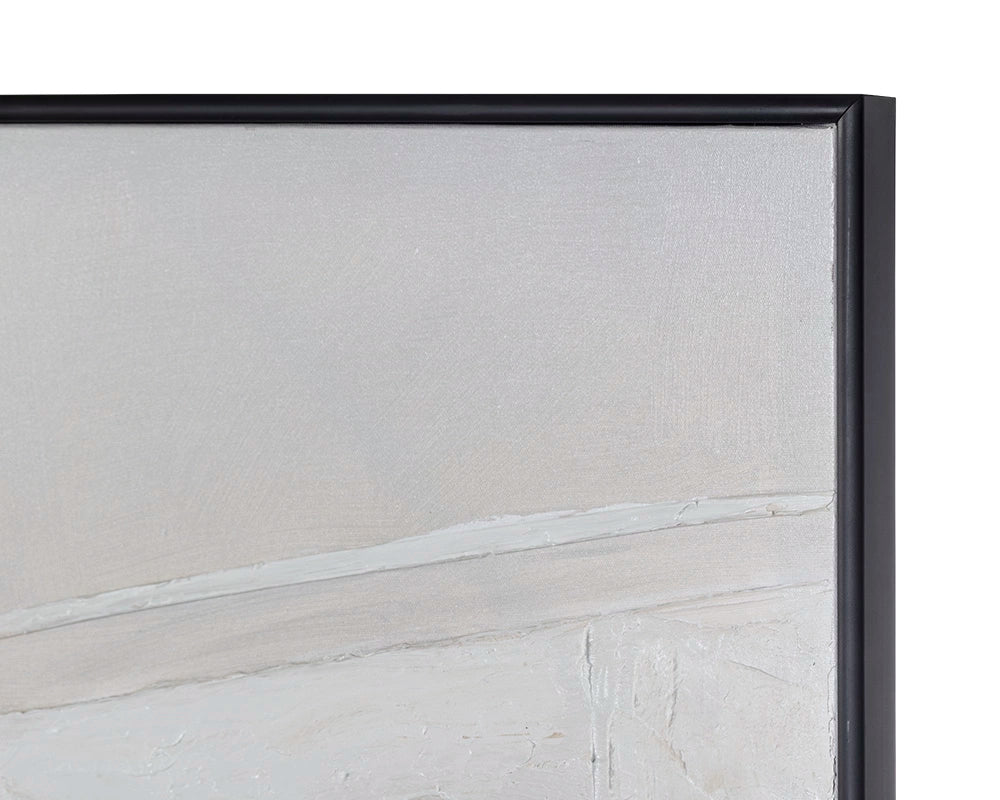 This contemporary painting is created with monochromatic brush strokes for a bold and stylish design. Features a black finished wood floater frame.