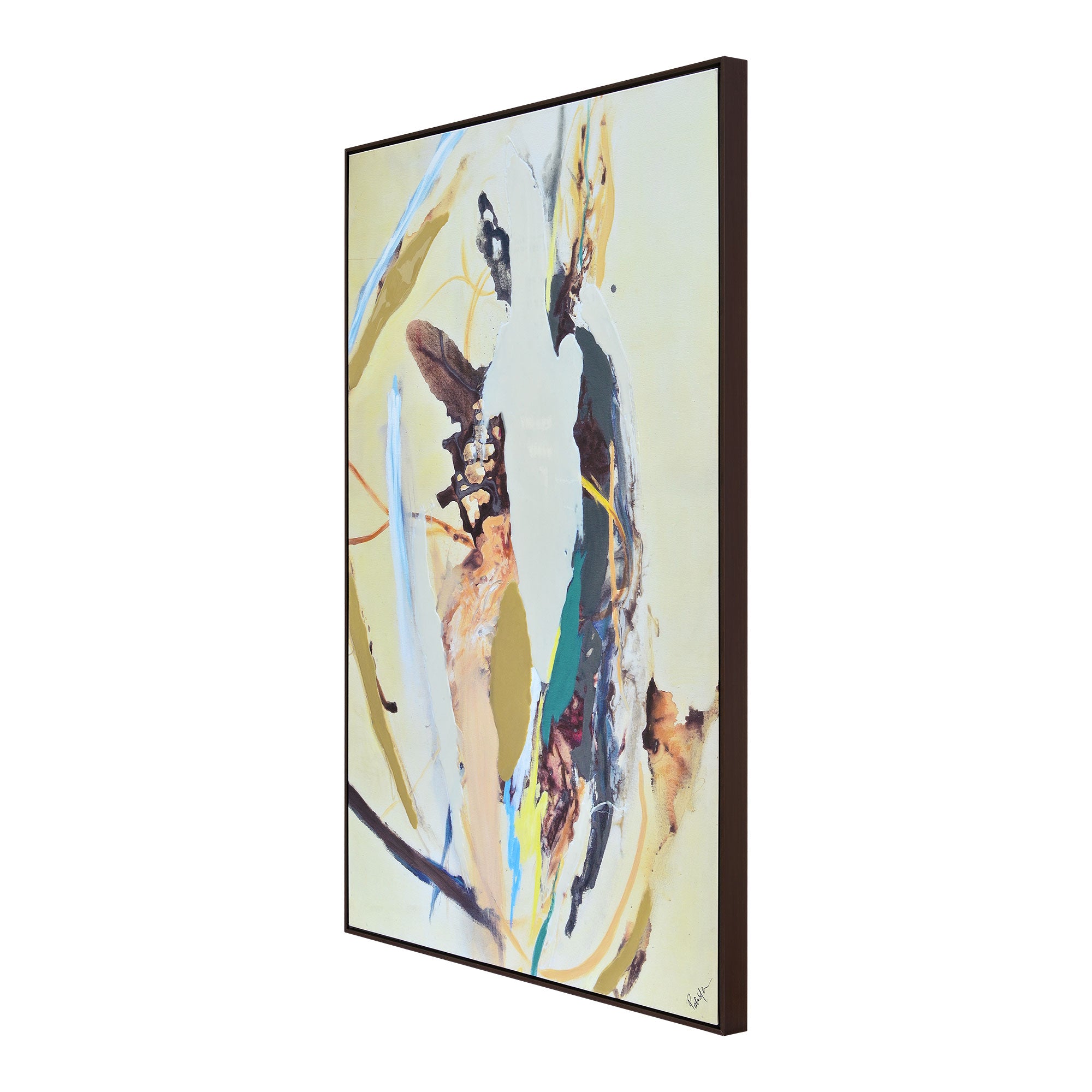Recalling visions of colorful feathers floating in the wind, this piece of modern ART has an intrinsic sense of joie de vivre. Whether hanging vertically or horizontally, this ART painting's grand structure allows it to become the focal point of the room while still enhancing its surroundings. Clients with a modern and creative aesthetic will feel most drawn to this design.