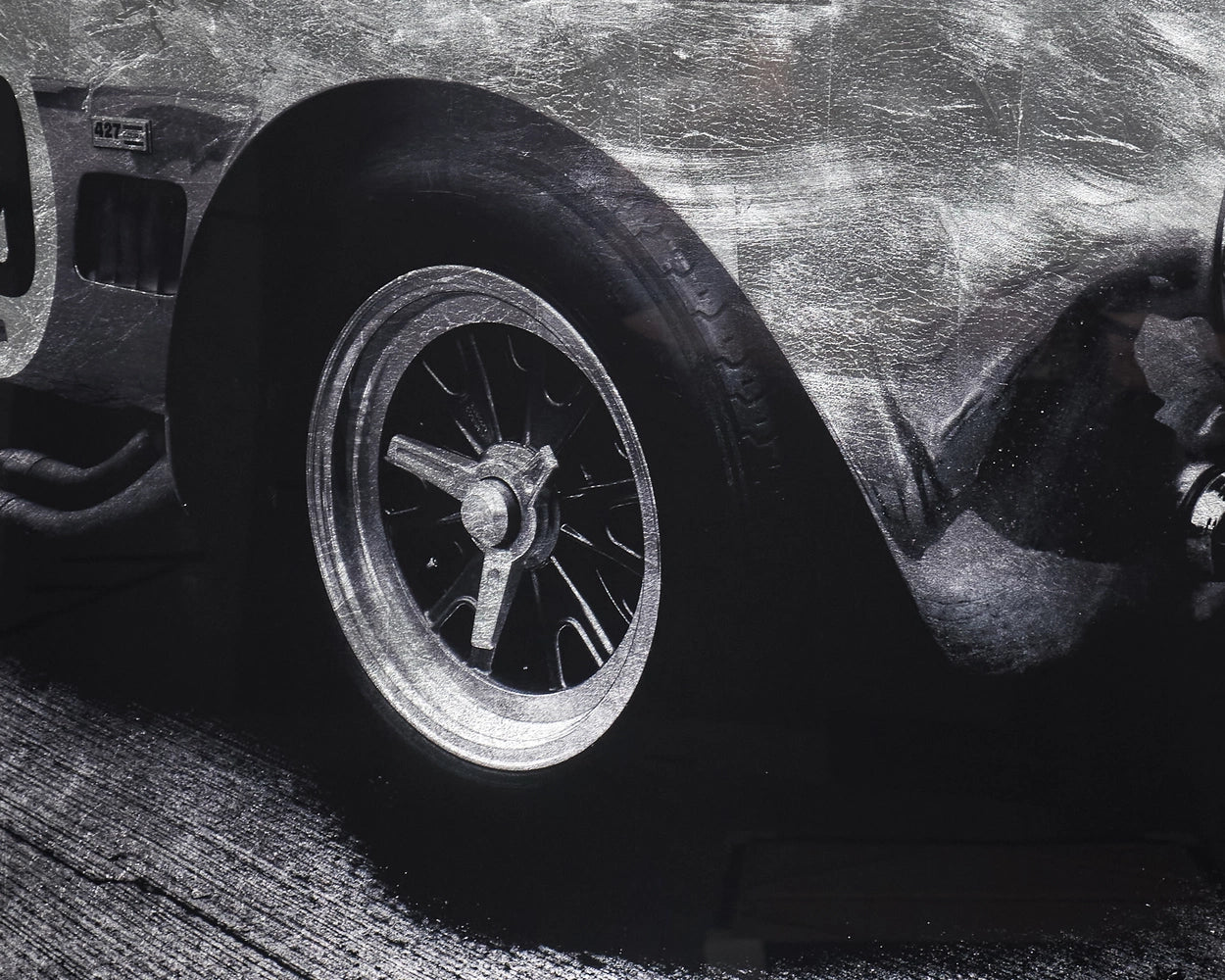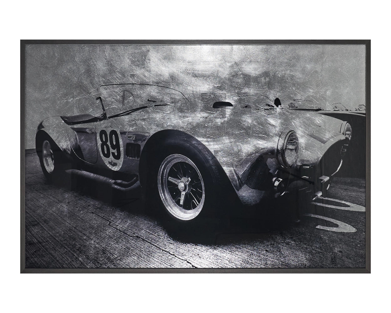 This vintage-look print from our Luxe Art collection is perfect for the car enthusiast. Taken at the Silverstone Circuit, home of British Motor Racing, it features an AC Shelby Cobra 427. This labour intensive piece first begins with reverse printing on acrylic. Silver leaf is then slowly applied by hand for a reflective, shimmering surface. Finished with a charcoal wood floater frames. Due to the reflective nature of acrylic and silver leaf, images on site may not capture the artisanal characteristics precisely. Hand-finished items will vary from piece to piece, resulting in a truly one-of-a-kind artwork.