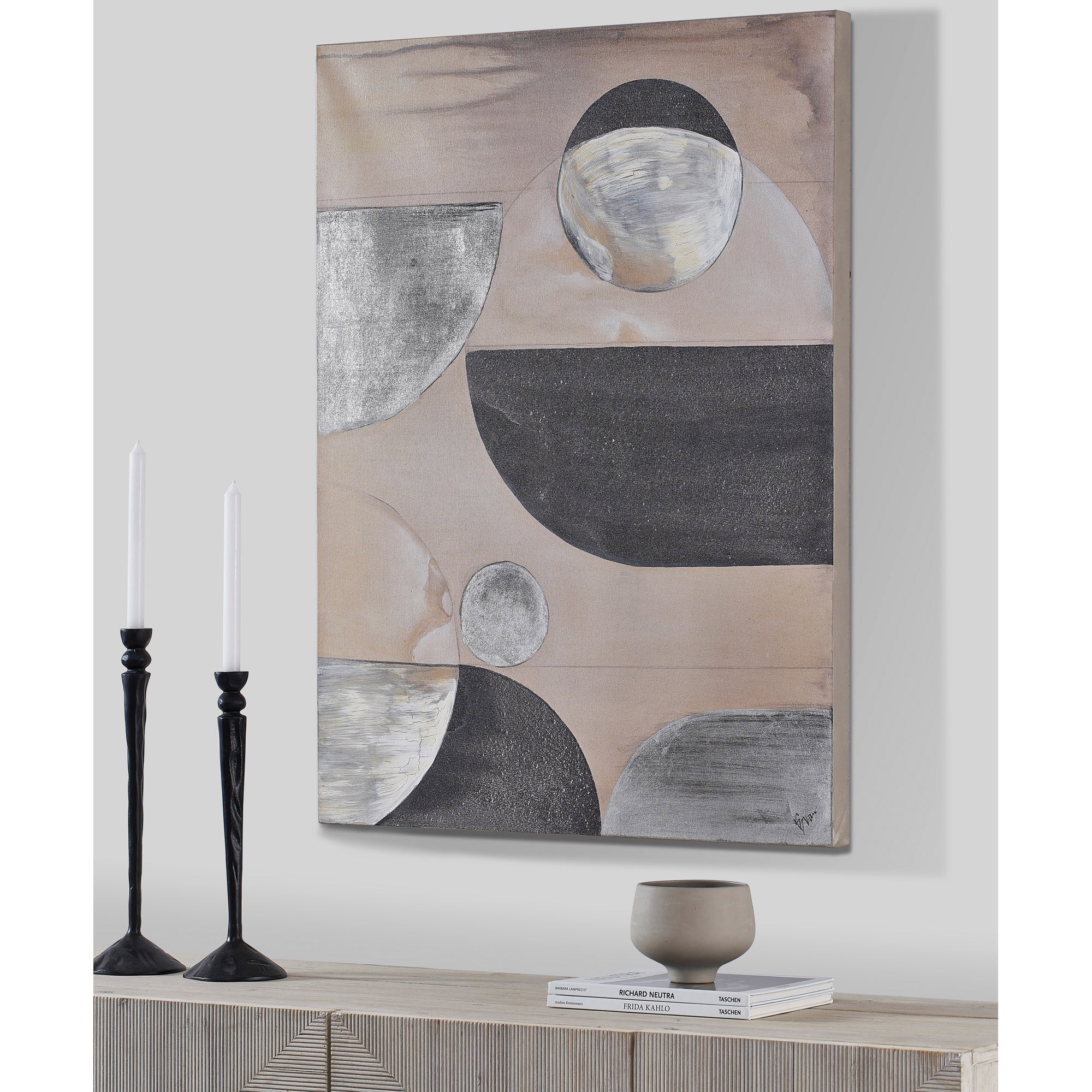 This piece acquiesces into the interior without becoming the core component. Featuring a blend of smooth and sharp edges, the modern cotton canvas holds softness and sophistication in one. The beige and navy blue tones and mixture of print and hand-painted touches showcase the creative power of contrast.