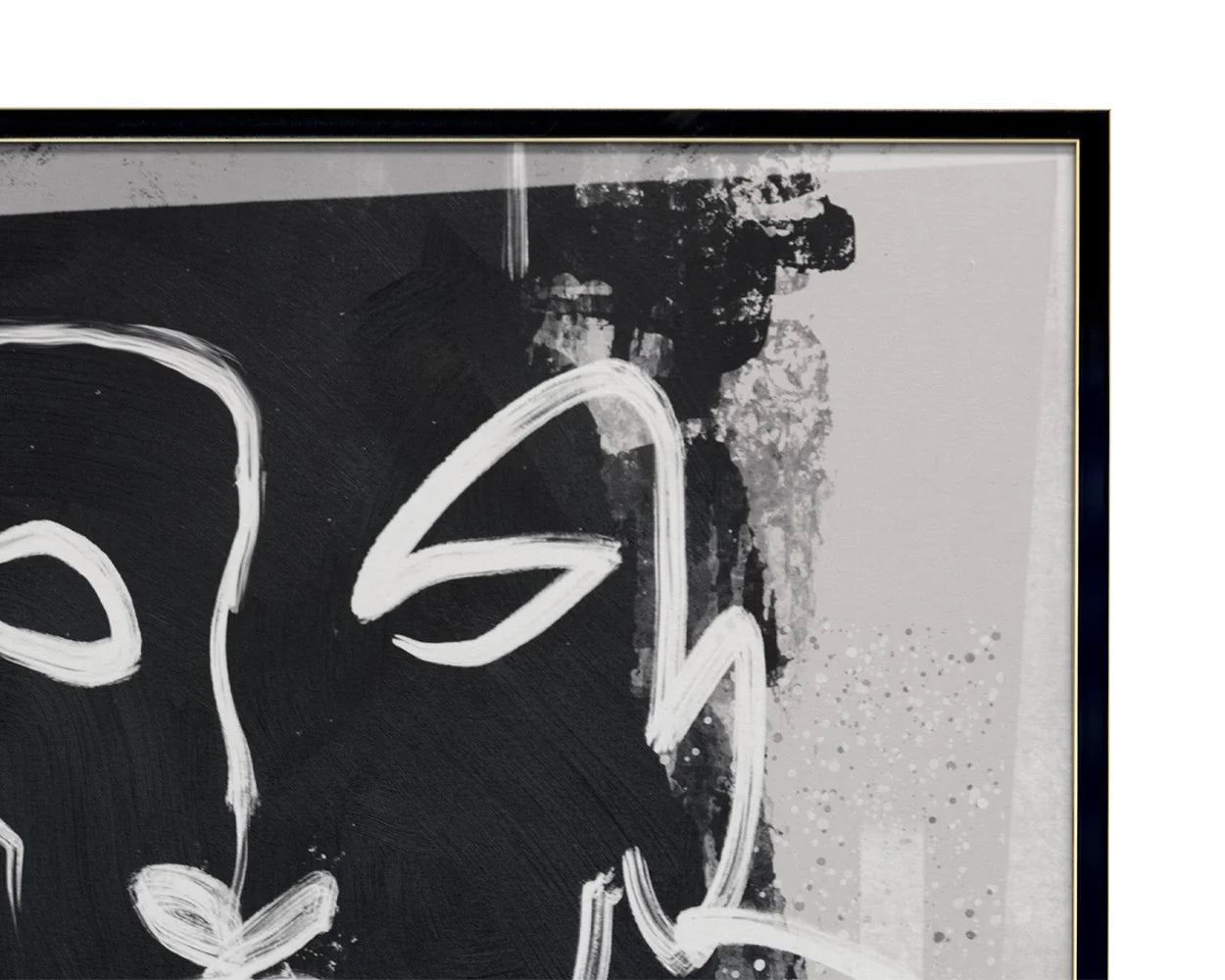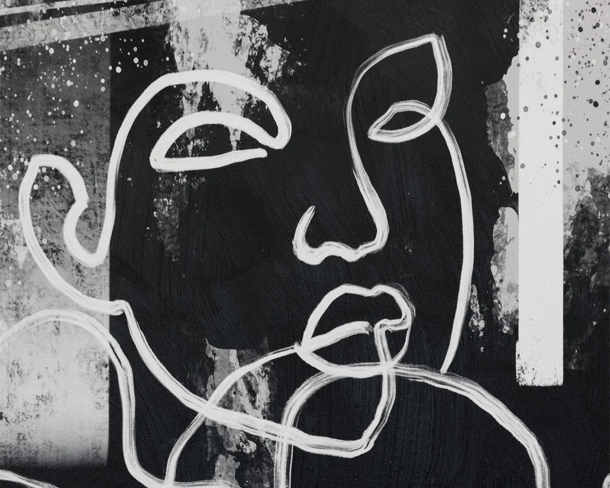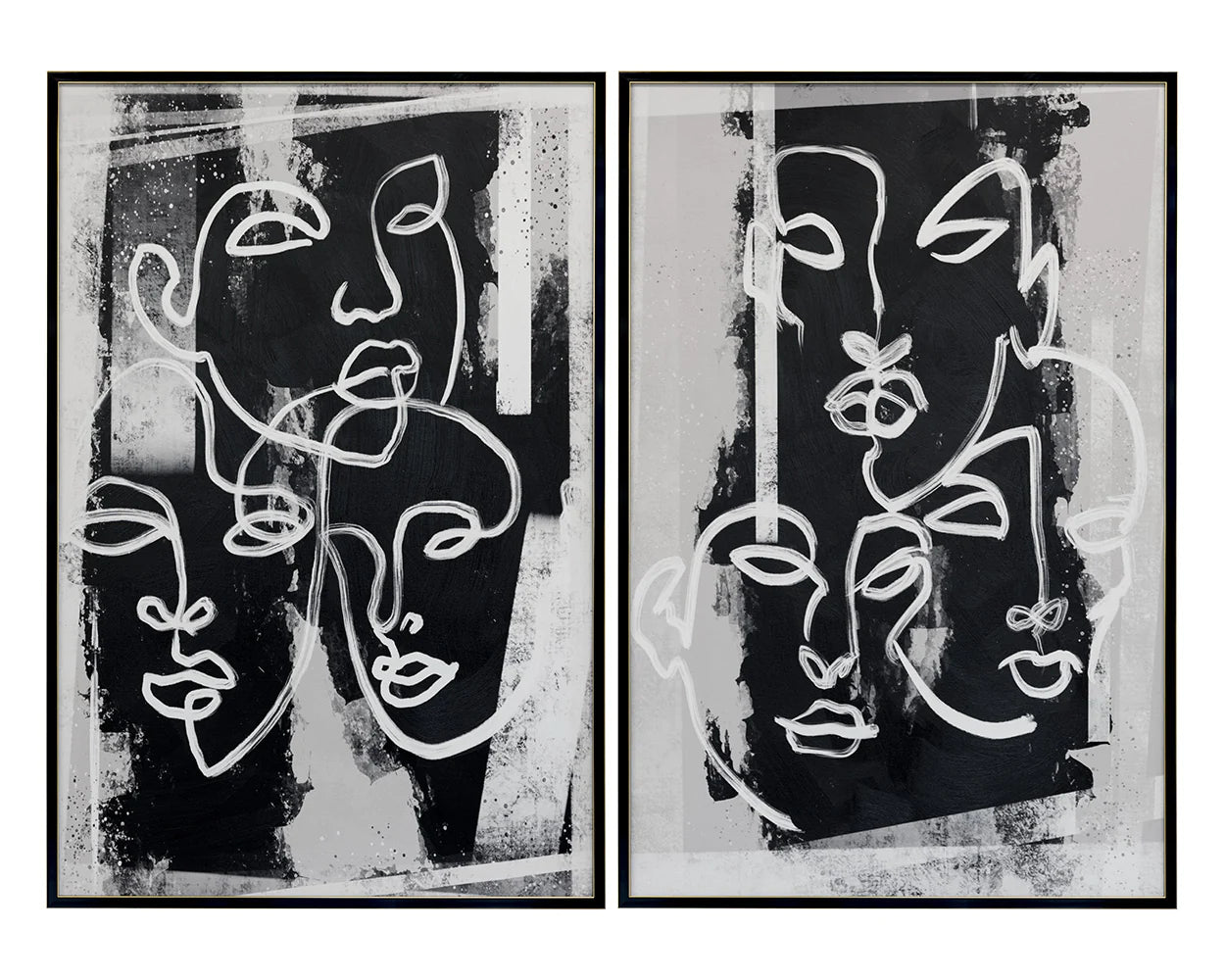 This diptych is replete with expression and urban flair. Each piece is printed on textured canvas with the painted visages looking in opposite directions. Features black wood floater frames with a gold trim.