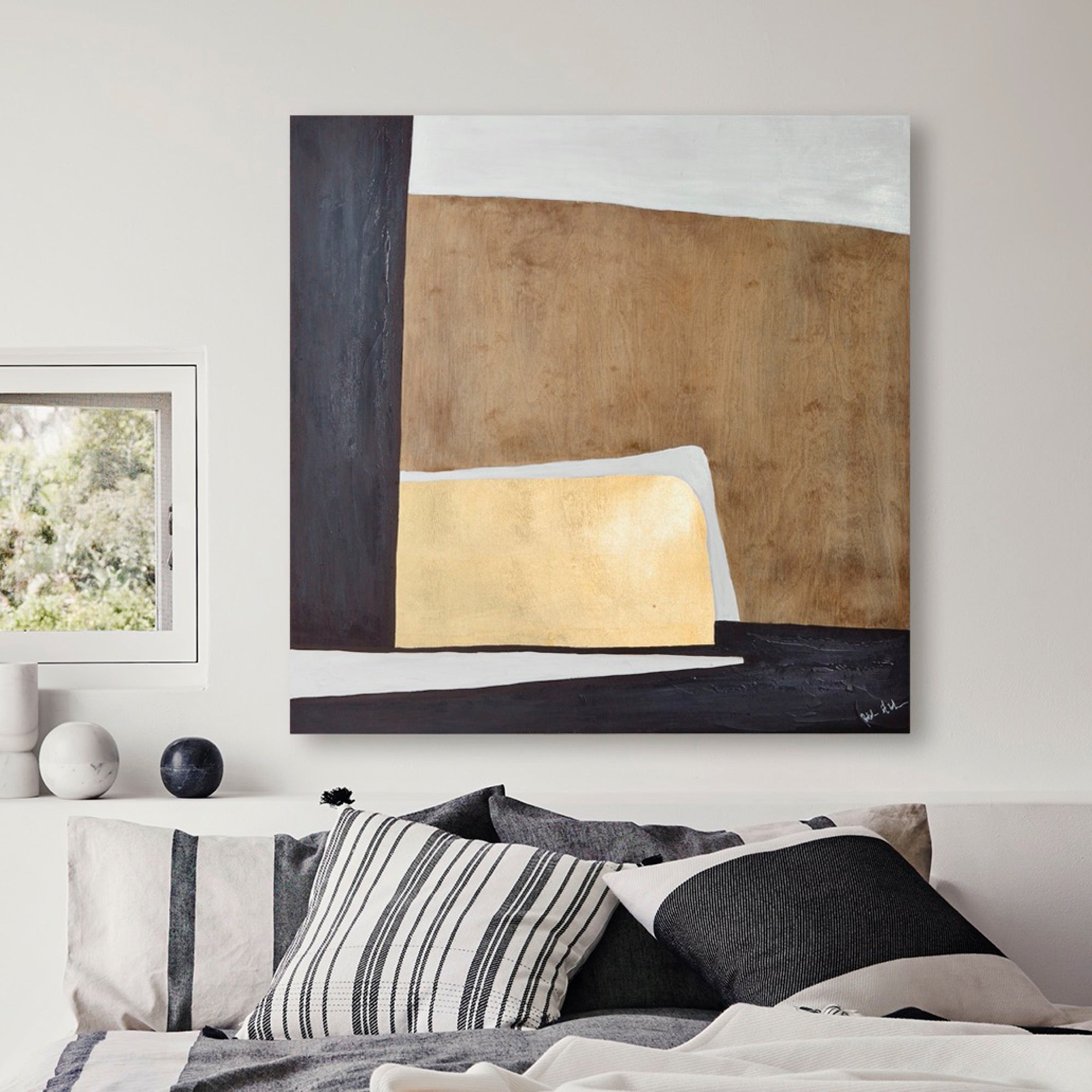 Showcase your unique style with this black, white and wood design. The hand painted polywood’s square shape features gold leaf accents for depth and interest. It adds instant impact when placed in a powder room.