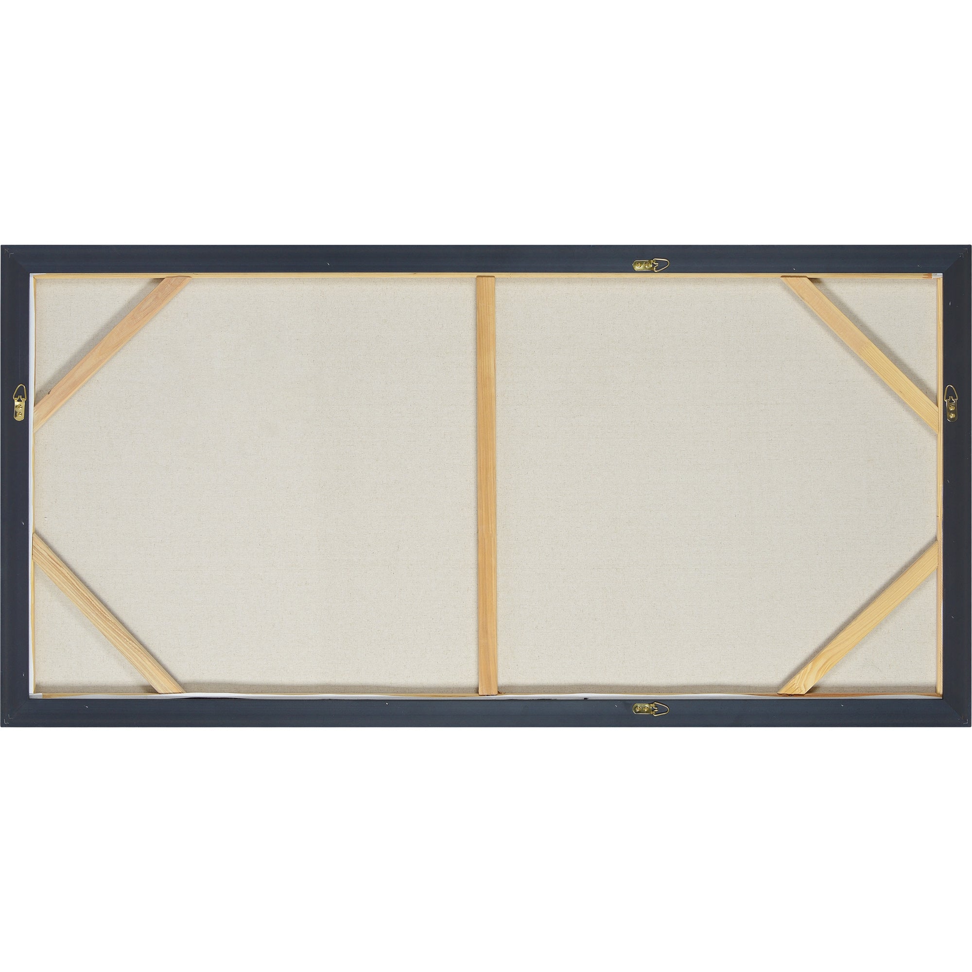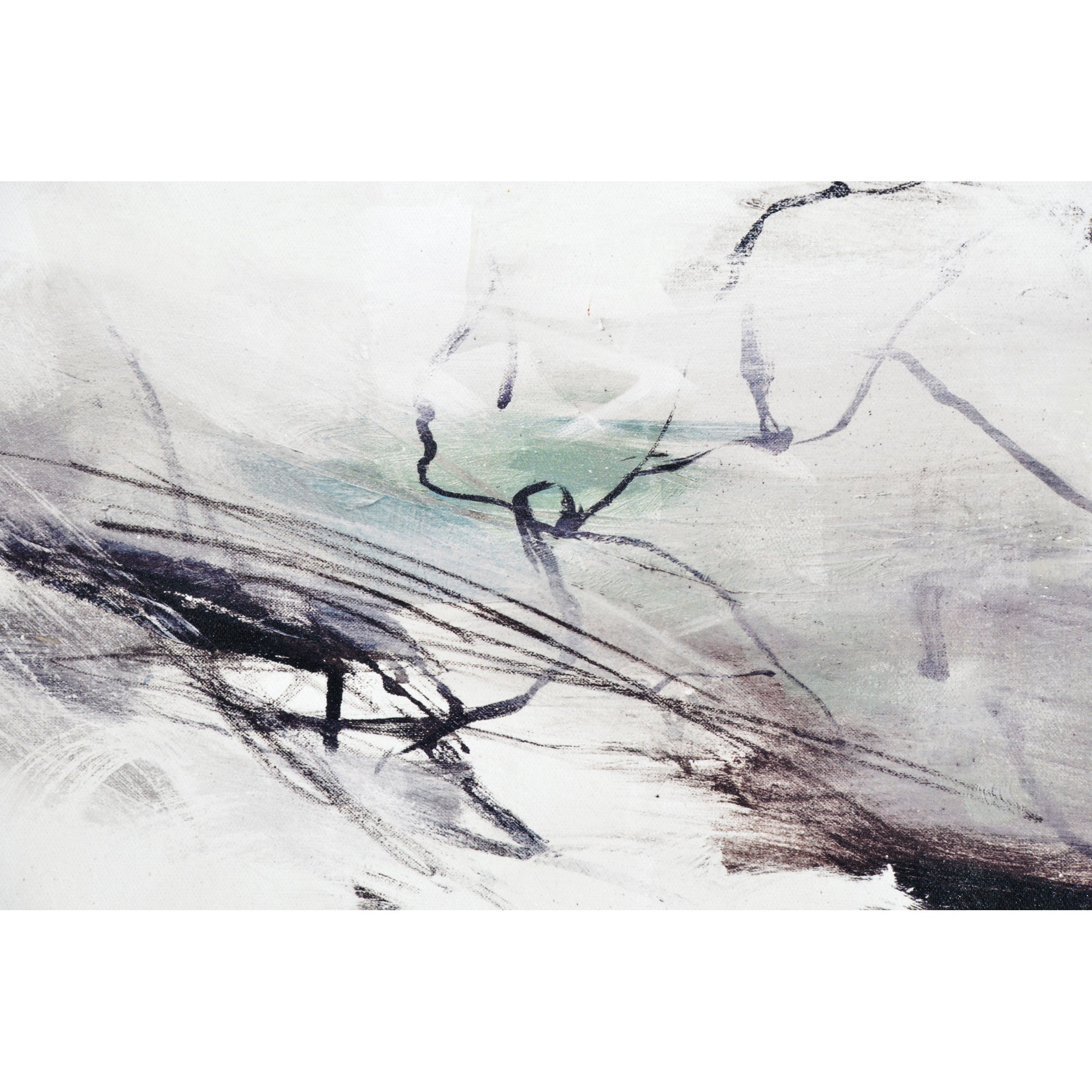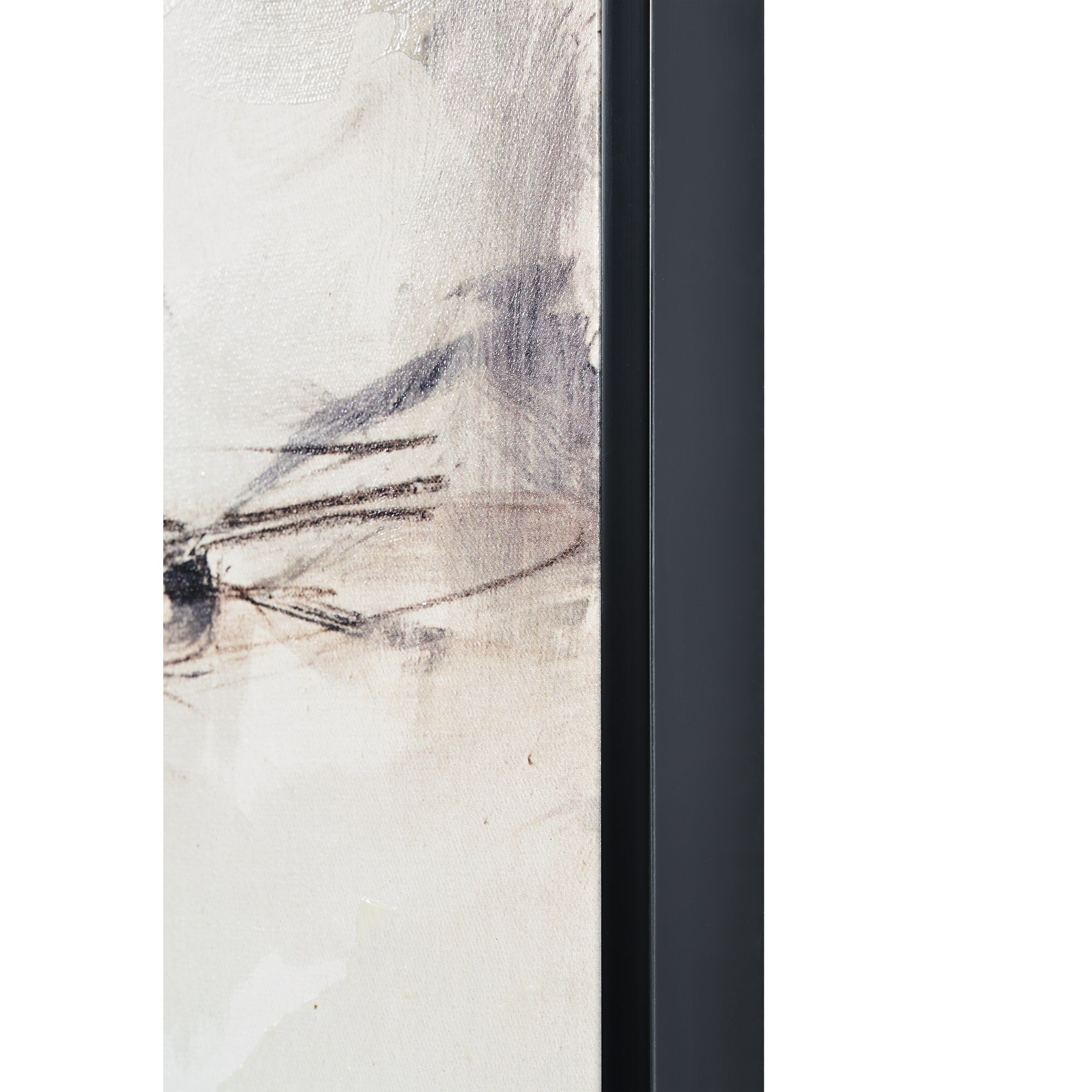 The imagination is let loose when taking in the abstract design of this work of art. The black strokes are at once bold and delicate, creating a story against the grey background of the piece. A black frame allows the details to pop even further, particularly when hung either vertically or horizontally within the modern interior.