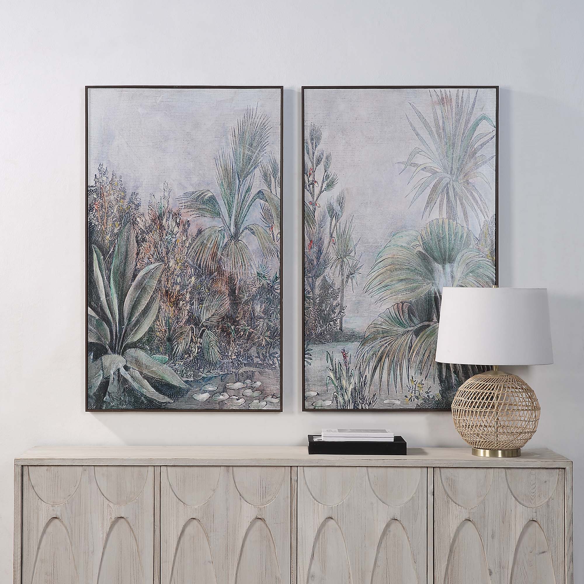 This set of canvas ART paintings breathes life into the creative interior. The soft hand painted brush strokes and pastel palette transformed the captured scene in nature into a dreamscape. Set in a living room or bedroom, this work of ART completes the welcoming, warm energy a homeowner aims to create in the space.