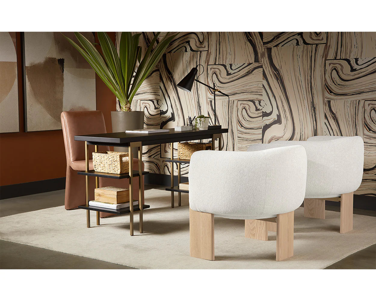 Abstract strokes of taupe, black and dusty mauve radiate a soothing sense of calm in this tropical-inspired diptych from our Luxe Art collection. Printed on textured canvas and finished on a charcoal floater frame.