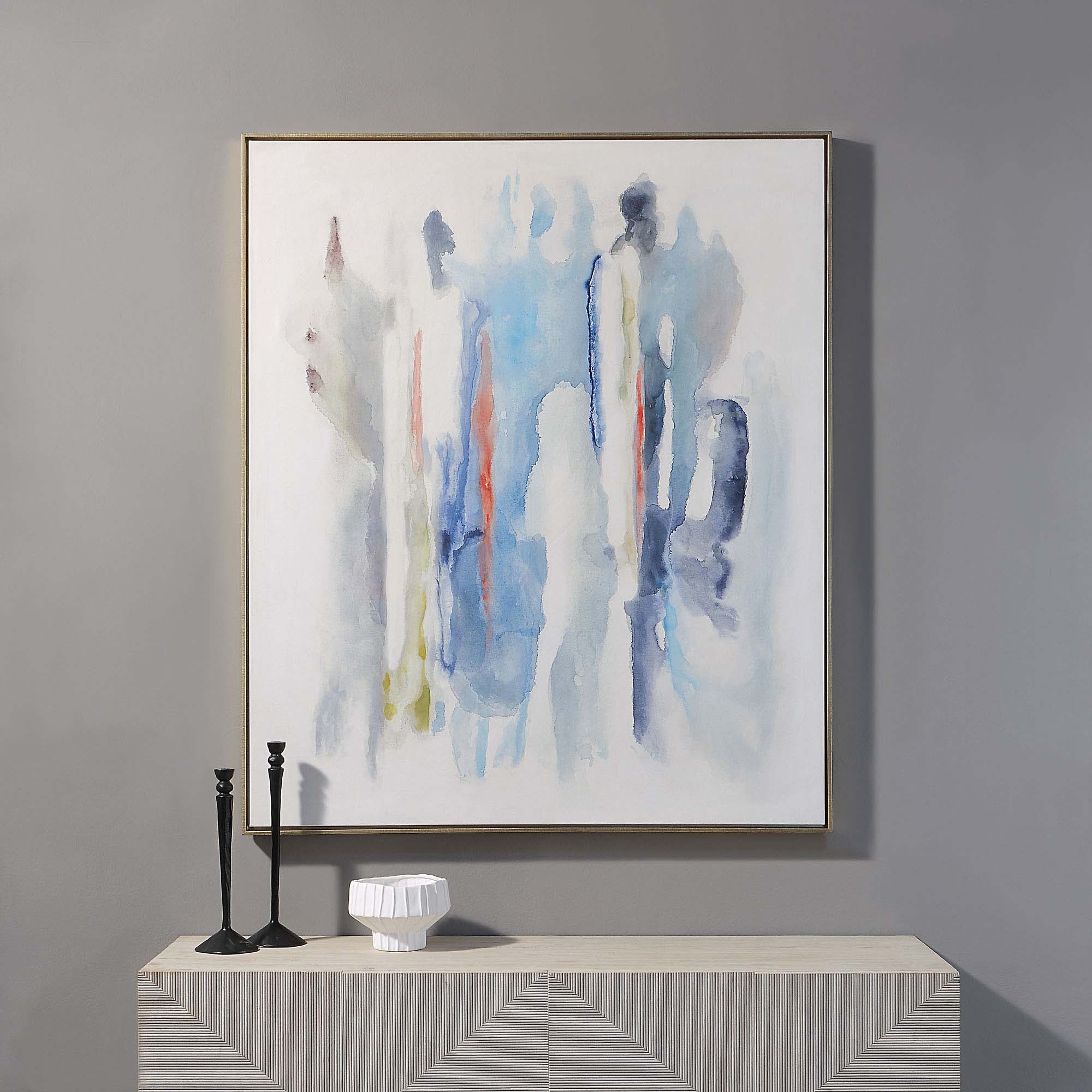 Reminiscent of watercolor, this framed canvas ART brings dreamy energy to the space it hangs within. The client with a creative, contemporary space will find this work of ART's marriage of vibrancy and minimalism to be just right. Set in a bedroom, living room or entryway, horizontally or vertically, it sparks the imagination in new ways with each iteration of arrangement.