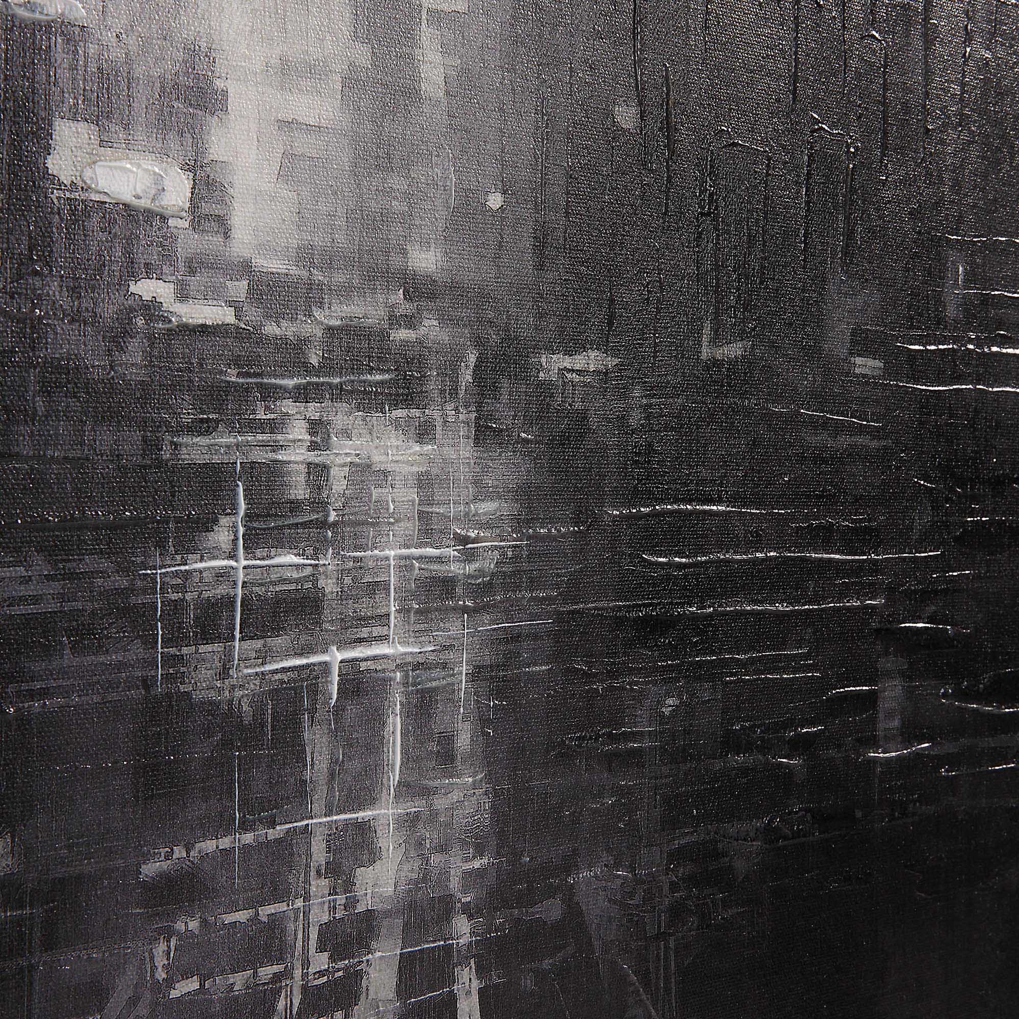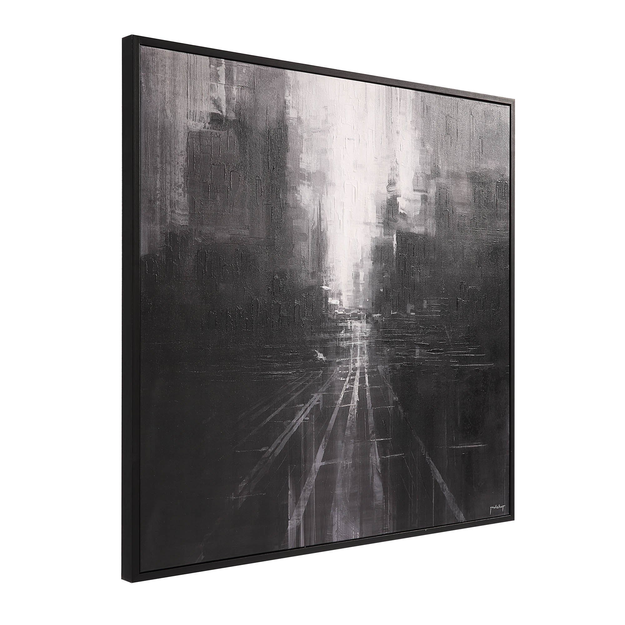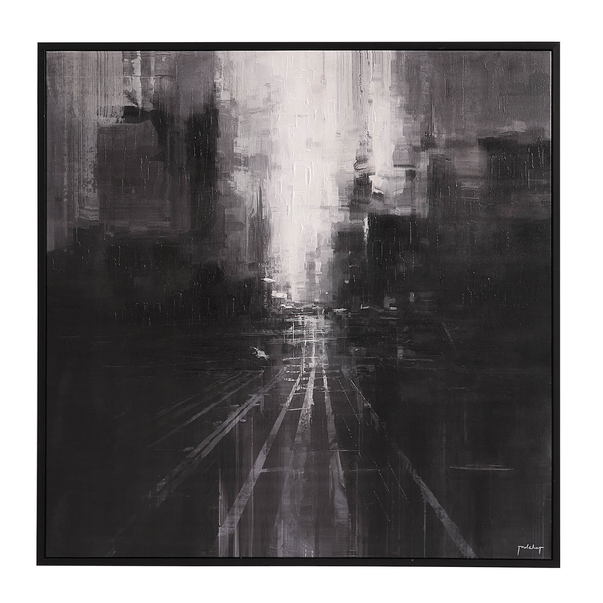 An intriguing image reminiscent of a blurred city street, this canvas painting offers great versatility for arrangement. In a contemporary gallery wall, this art painting brings dimension to the grouping while complementing the pieces in its midst. In the minimalist home, it adds personality to a space while maintaining a serene atmosphere.