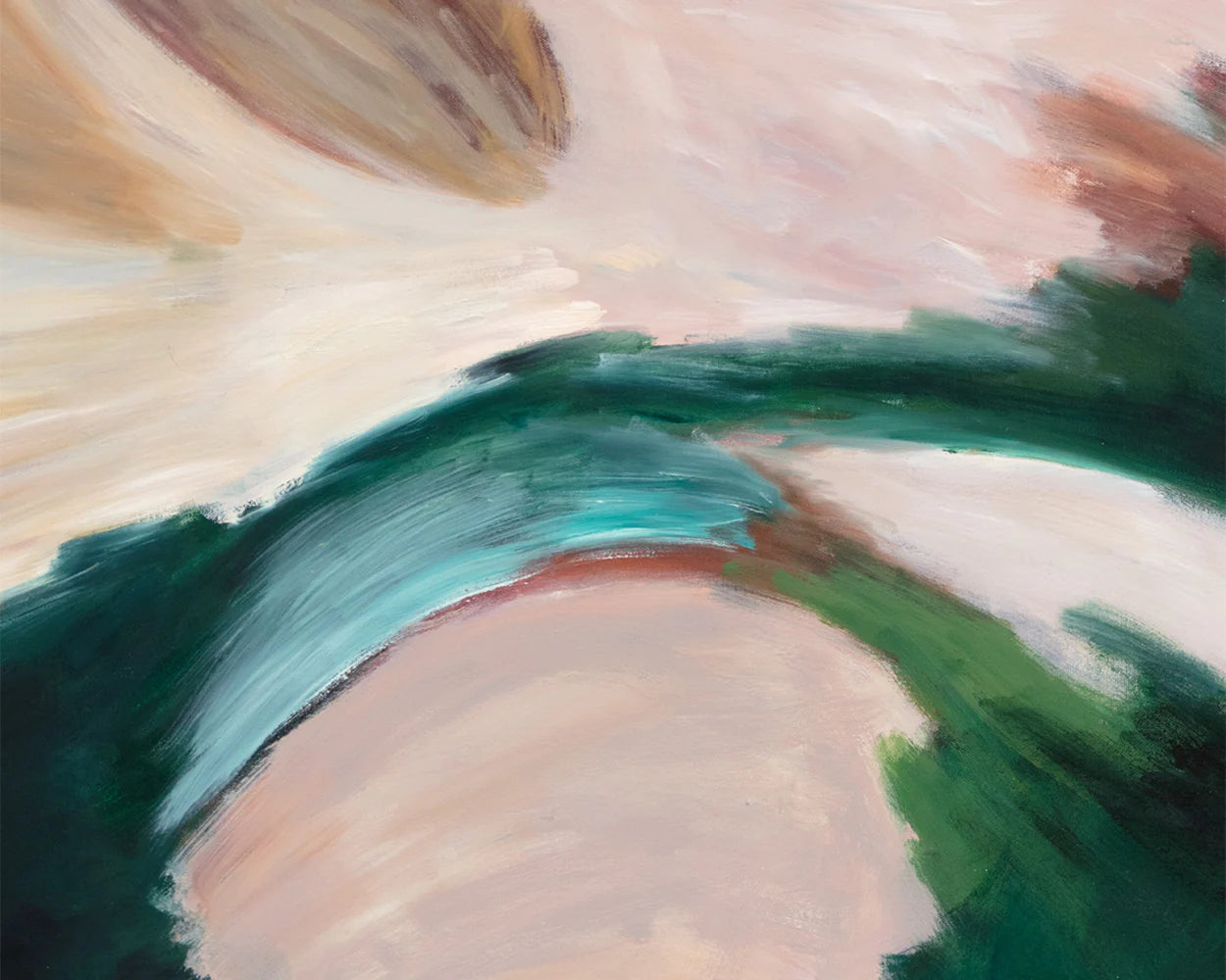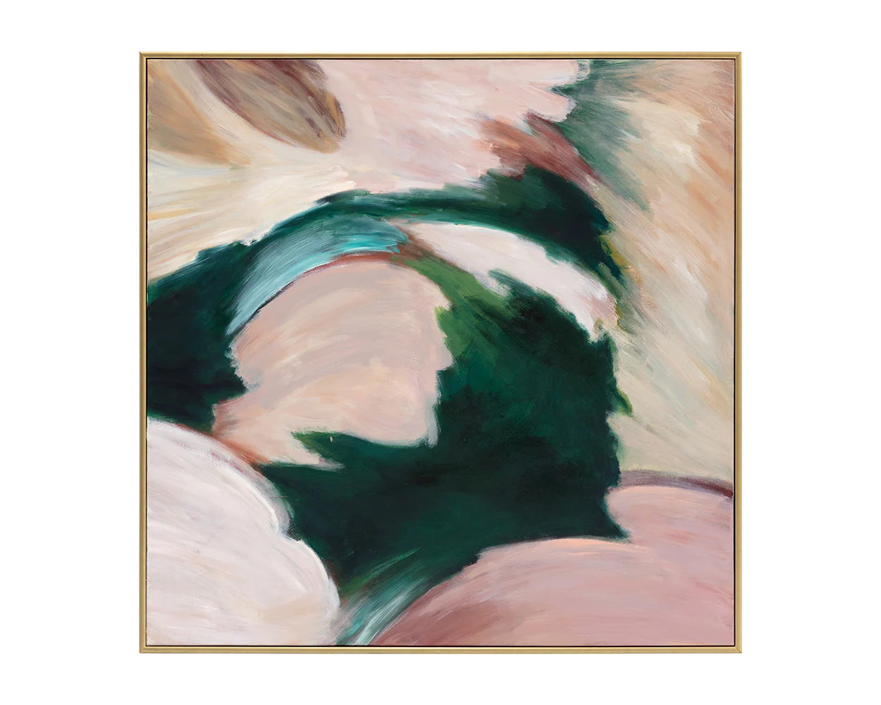 Swirls of pink and green harmonize in this retro diptych painting. A classic art piece, this will hang well in any living space for a soft pop of colour. Features a gold wood floater frame.