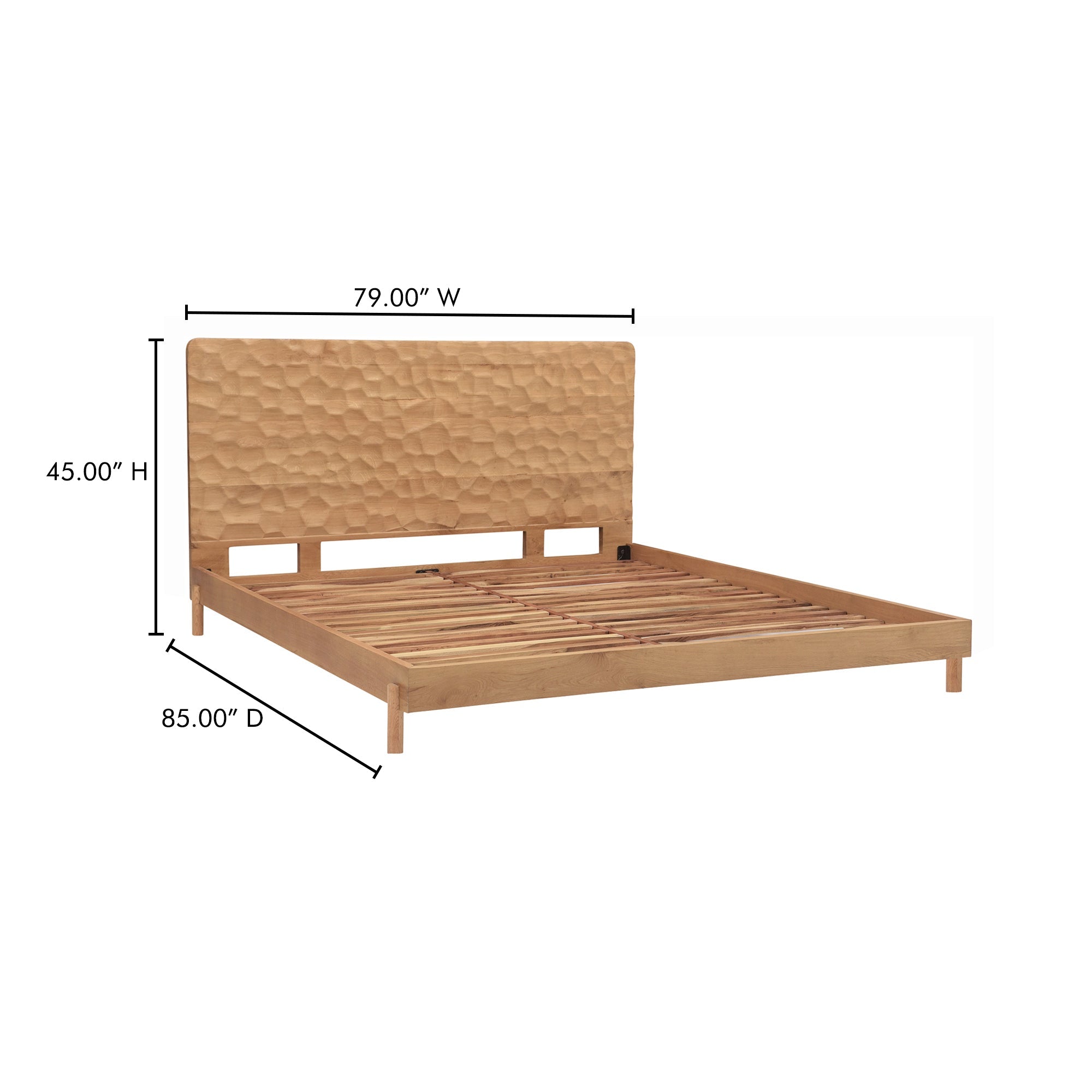 A three-dimensional love letter to the splendor of the vast cliffscape of the island of Okinawa in Japan, organic shapes reminiscent of hand-chiseled detailing adorn the headboard of the Misaki bed. Each groove is carefully carved out to lovingly represent the history and soul of this otherworldly place, adding depth and warmth to this dreamy piece.