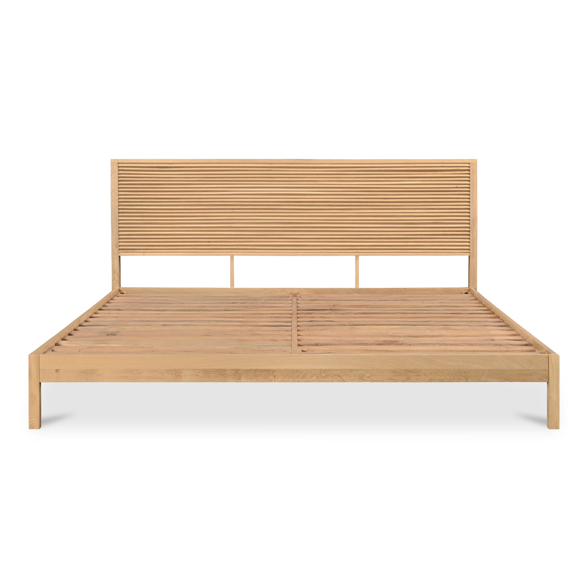 Inspired by the jalousie windows of Florida, the Teeda king bed’s shutter-like headboard evokes memories of warm, tropical days where the aroma of freshly-picked oranges and sizzling BBQed prawns fill the air. Its clever arrangement of slats creates an exquisite play of light and shadow, a stunning visual element that adds depth and texture to any space. Crafted from solid oak, this bed exudes timelessness while providing plenty of visual intrigue.