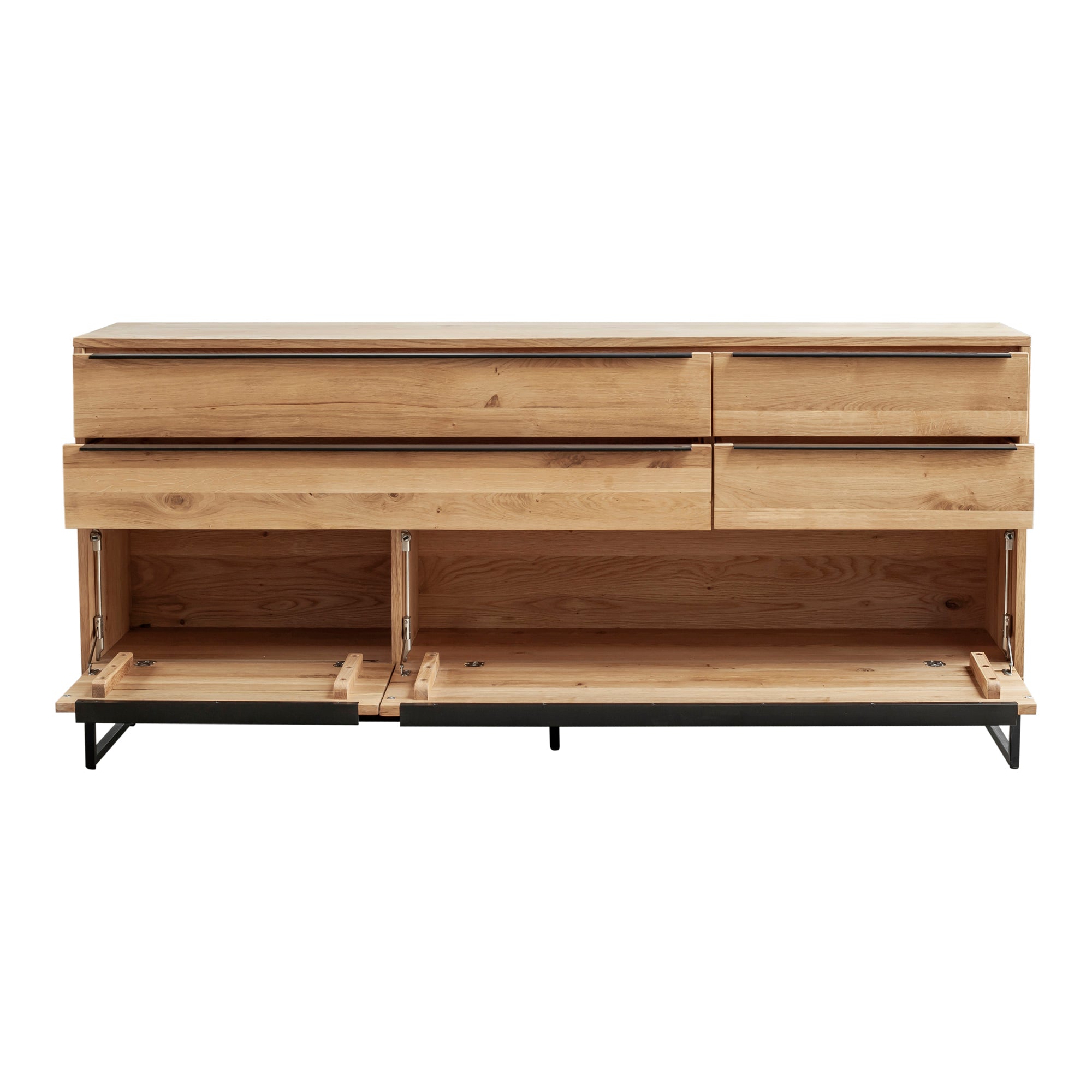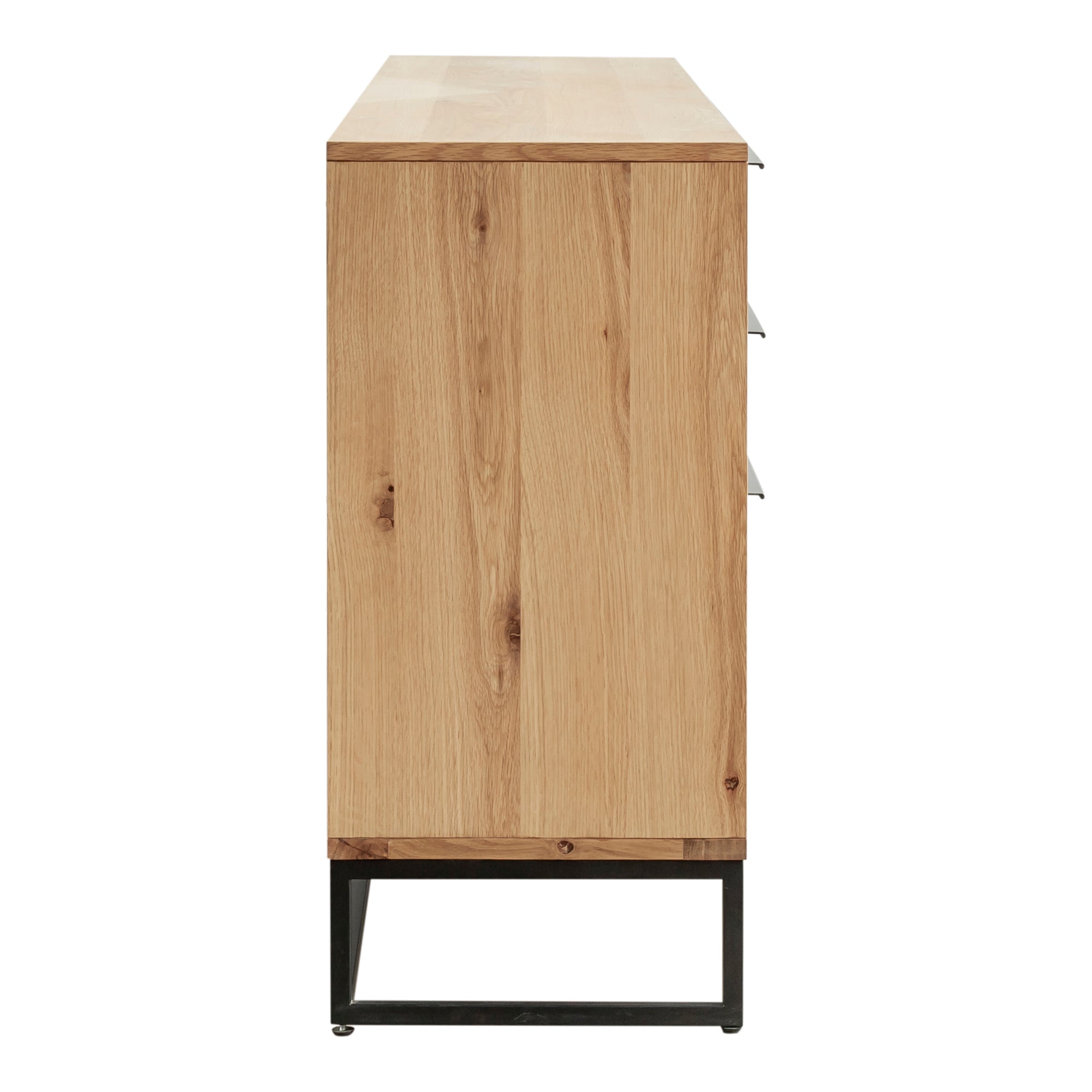 The Nevada Sideboard is the ultimate storage for your dining room. Complete with drawers and cabinets, you'll have plenty of room to store dishes, glasses, and table linen. Long-lasting oak and a metal base make this a solid piece for your home.
