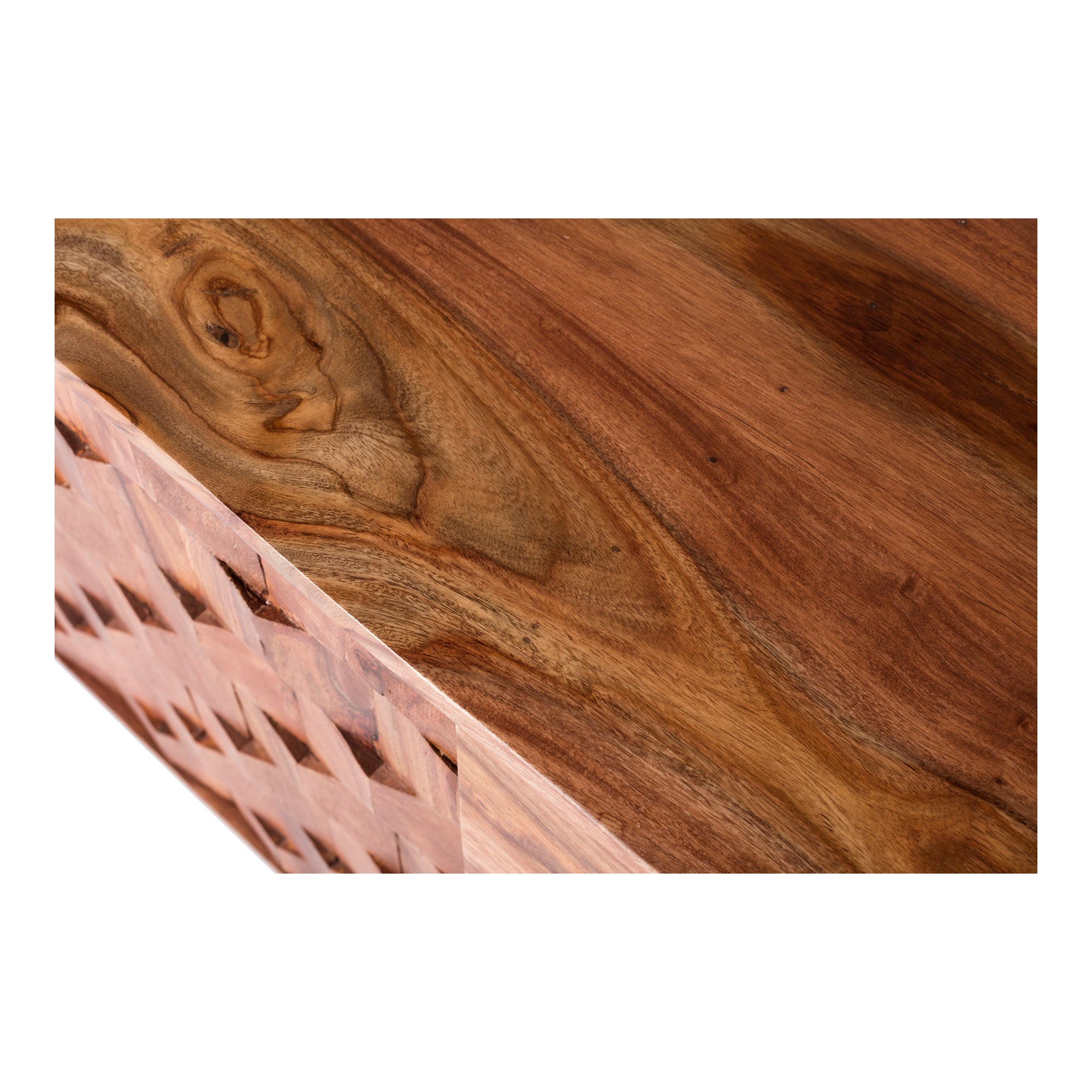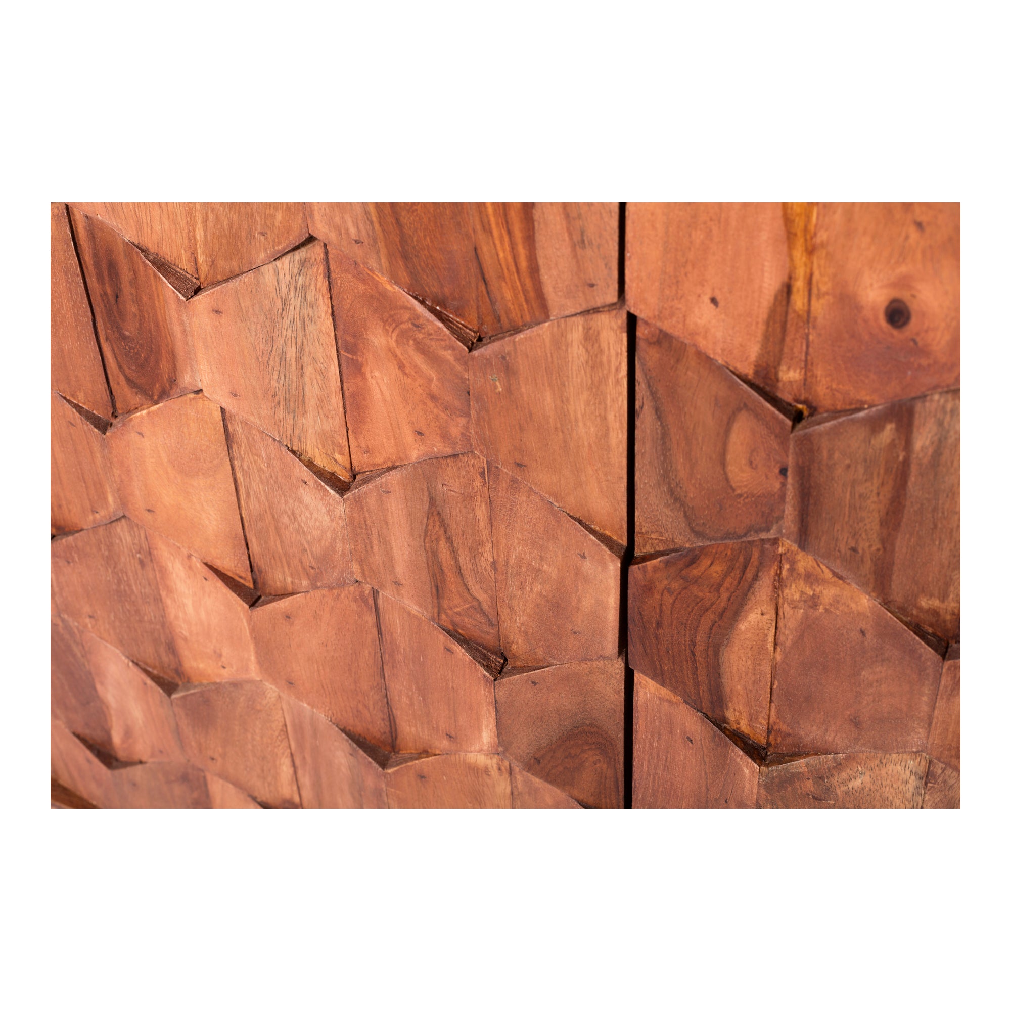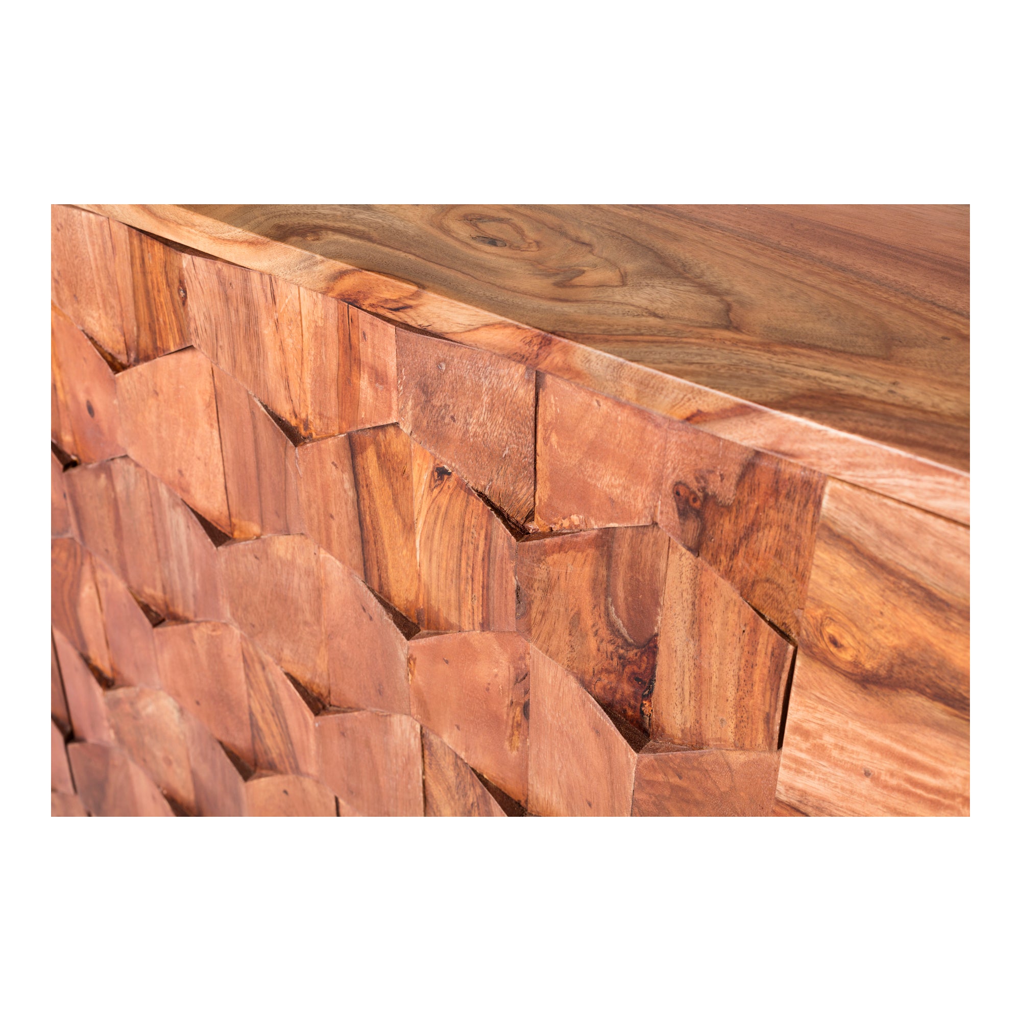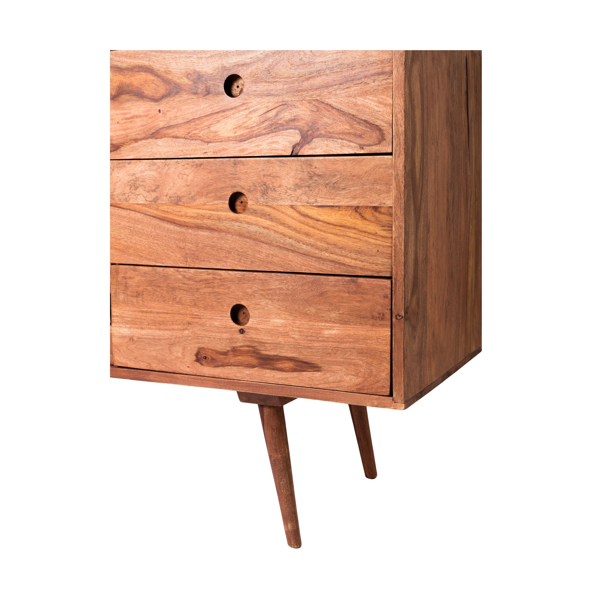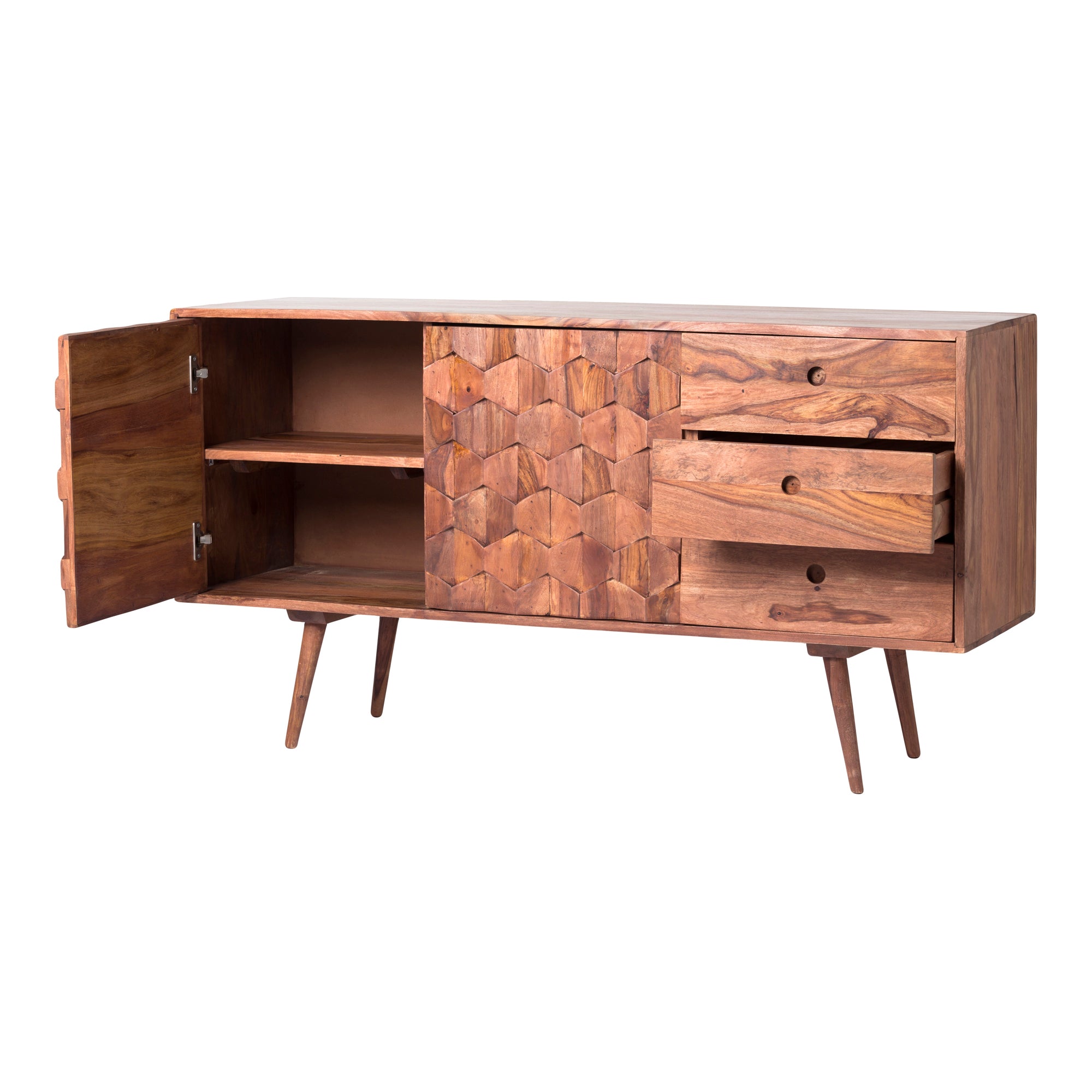 Crafted from solid sheesham wood, the O2 Sideboard has loads of storage in a compact size. The contoured doors add texture and dimension to your room. Set on thin pencil-styled legs, to add an elegant touch.