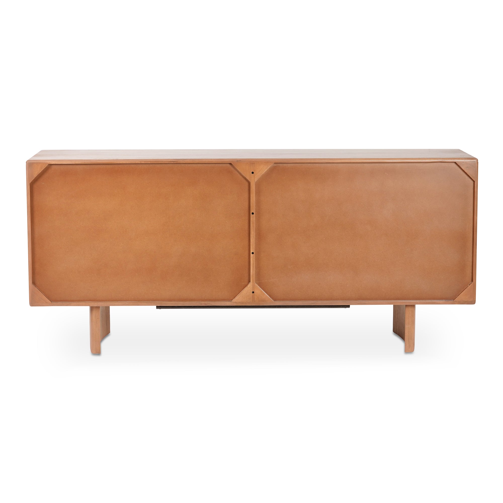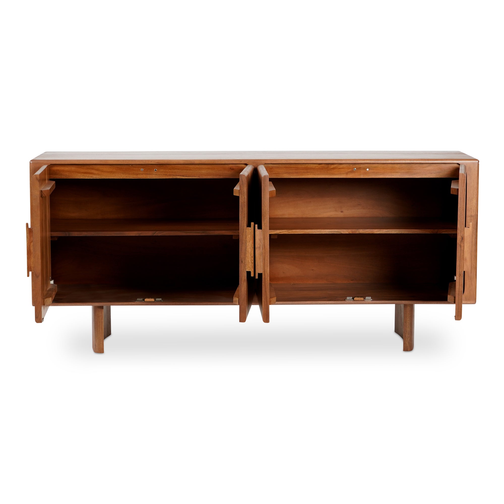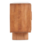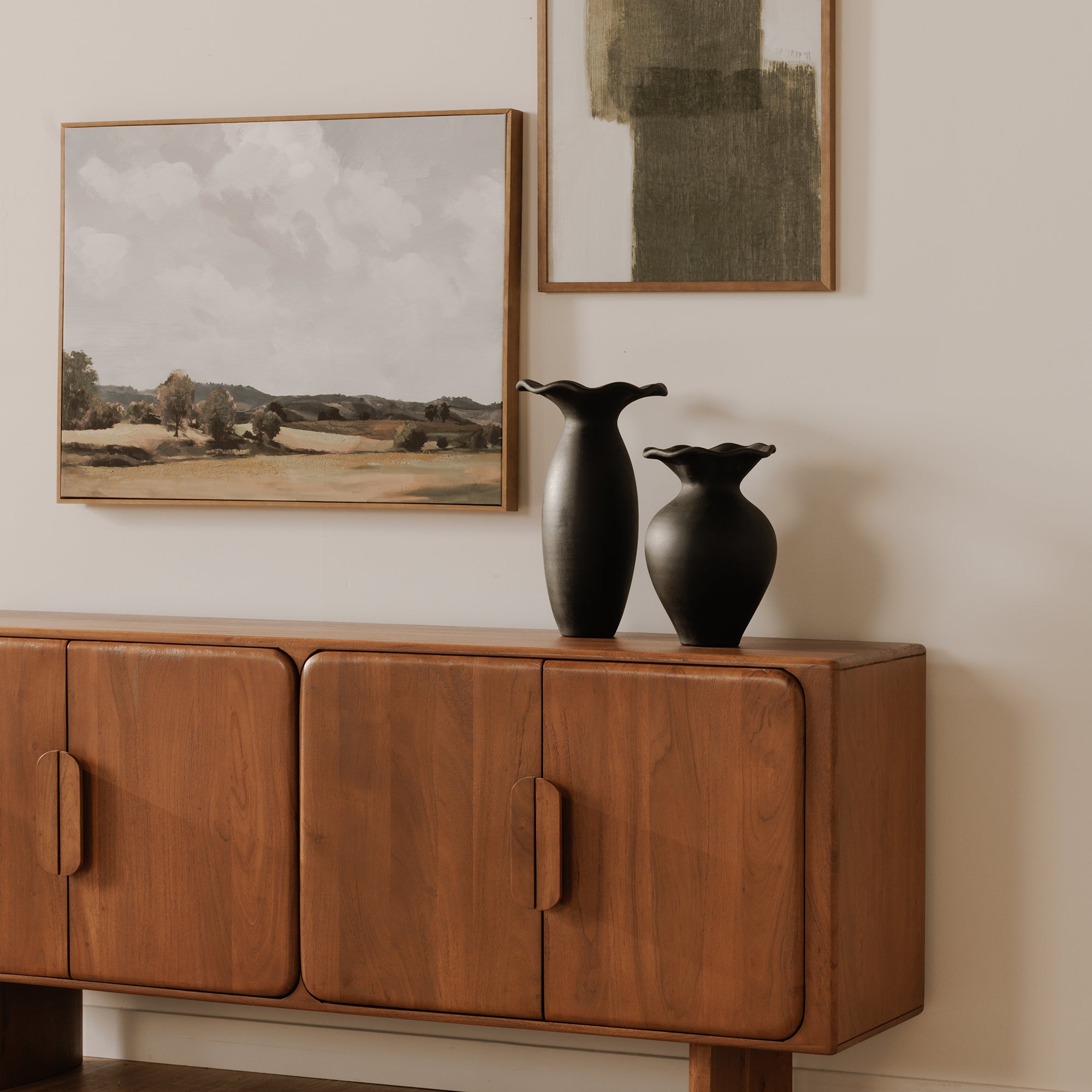 Round curved doors in a rich brown tone exude warmth and elegance in the Orson sideboard. Crafted from durable solid Acacia wood, this sideboard is both long-lasting and easy to maintain, while the glass door front with magnetic door catches adds effortless functionality.