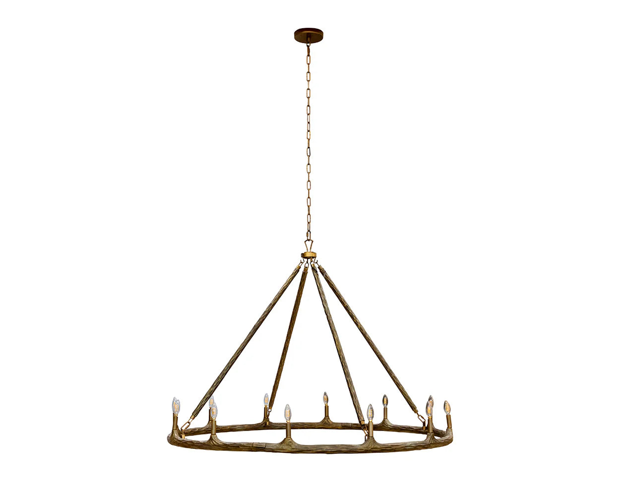 The Wolfgang Chandelier is a unique take on rustic sophistication. Crafted from casted aluminum with an antique brass finish, this piece brings a metallic hand-hammered look that will instill a dash of intrigue to its surroundings.