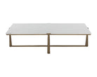 Inspired by mid-century design, the Cowell Coffee Table features a chic, minimal aesthetic that will elevate any room. The powder-coated antique brass finished legs give off a rustic sensibility that contrasts with the cool white marble top. As marble is a natural material, unique veining, pitting, fissures, micro-cracks and colour variations are all characteristics that add to the uniqueness and beauty of each piece. Made in India. With refined craftsmanship, this design was brought to life by skilled local artisans. Due to the nature of handcraftsmanship, unique imperfections such as fissures, markings and variations in colour and shape are welcomed and appreciated characteristics for a truly one-of-a-kind piece.