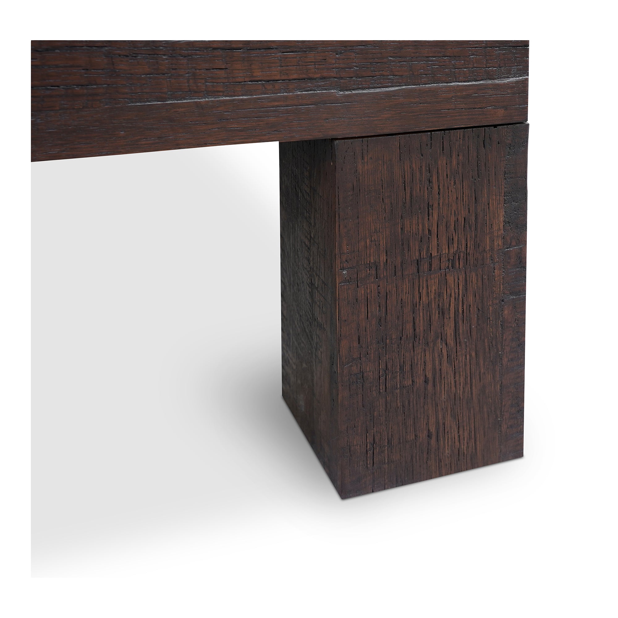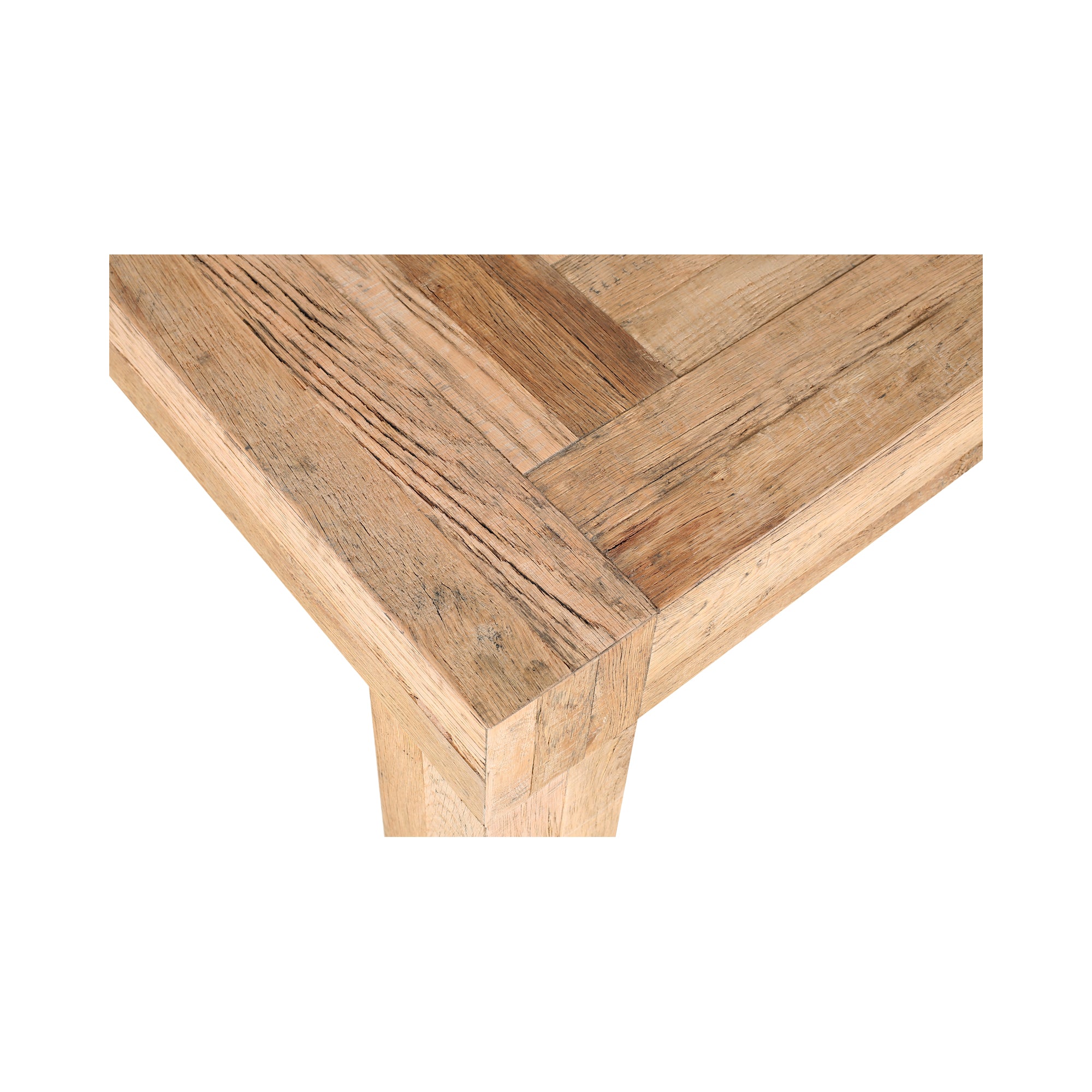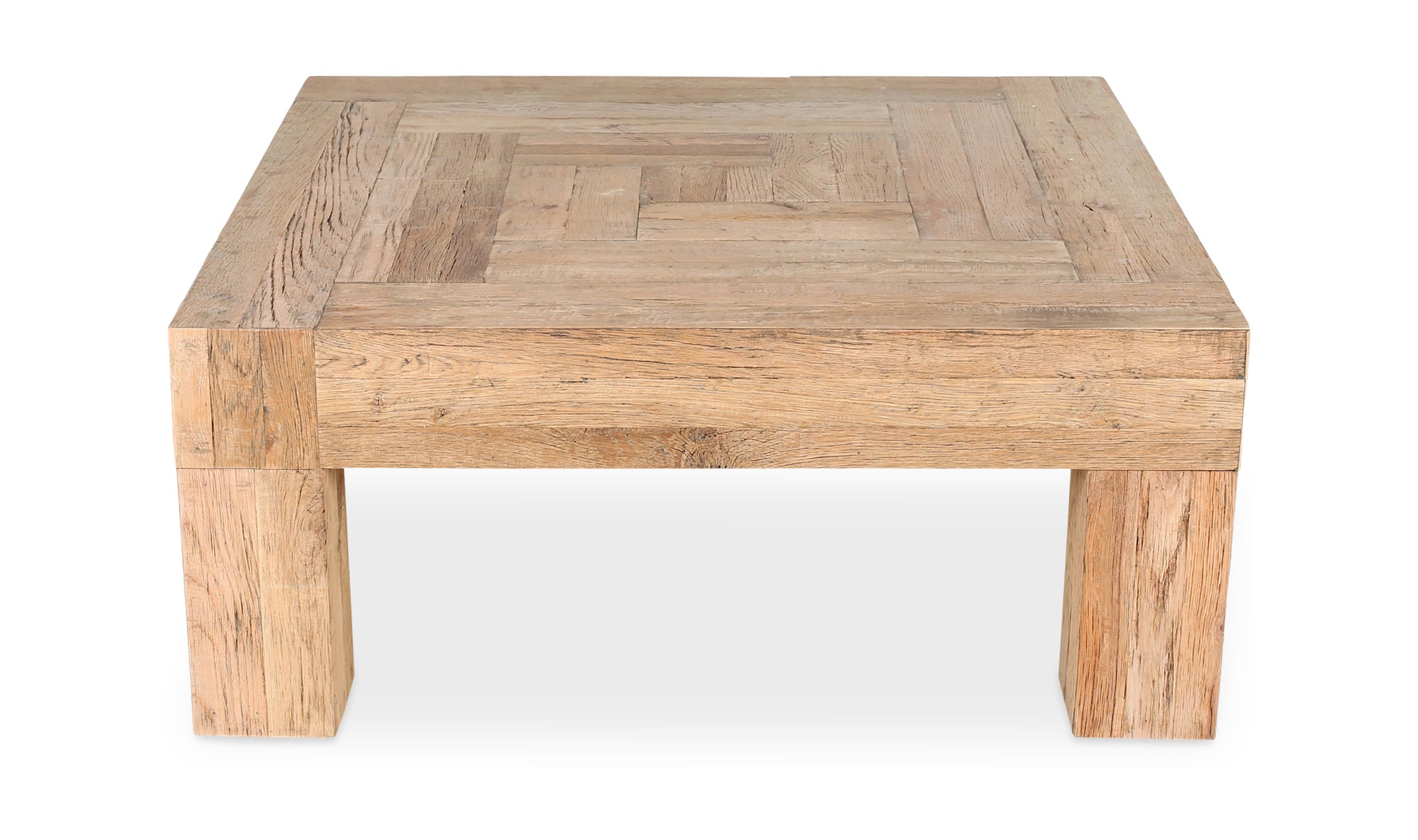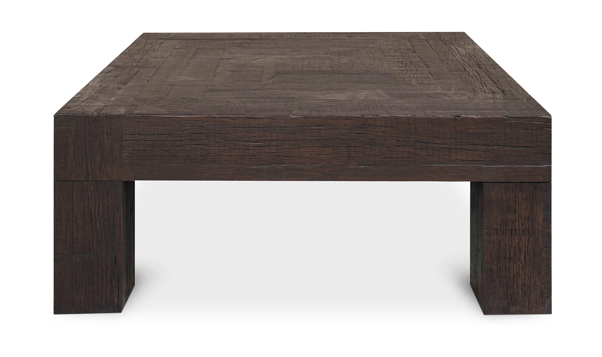 A stunning embodiment of organic vitality and contemporary design. Expertly crafted from solid reclaimed oak, the Evander coffee table showcases the wood's natural grains and knots, creating a one-of-a-kind surface that exudes character and charm. Its modern, blocked construction simultaneously pays homage to the material's inherent beauty and embraces a chic, minimalist aesthetic.