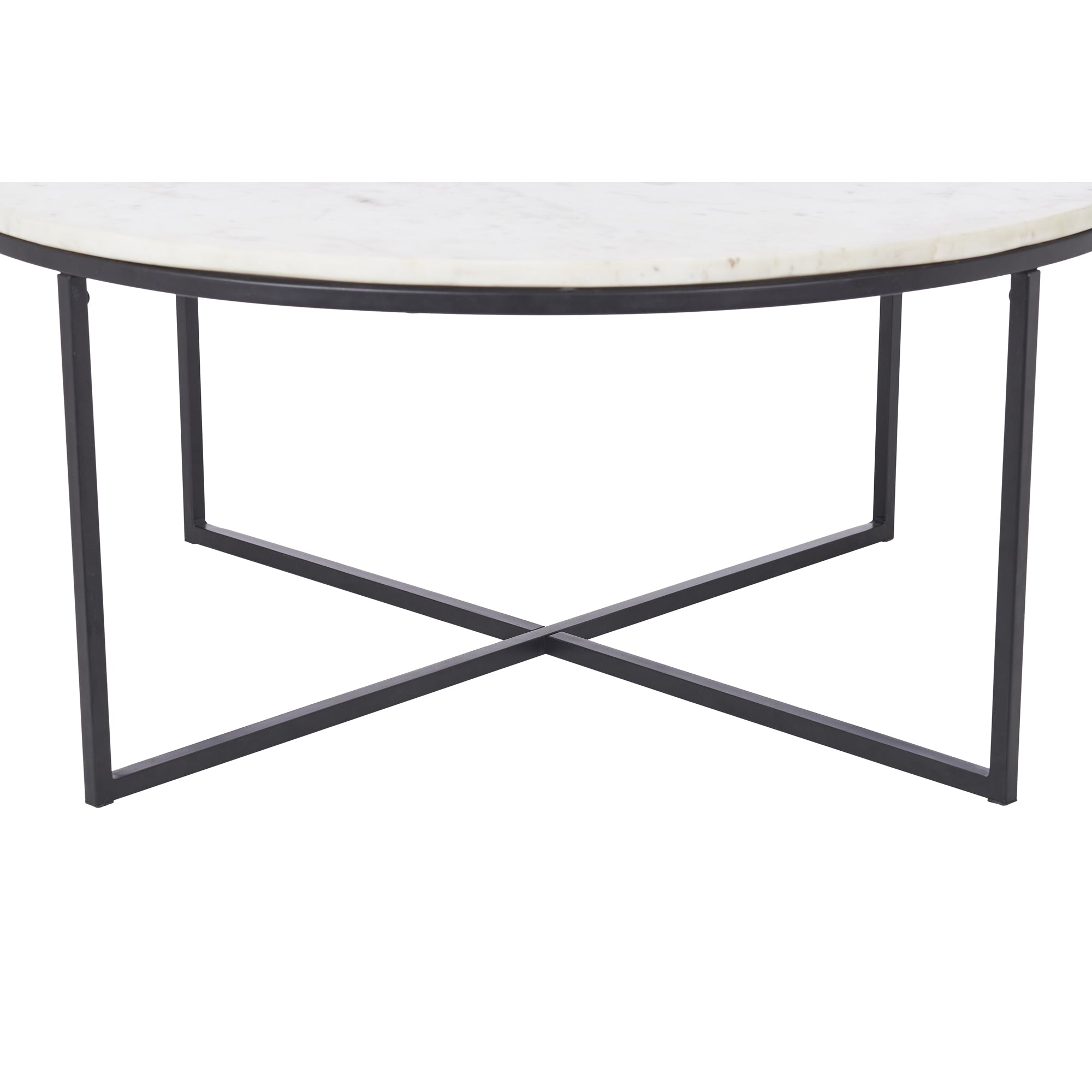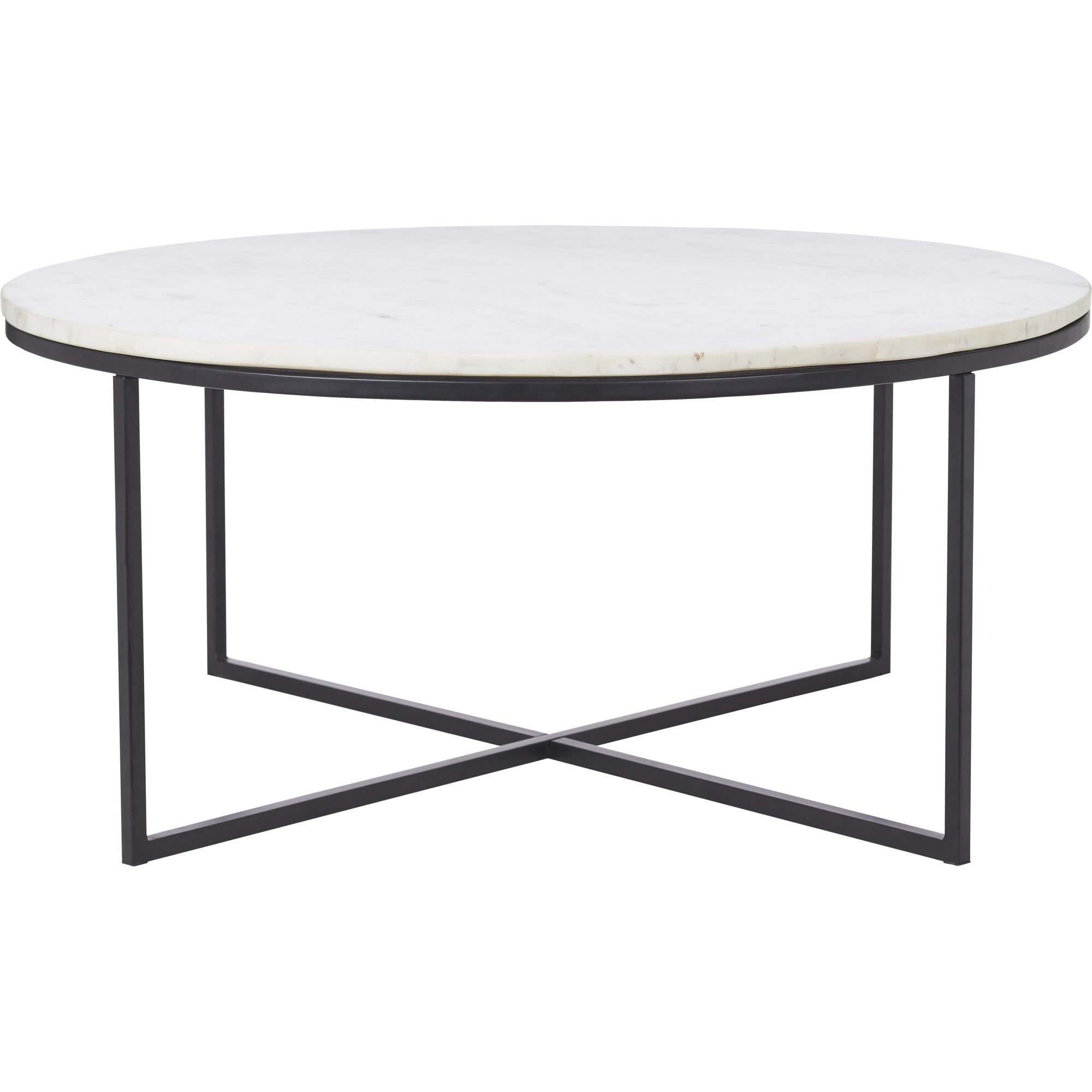 This coffee table’s exquisite elegance radiates across the contemporary living room. Thanks to a matte black powder coated legs, it is inherently strong and sleek, all while the natural white marble offers a light glow. With a 35 inch circumference and 15 inch height, its size provides plenty of versatility for arrangement.