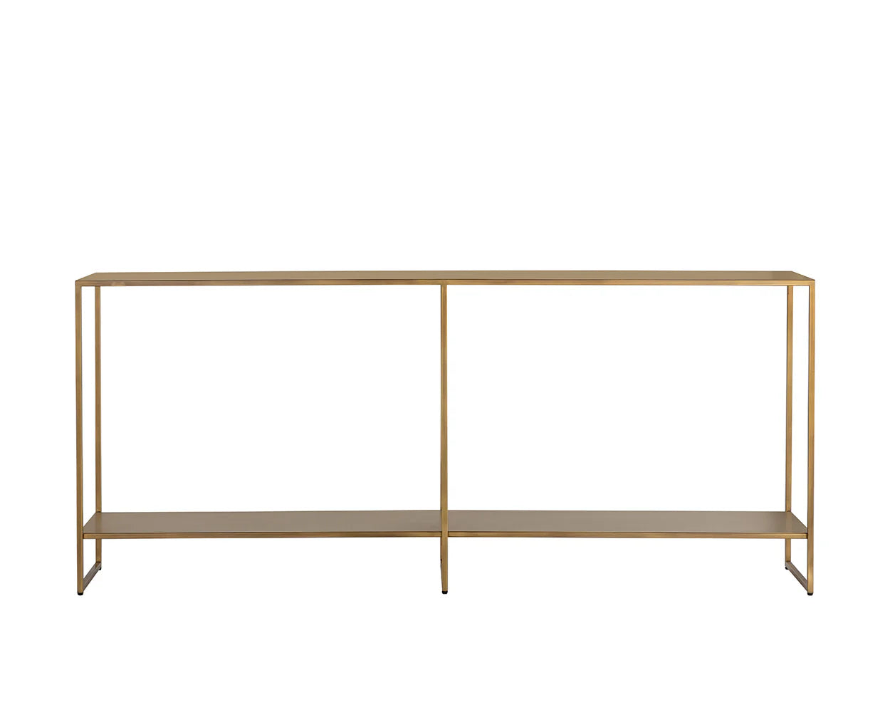 Add style and warmth to living and office spaces with the well-designed Eiffel Console Table in antique brass or black iron. Can be styled behind a sofa or in a hallway or entryway for added impact and functionality.