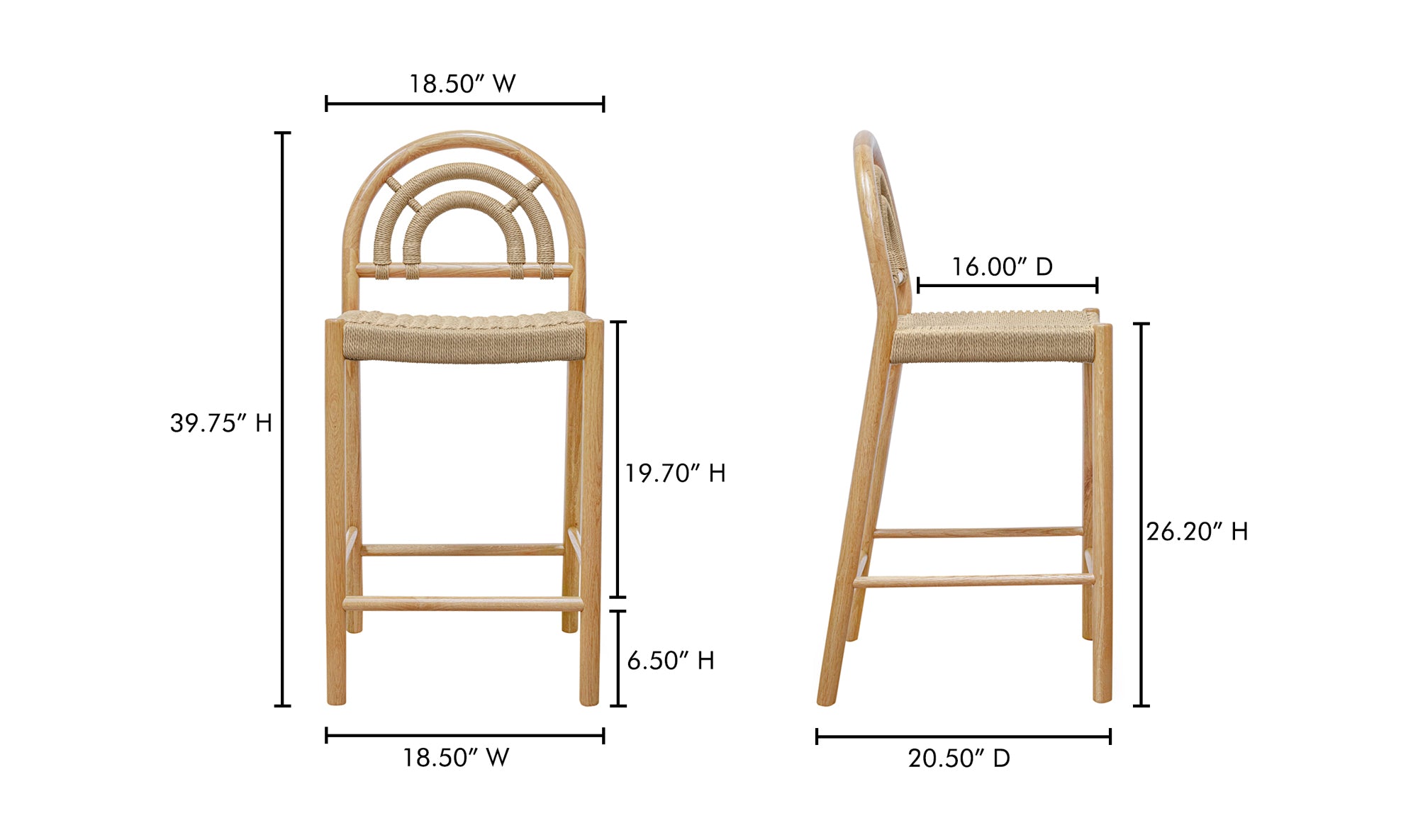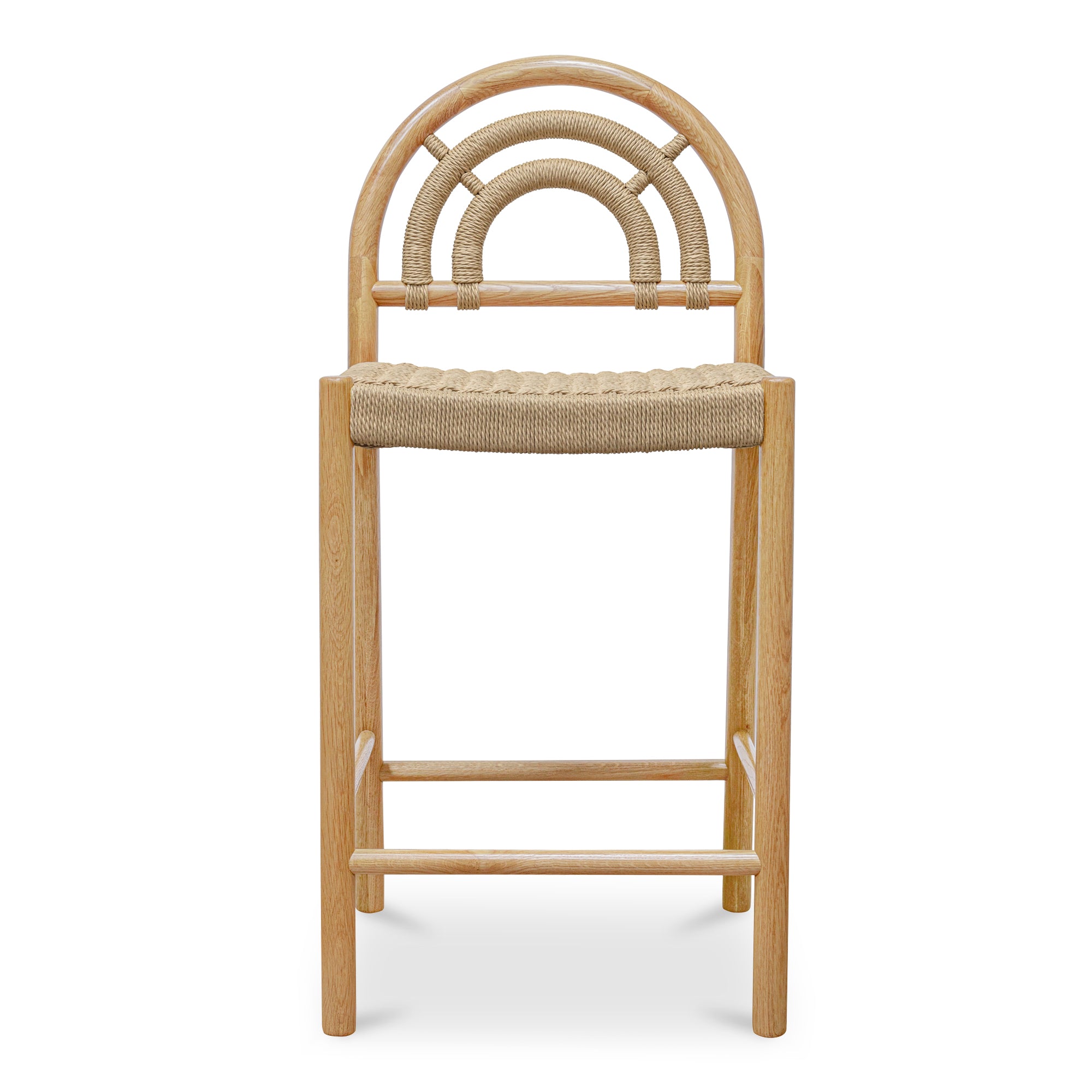 The Avery counter stool pays homage to the past with its classic paper rope seat and exquisite cane-wrapped details, while its gently arching backrest footrest bring a fresh and contemporary touch. Its solid oak construction complements the stool's aesthetic, bringing warmth and sophistication.