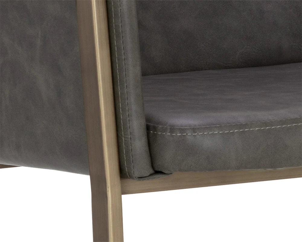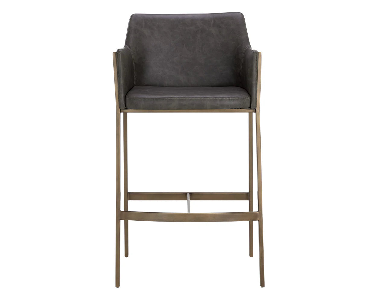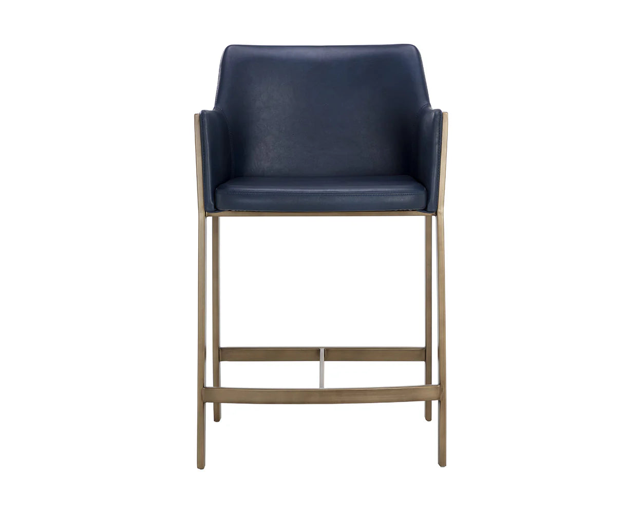 The Bernadette Counter Stool features a shapely design with a powder-coated antique brass frame. Upholstered in bravo admiral faux leather for added style and durability. Handle With Care: This design has been crafted with faux leather. Faux leather is manufactured to reflect the natural characteristics of leather; as such, colour variations, markings wrinkles, grooves, and light scratches are appreciated characteristics. No two pieces will be alike. Visit our Product Care page for more information on how to ensure the lasting beauty of this piece.