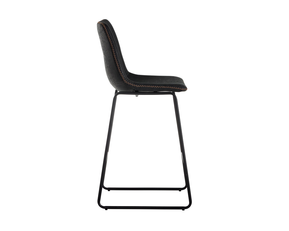 A comfortable and compact counter stool. Features a simple, mid-century silhouette and finished with a brushed black steel frame. Stocked in antique black, brown and grey faux leather. Suitable for various dining, kitchen and bar spaces of all sizes. Handle With Care: This design has been crafted with faux leather. Faux leather is manufactured to reflect the natural characteristics of leather; as such, colour variations, markings wrinkles, grooves, and light scratches are appreciated characteristics. No two pieces will be alike. Visit our Product Care page for more information on how to ensure the lasting beauty of this piece.