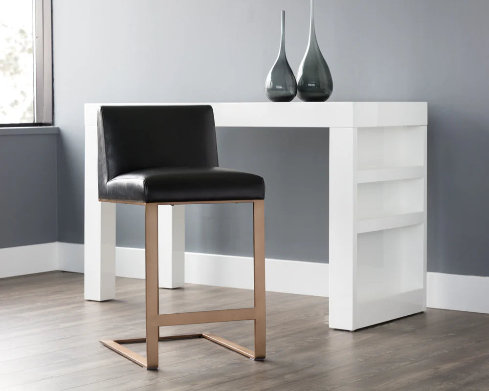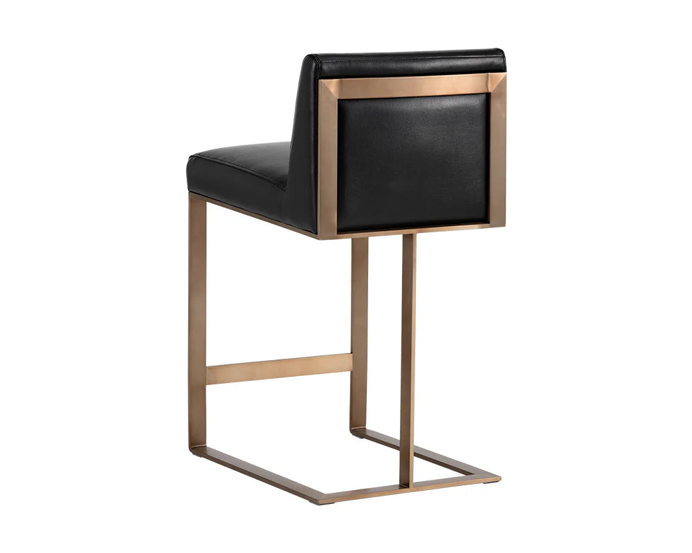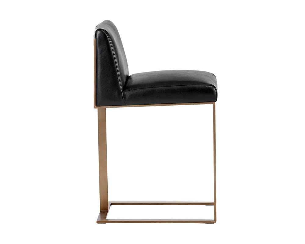Stunning from all angles, this counter stool features an exposed brushed antique brass steel frame with a footrest. A streamlined seat in cantina white, black and magnetite bonded leather completes the look. Perfect for restaurants, bars and residential spaces. Handle with Care: This design has been crafted with bonded leather. Bonded leather is a blend of reconstituted leather and synthetic materials crafted to reflect the natural characteristics of leather; as such, colour variations, markings, wrinkles, grooves and light scratches are acceptable and appreciated characteristics. No two pieces are alike. Visit our Product Care page for more information on how to ensure the lasting beauty of this piece.