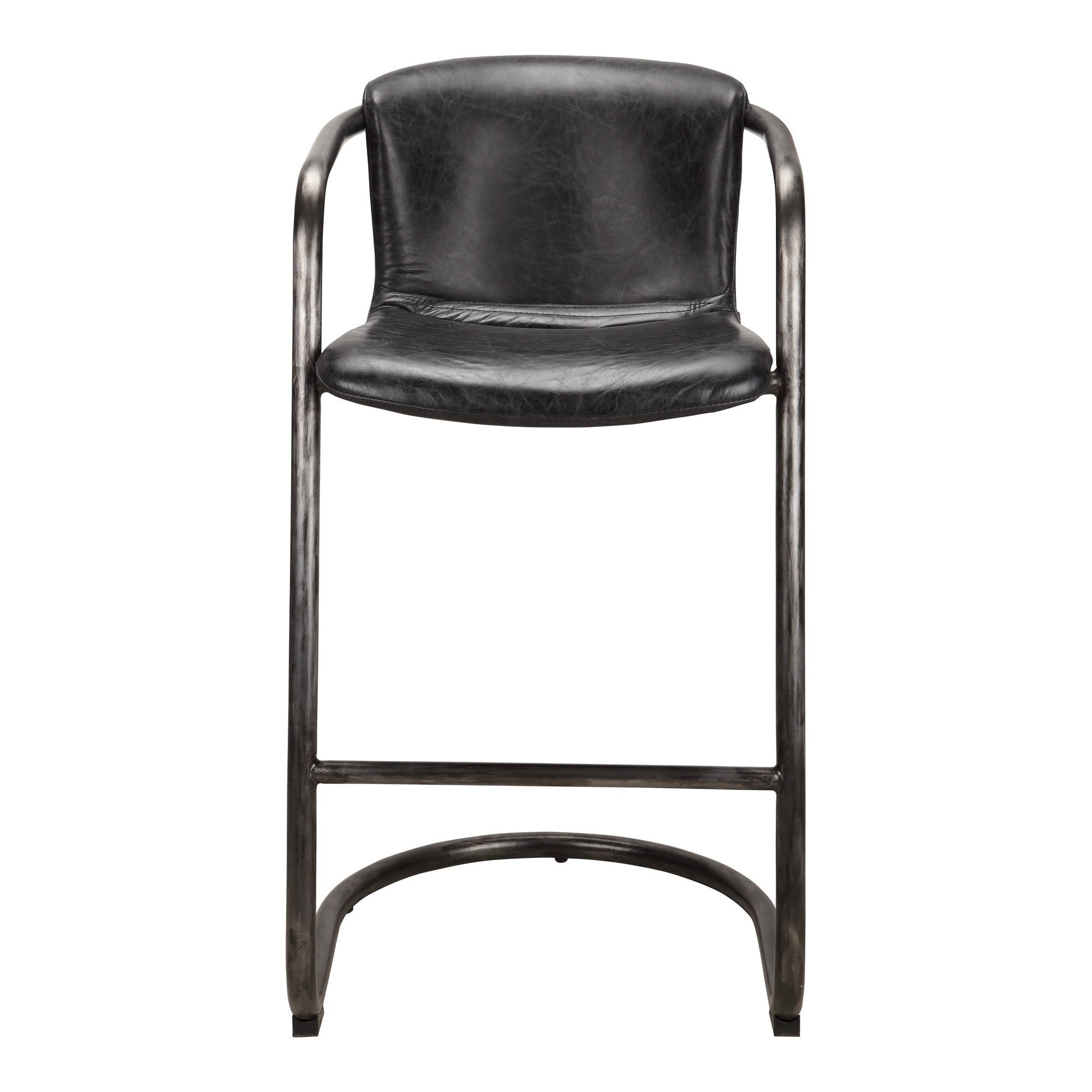 The Freeman bar stool is a look through the lens of taste—a testament to confidence, warmth and passion. Its modern industrial aesthetic unites the luxurious sophistication of top-grain leather with cool iron framing, adding a wonderfully moody drama to any kitchen space.