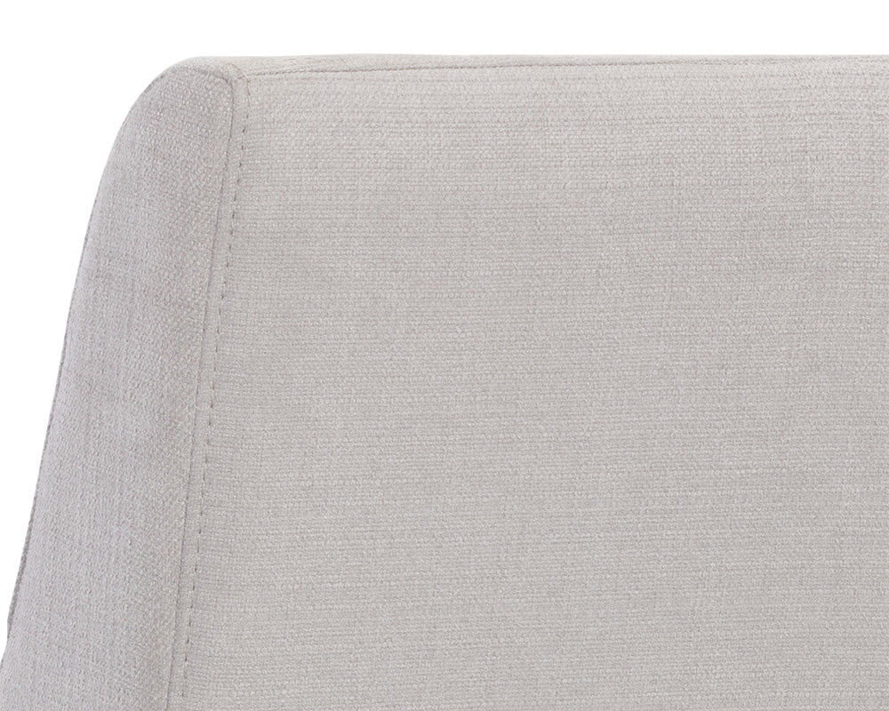 This counter stool features a classic cantilever design for a touch of elegance. Crafted with bold meg rust or zenith soft grey fabric with a rustic bronze steel frame. Suitable for various dining, kitchen and bar spaces of all sizes.