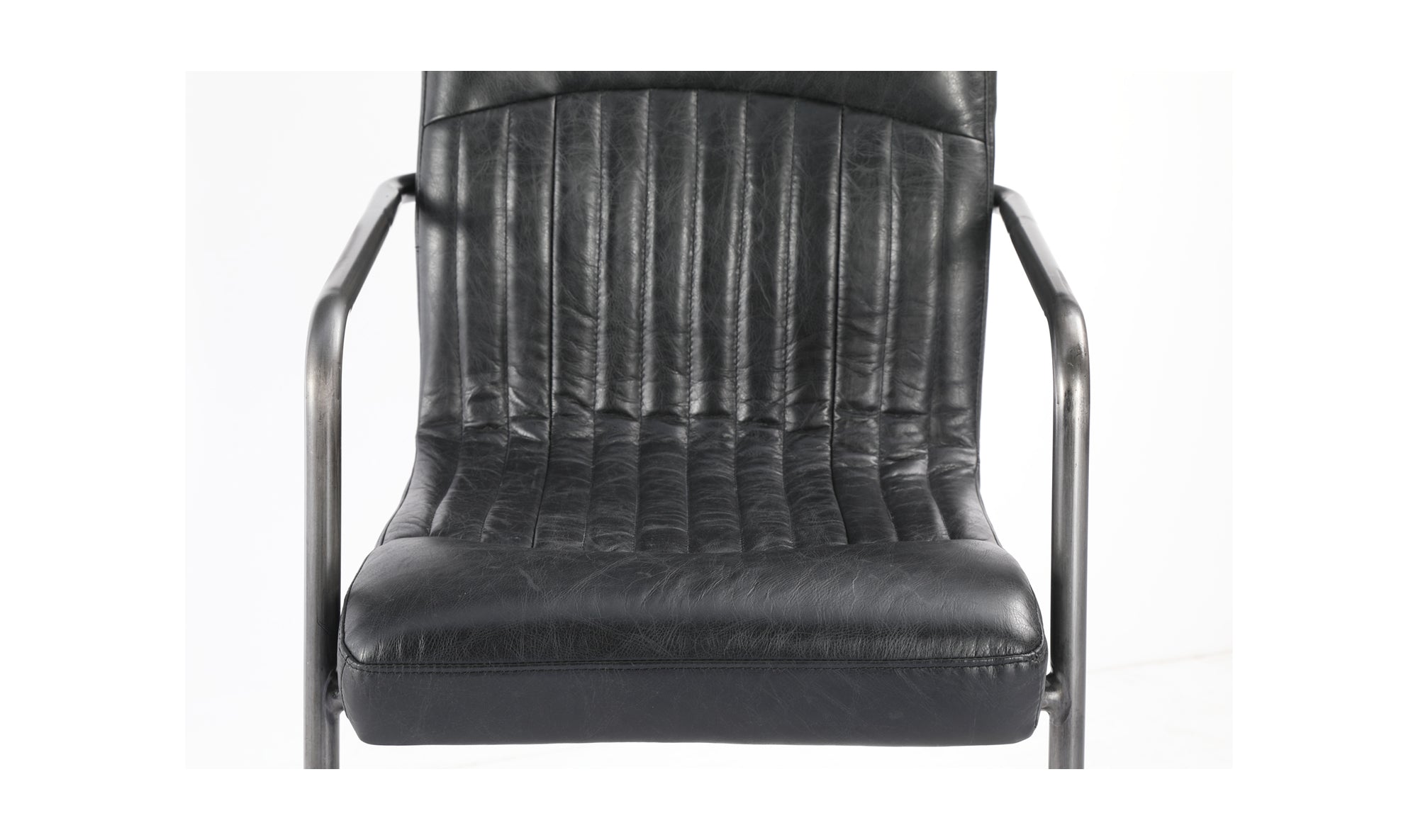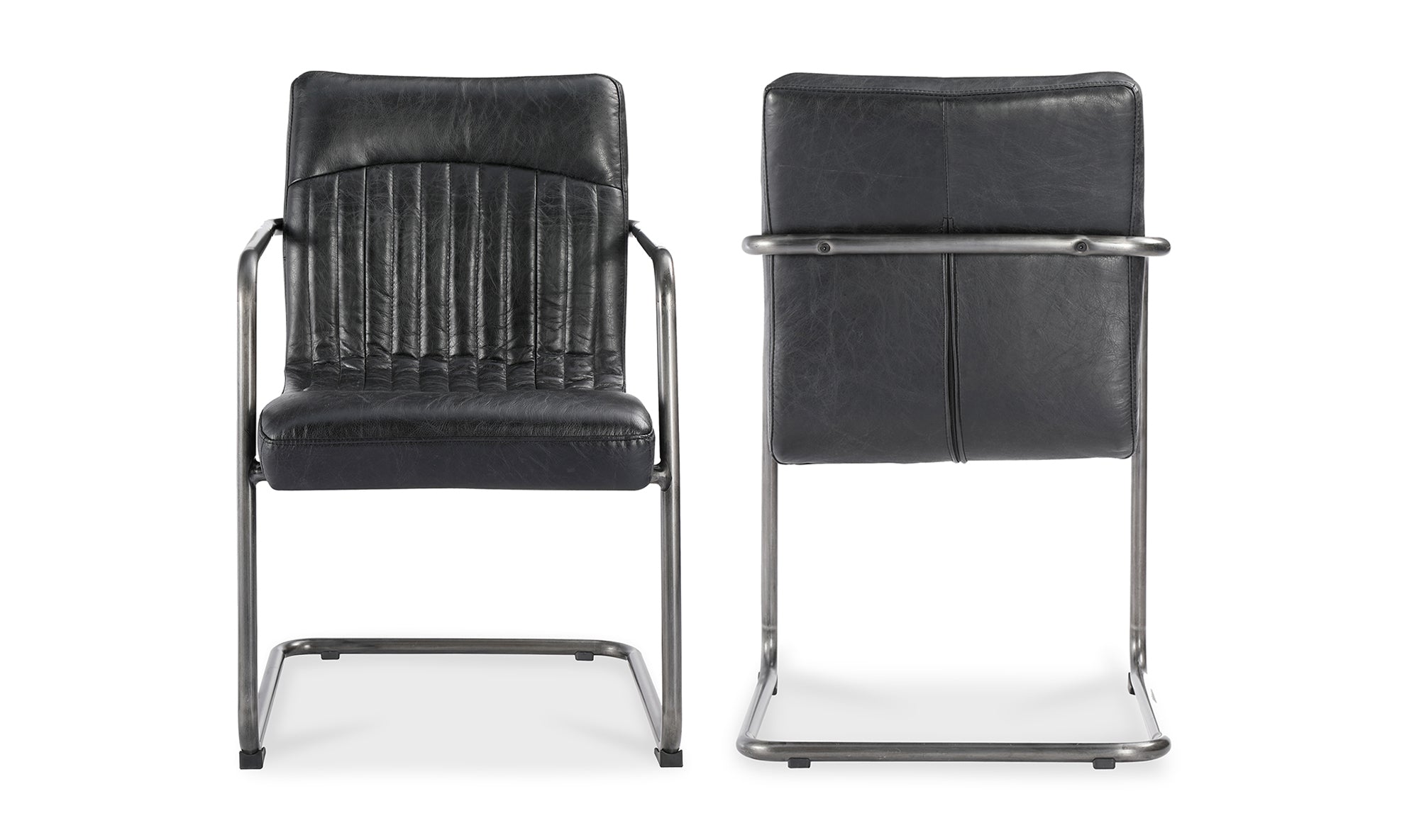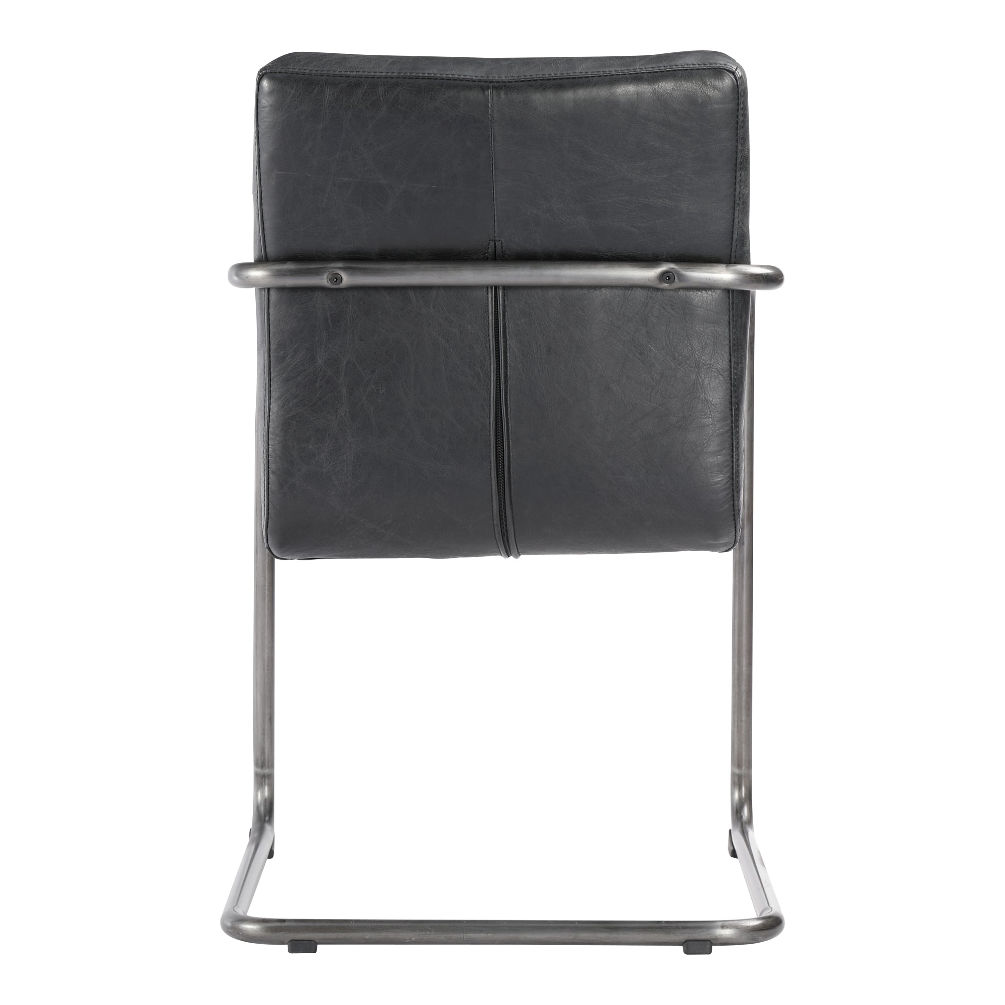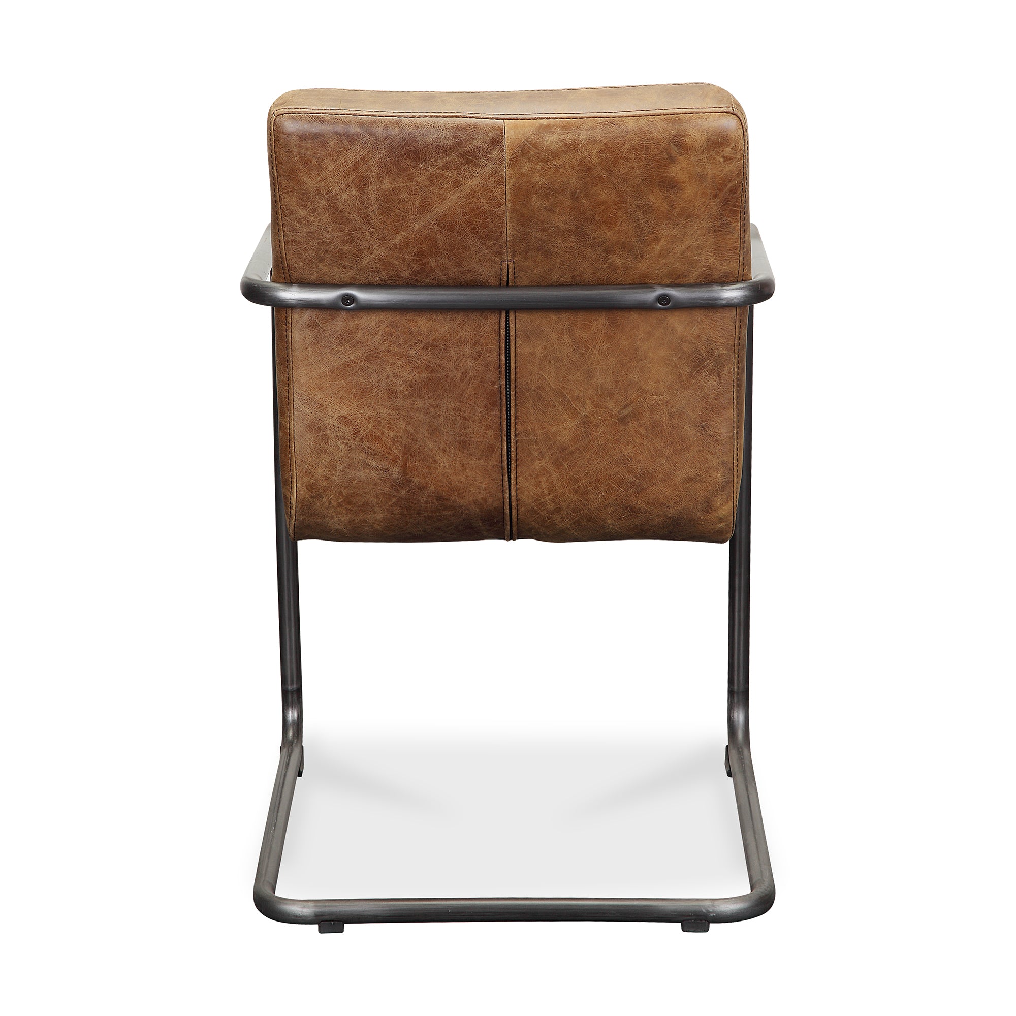 The Ansel dining chair features an industrial iron frame and easy-to-clean distressed top grain leather upholstery. The perfect chair for adding some originality and industrial design to your home. Outfit your entire table with this simple yet stunning design. Available with arms or without as a dining chair.