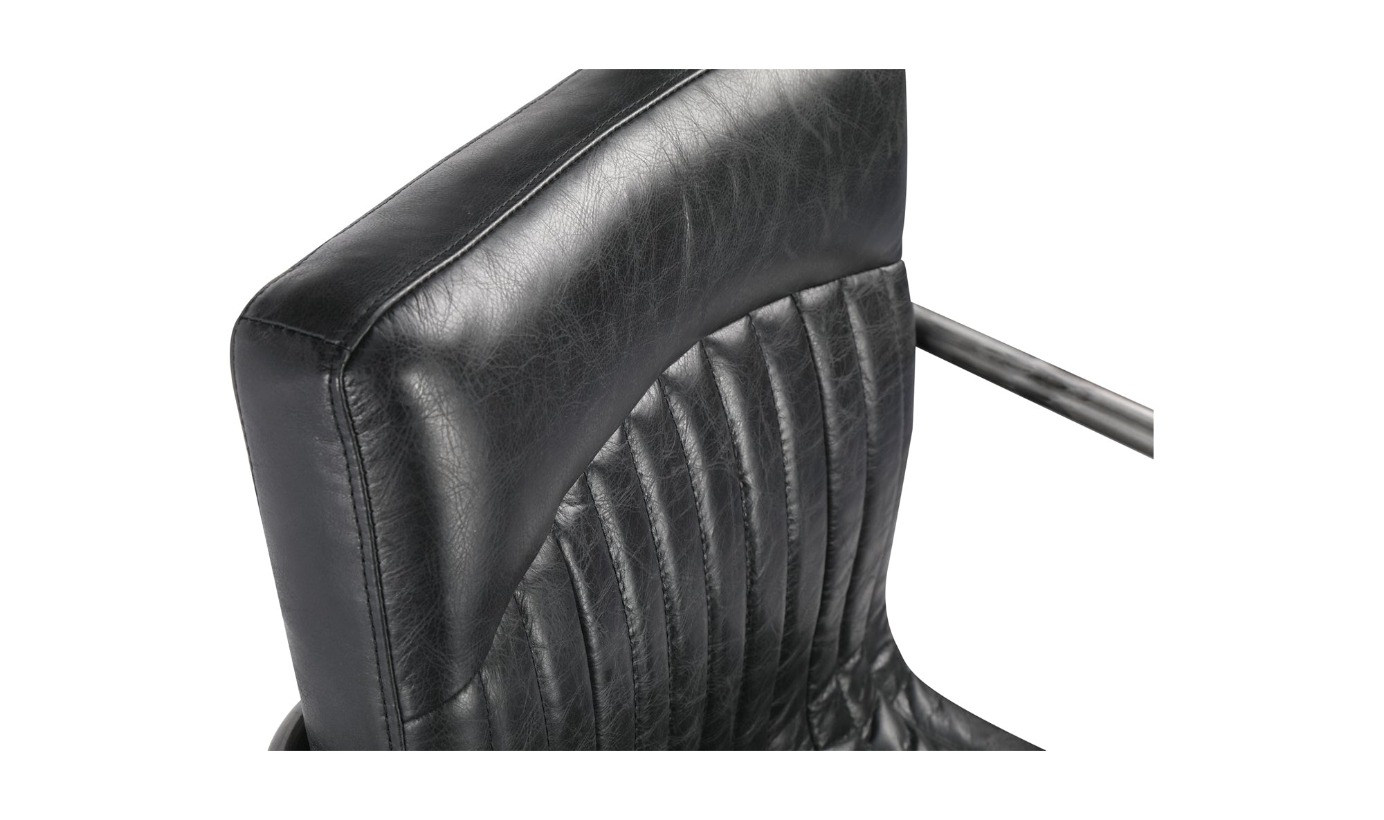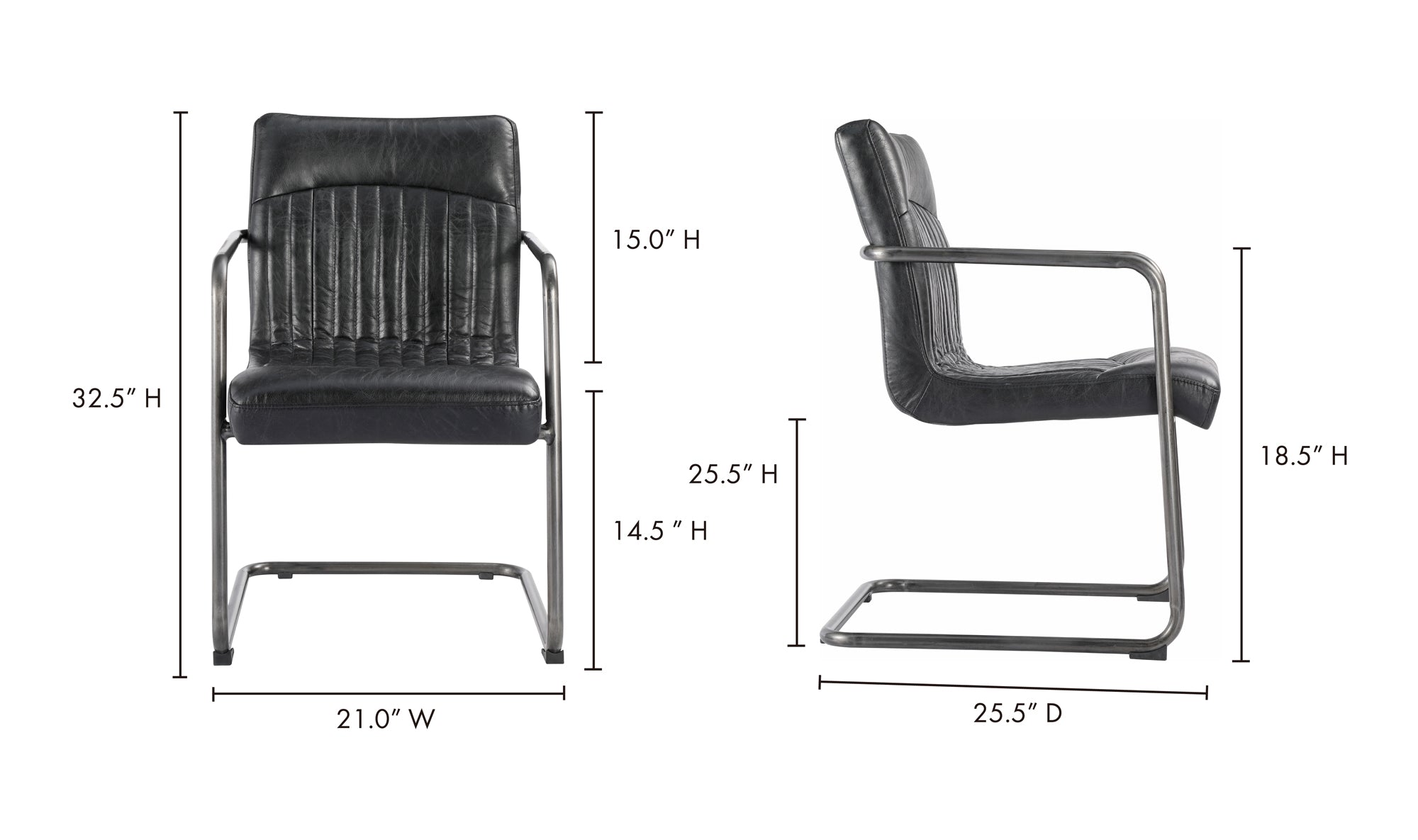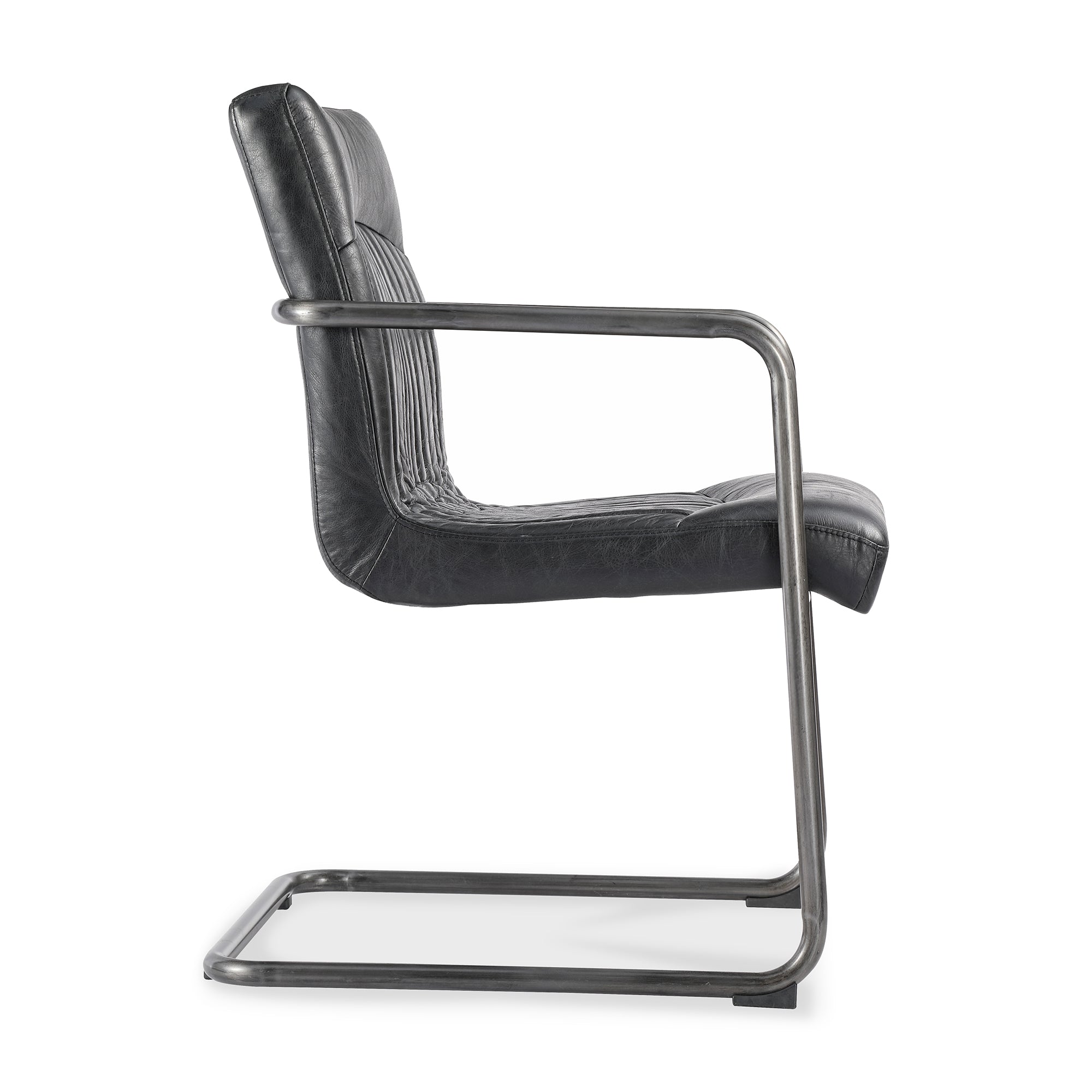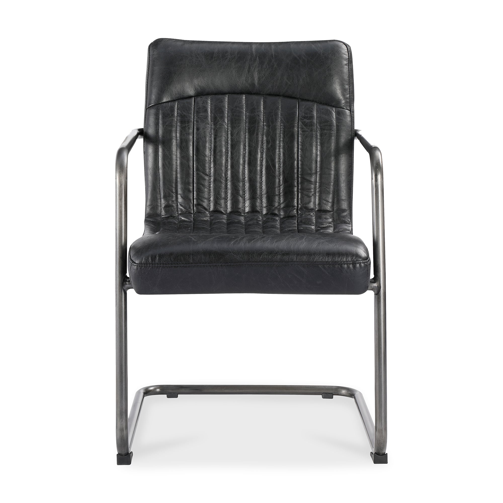 The Ansel dining chair features an industrial iron frame and easy-to-clean distressed top grain leather upholstery. The perfect chair for adding some originality and industrial design to your home. Outfit your entire table with this simple yet stunning design. Available with arms or without as a dining chair.