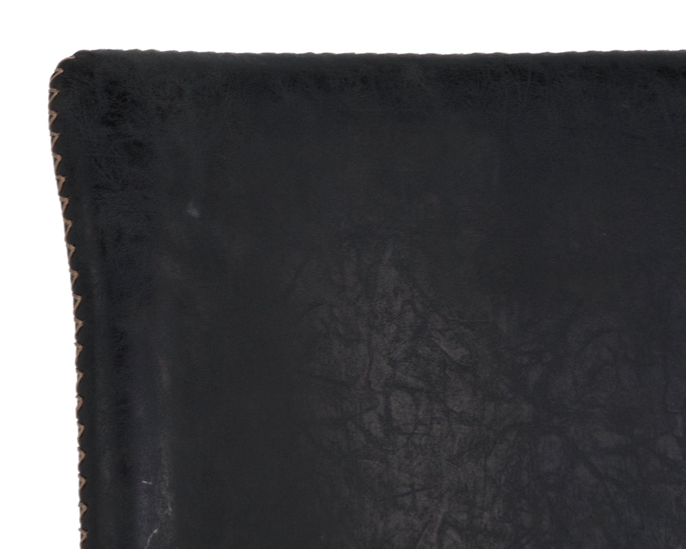 A comfortable and compact dining chair. Features a simple, mid-century silhouette and finished with a brushed black steel frame. Stocked in antique black, grey and brown faux leather. Handle With Care: This design has been crafted with faux leather. Faux leather is manufactured to reflect the natural characteristics of leather; as such, colour variations, markings wrinkles, grooves, and light scratches are appreciated characteristics. No two pieces will be alike. Visit our Product Care page for more information on how to ensure the lasting beauty of this piece.
