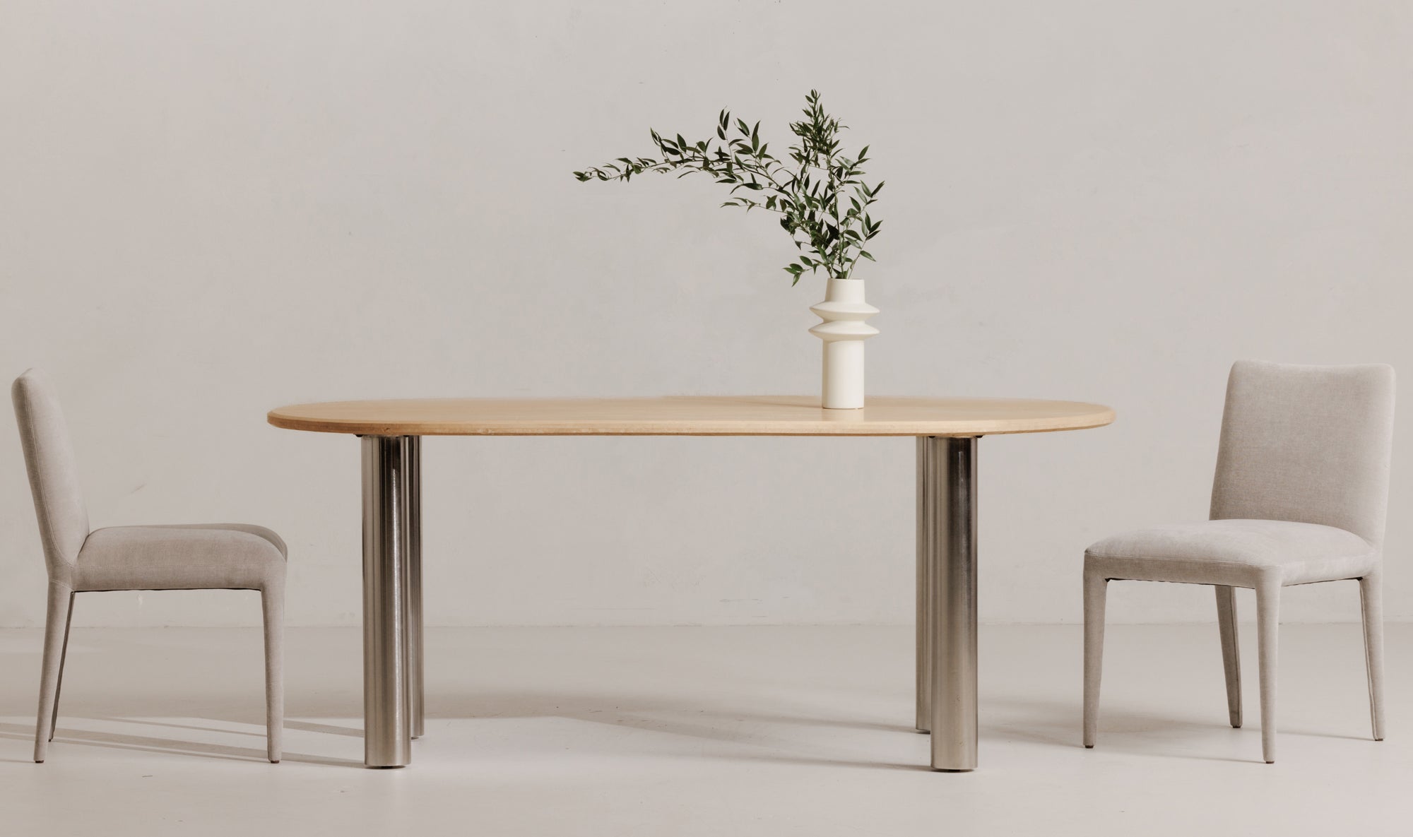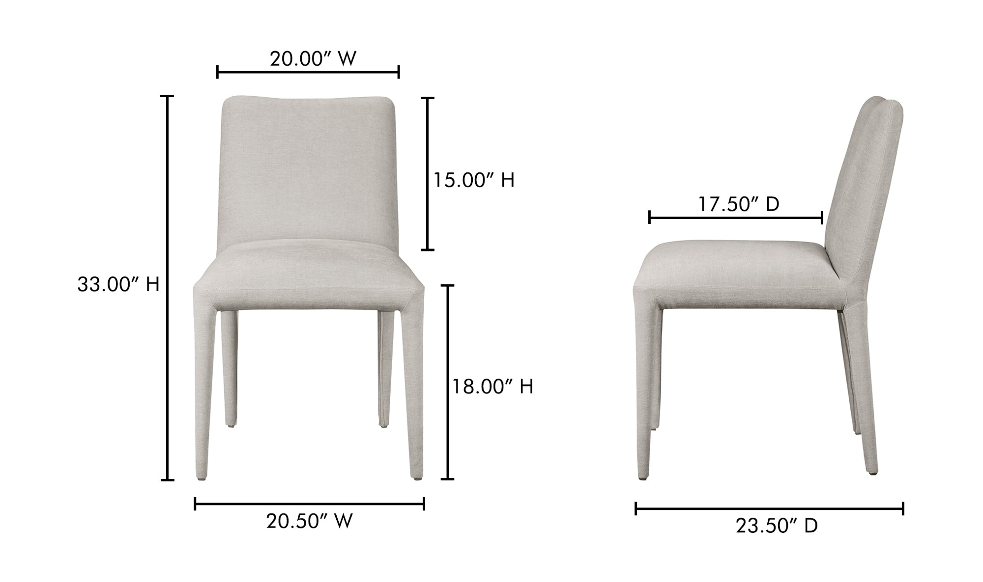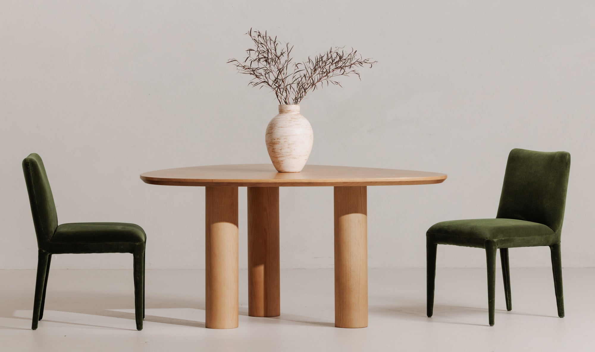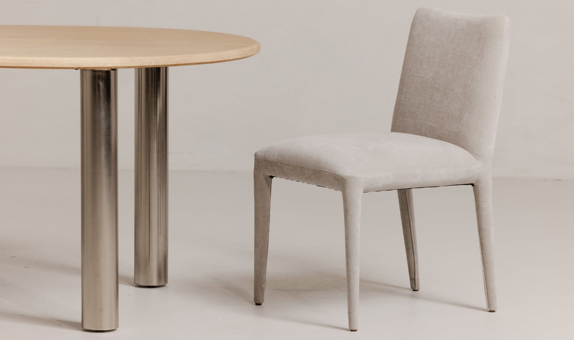 The Calla dining chair is fully upholstered, generously padded for comfort and constructed with a robust ash wood frame and a rubber wood base. The comforting hue is effortlessly adaptable, allowing the chair to seamlessly integrate with any dining table, regardless of color or style.