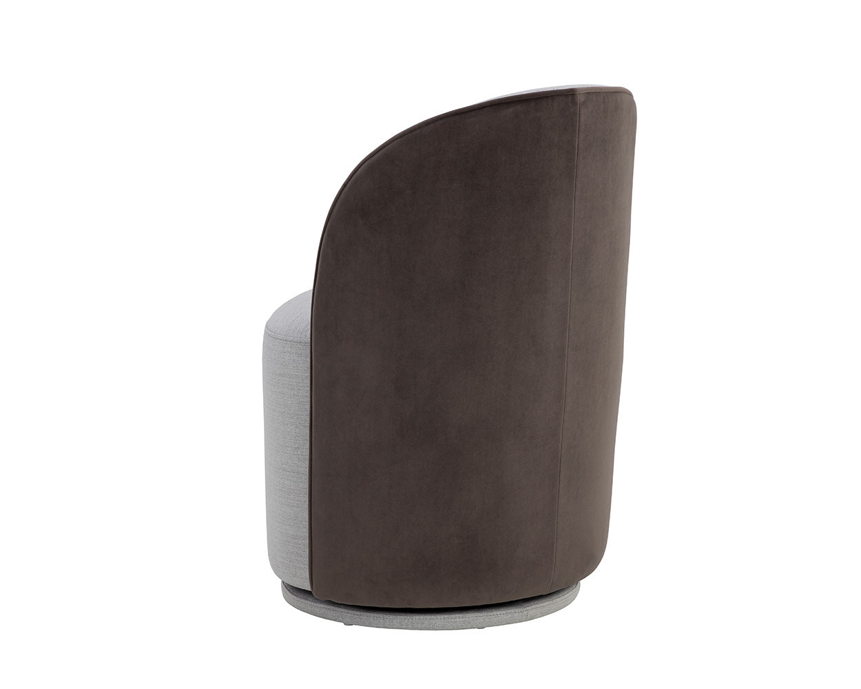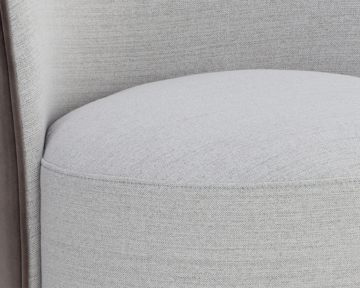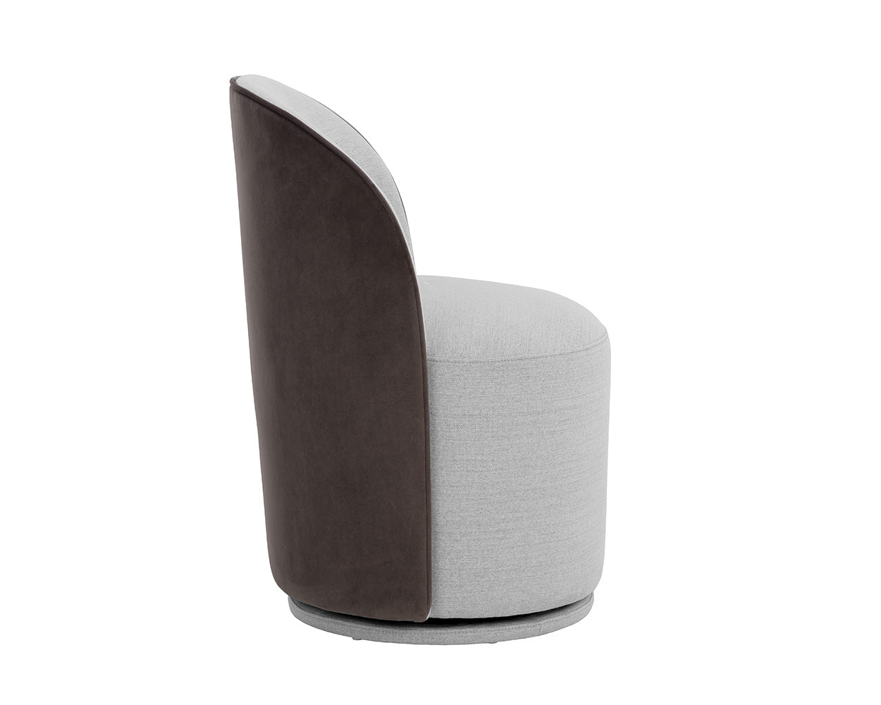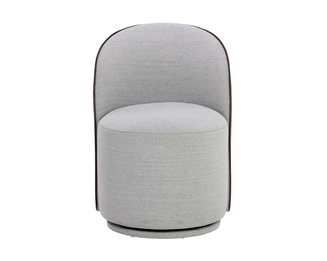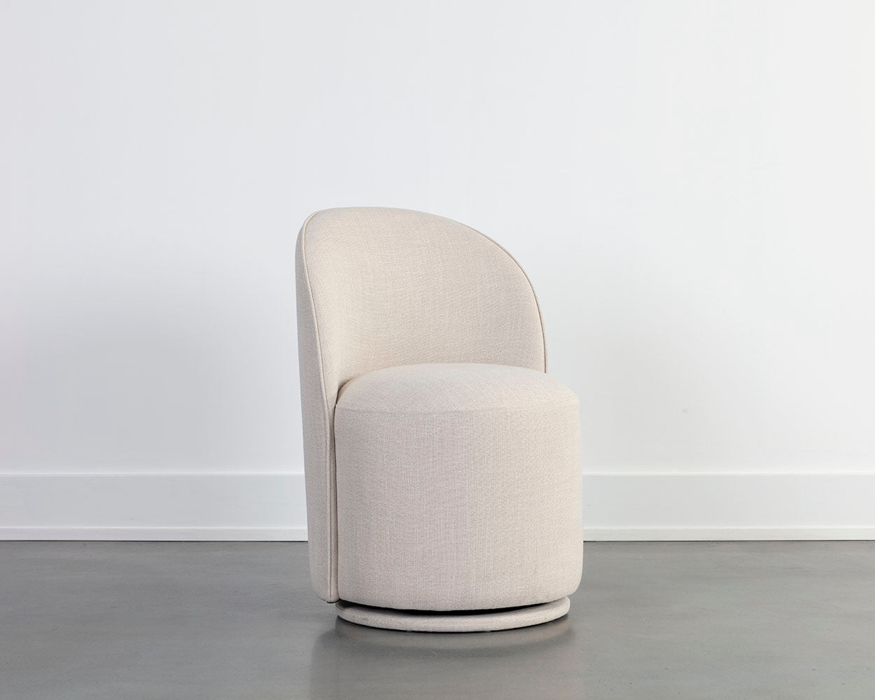 The Cavoli Swivel Dining Chair is distinguished by its curved silhouette. Fully upholstered in our effie linen fabric for a monochromatic look. Also available in our mina light grey/ meg ash and meg taupe / meg gold fabrics.