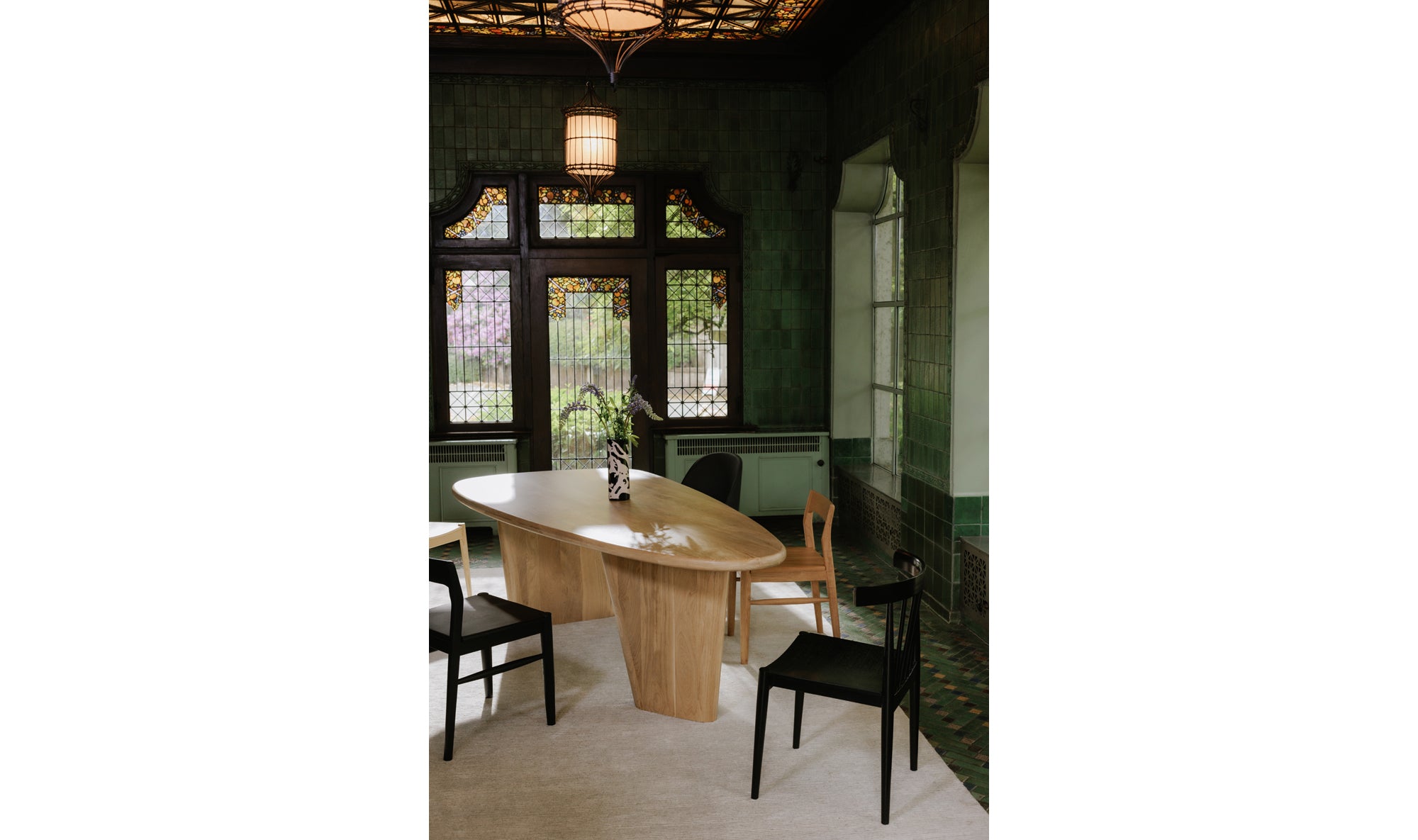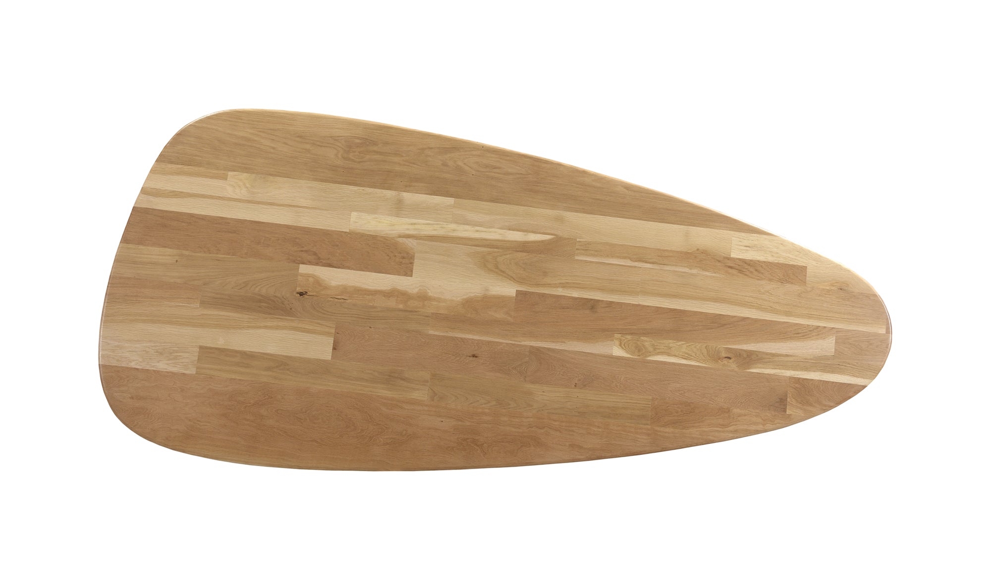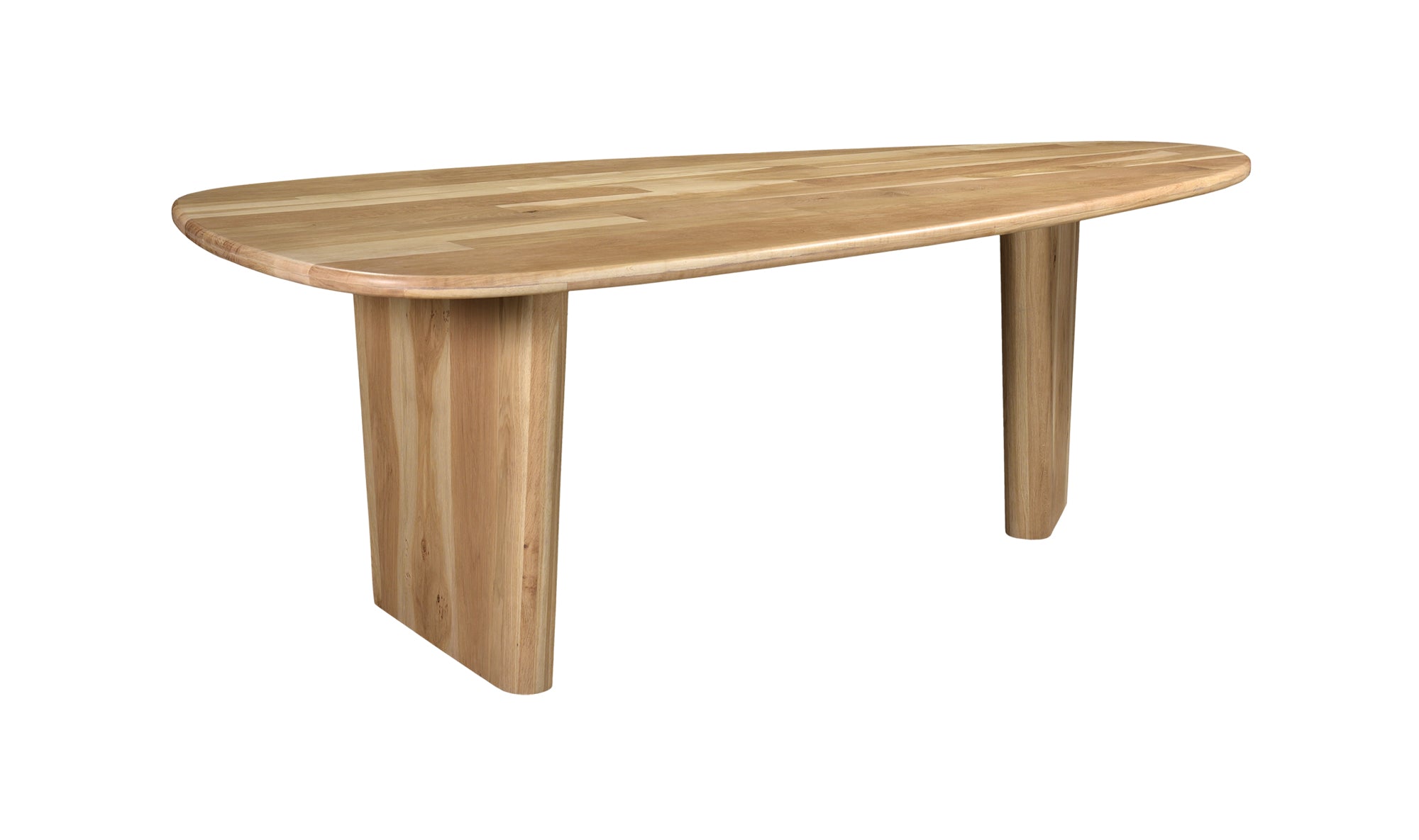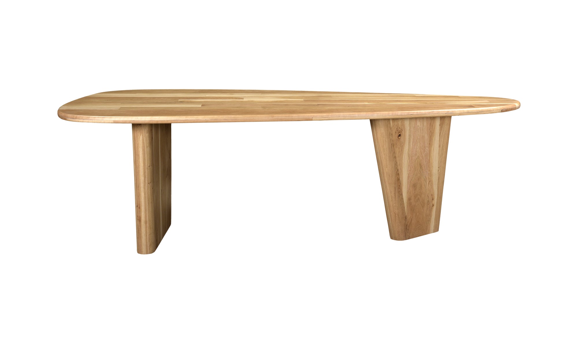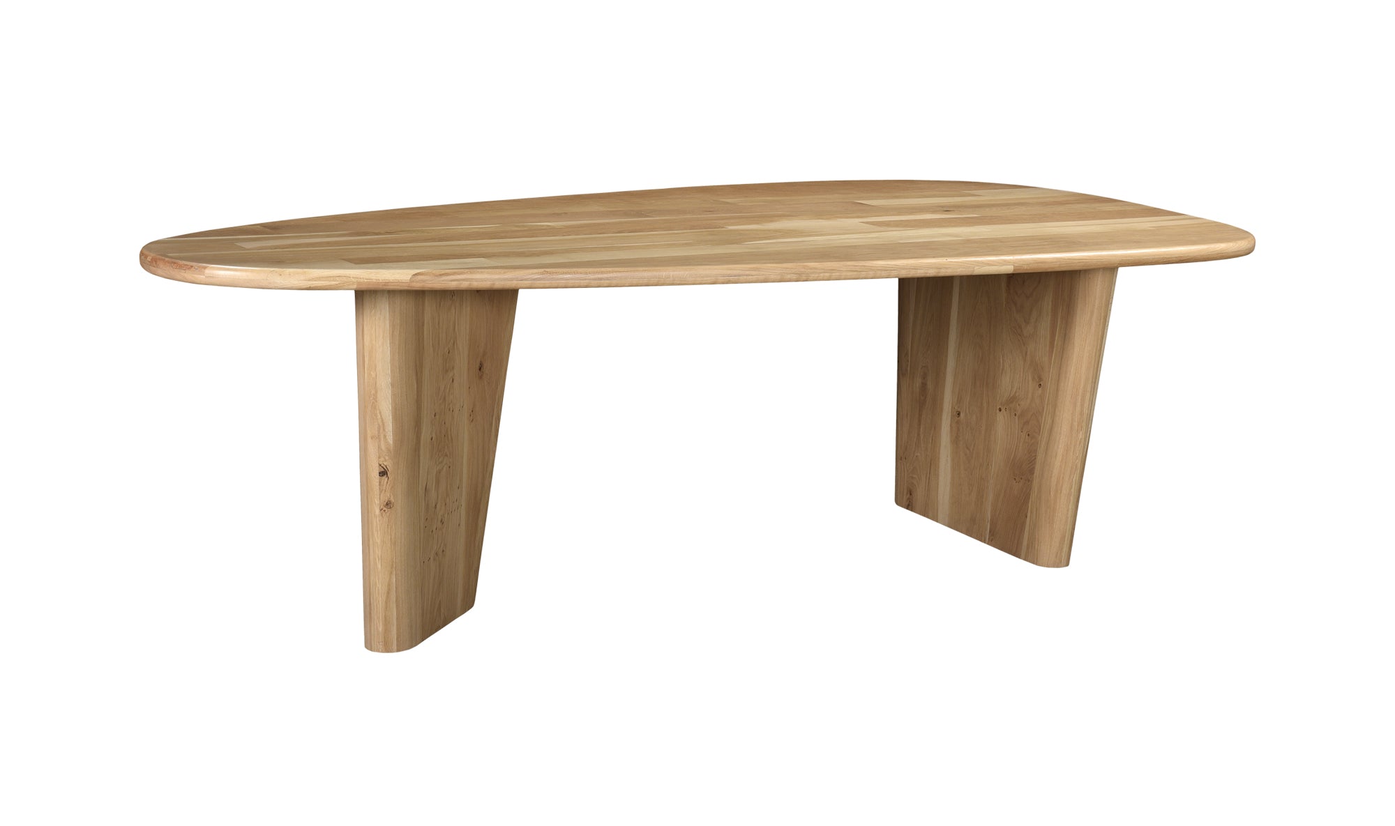 Ageless, crafted excellence. Appro is constructed entirely from white oak with a stunning natural finish, the timeless materials coming together in equally timeless shapes and forms. Sculptural, slanted legs create a sense of grounding and anchoring, while its shield-shaped tabletop is a spacious and playful outlet for all your dining needs.