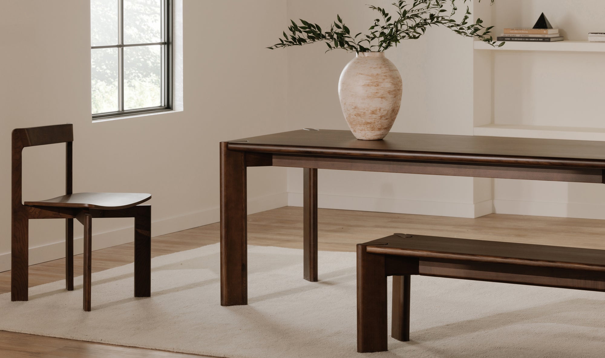Inspired by the softness and symbolism of Japanese mochi, a traditional soft rice cake whose name translates to good luck, the Daifuku dining table features rounded edges that create an illusion of gentle softness while bringing comfort to reality. Exquisite craftsmanship meets the allure of Japanese tradition as joinery detailing underscores the chair's solid white ash construction, perfectly balancing strength and grace. Can we mention the joinery detailing a little more here?