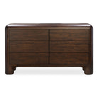 A delightful fusion of playful charm and elegance, the Rowan 6-drawer dresser draws inspiration from the whimsical days of childhood with its robust, chunky legs, reminiscent of a time when life's simplest pleasures brought immense joy. Crafted from Acacia wood with a rich walnut stain and six drawers that open with soft-close metal glides, this table balances the carefree spirit of youth and the polished sophistication of adulthood.