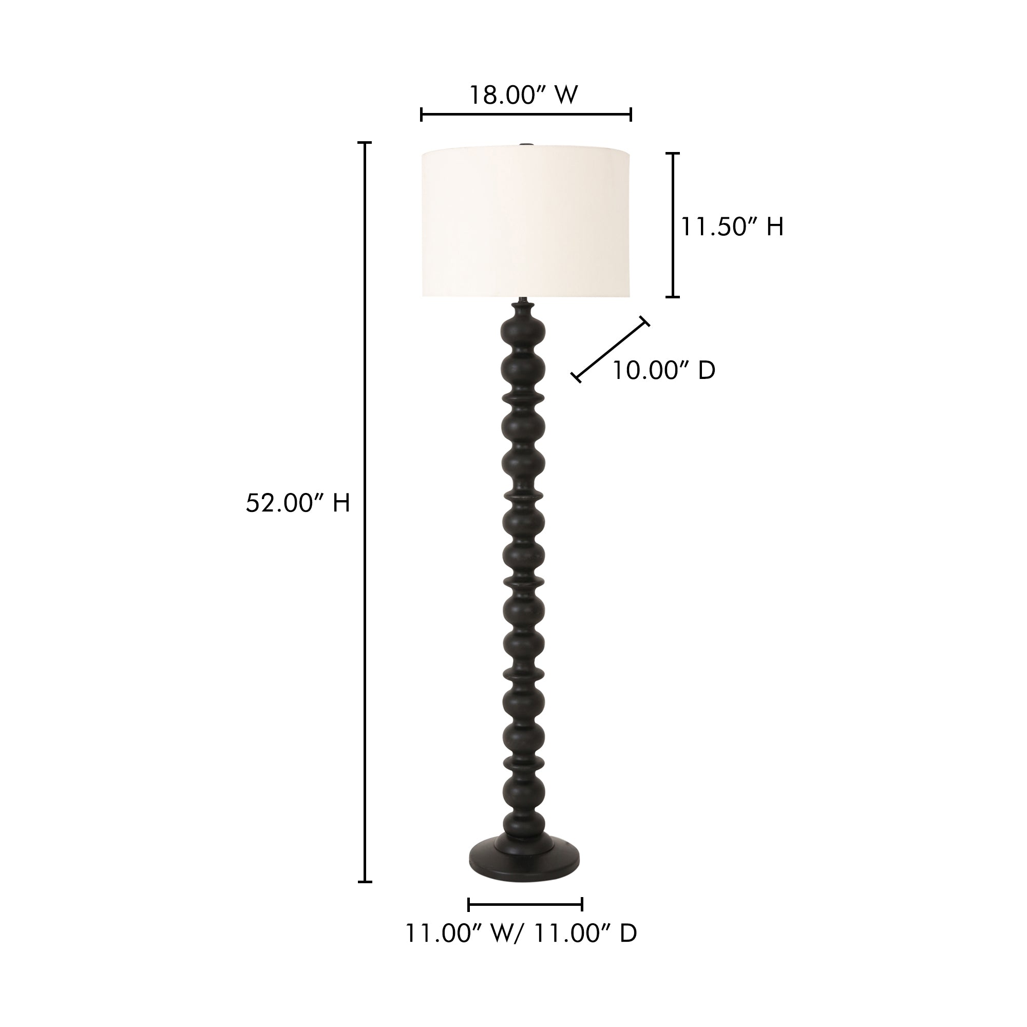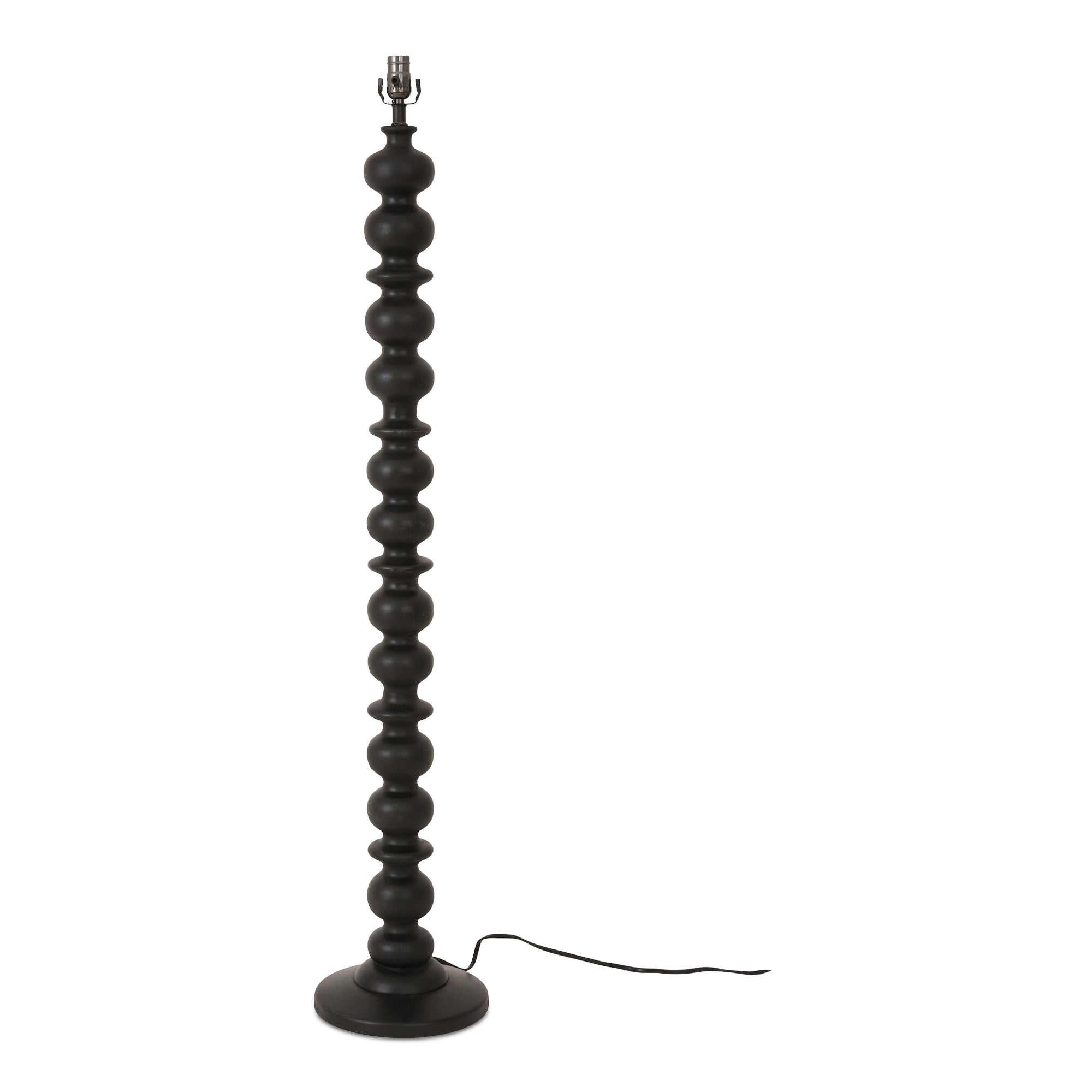 Inspired by vintage table legs for an heirloom appeal, the Gwen floor lamp features black-finished mango wood and a spherical form masterfully achieved by the turned wood base. A textured cotton shade adds dimension to the smooth, organic base.