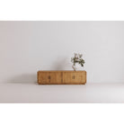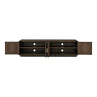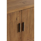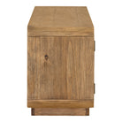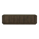 Earthy, on-trend rustic style has been rounded into a minimal silhouette with the Monterey media cabinet. This entertainment cabinet features richly finished pinewood with a matte, driftwood-like finish, blocked base design, and four interior cut-outs for full cable management. With four magnetic catch doors revealing broad storage sections + adjustable interior shelving, this lower storage unit is a rustic knock-out retreat for all your entertainment essentials. A gently curved showcase with a fully finished back, this darkly warming beauty makes for an elegant design off to the side or displayed as a focal point with its confident finish.