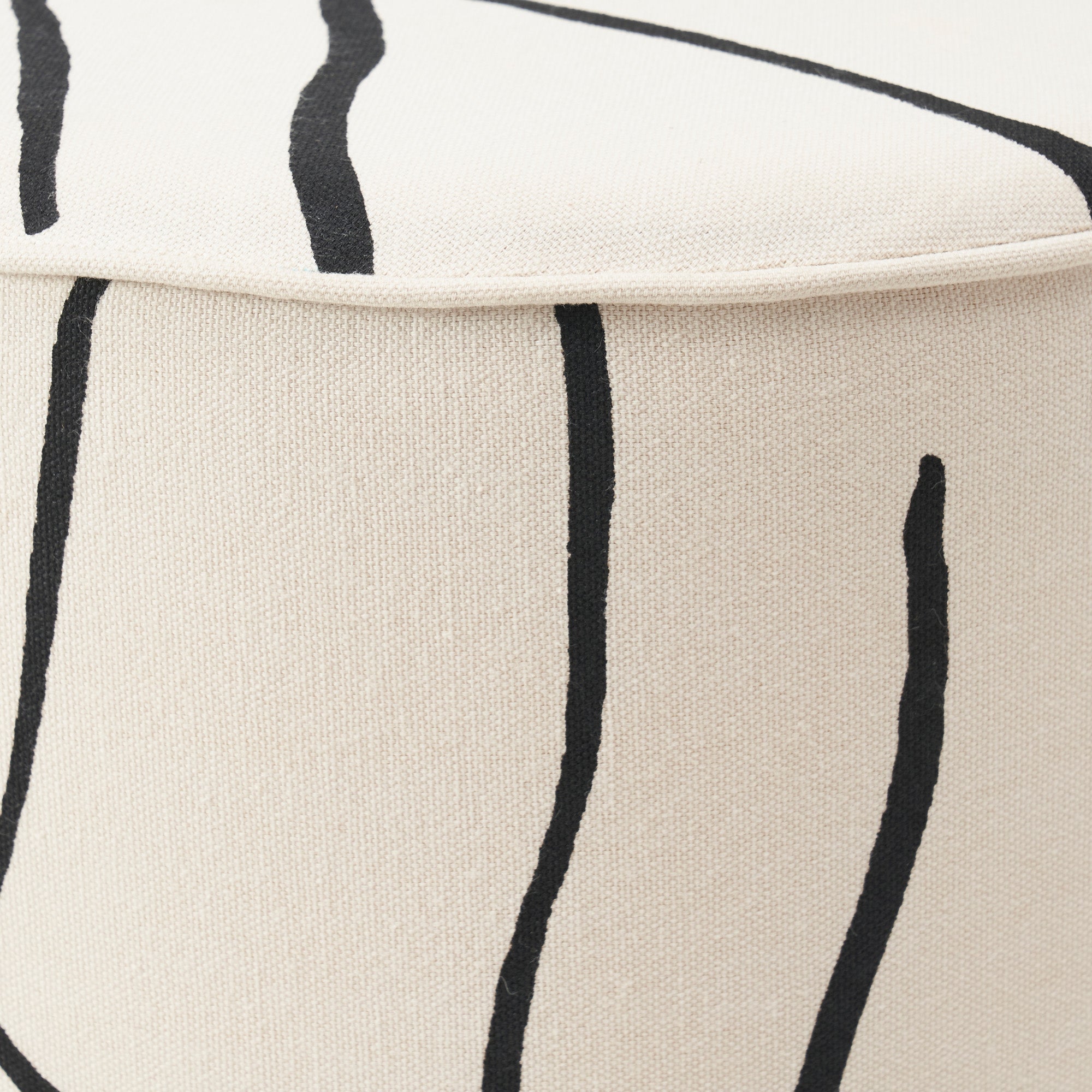 Abstract design leaps off the canvas and onto the stool to form this piece. Showcasing a cream finish and bold black lines along its cotton surface, it has unique qualities that envelops the home in a creative air. With cotton duck filling built within, it is soft enough to sit upon when the moment calls for it.