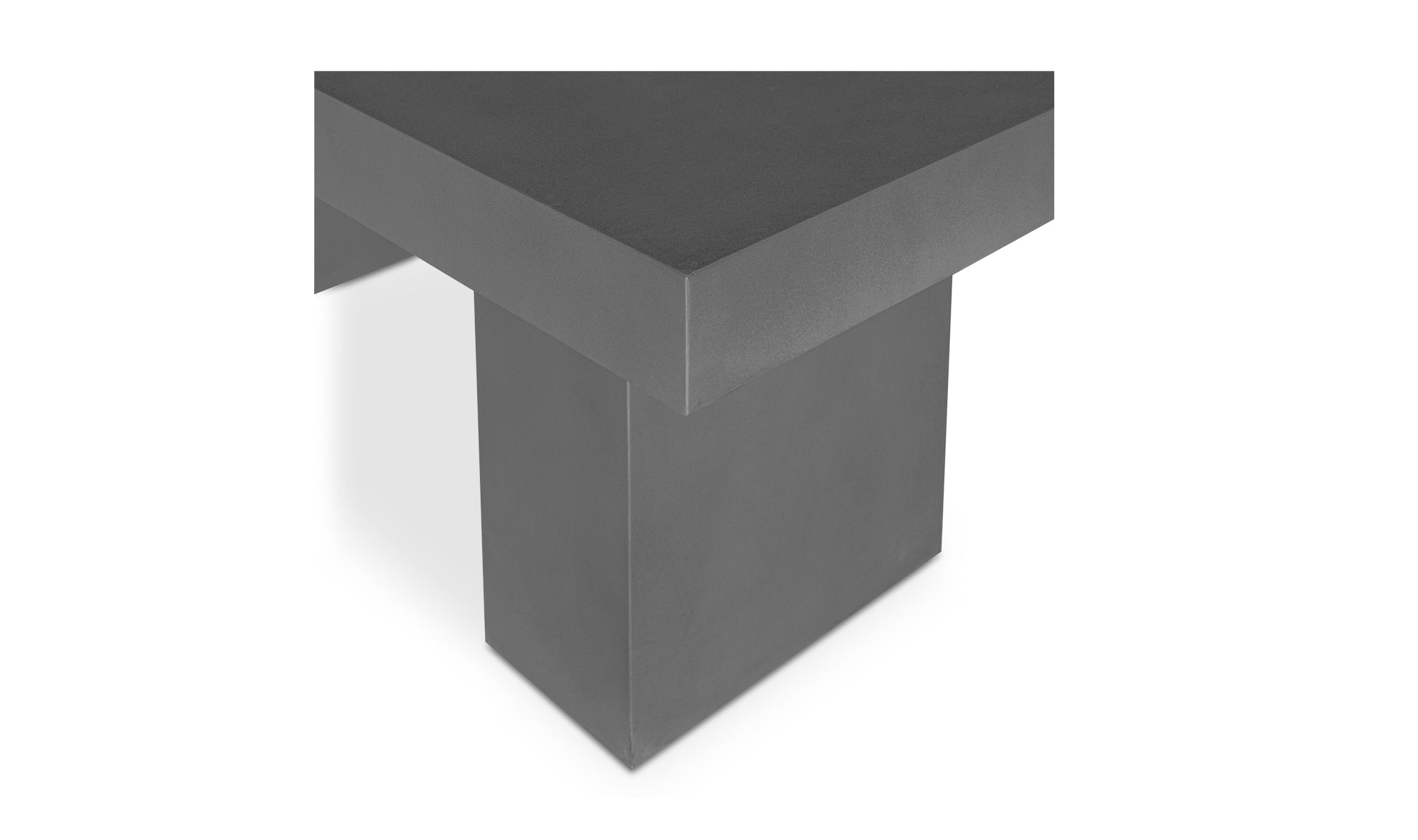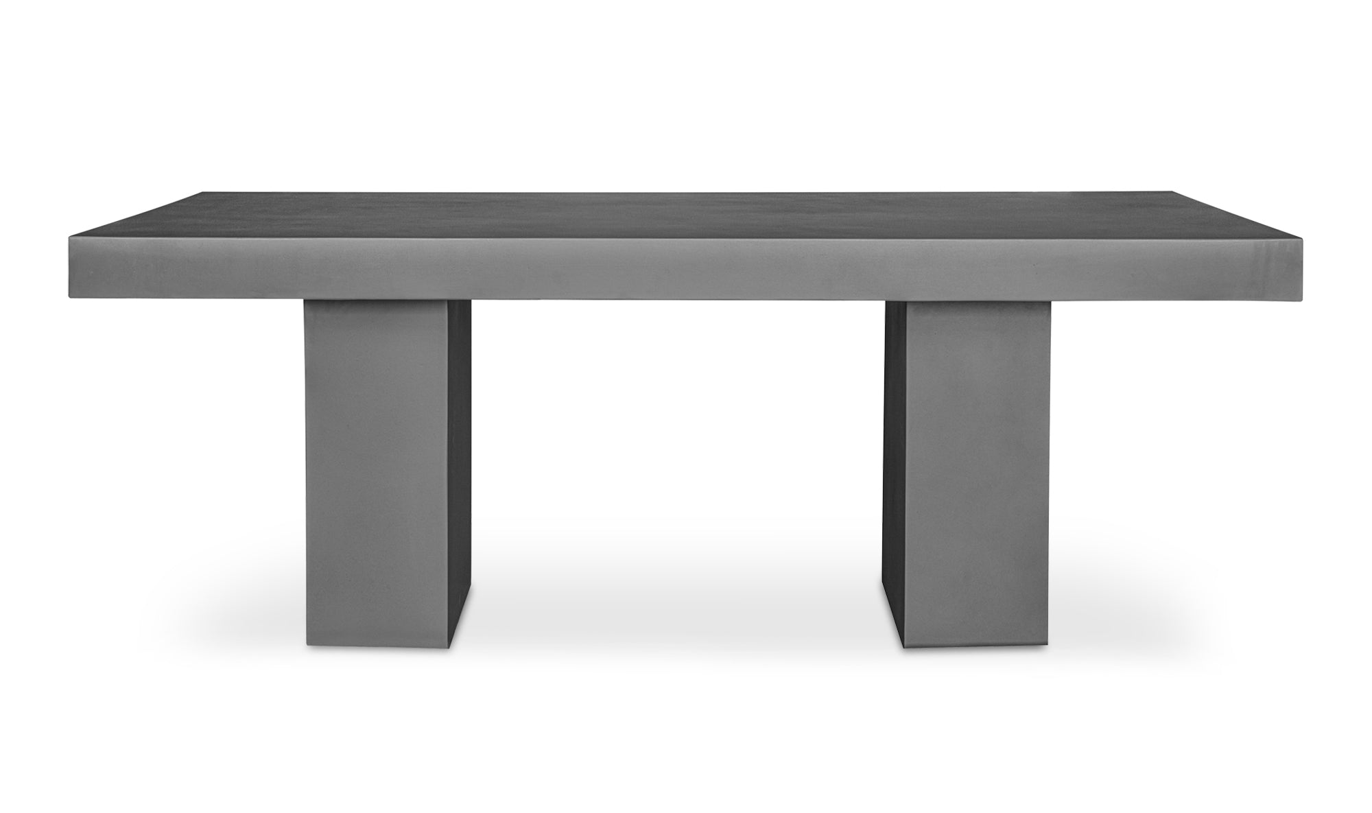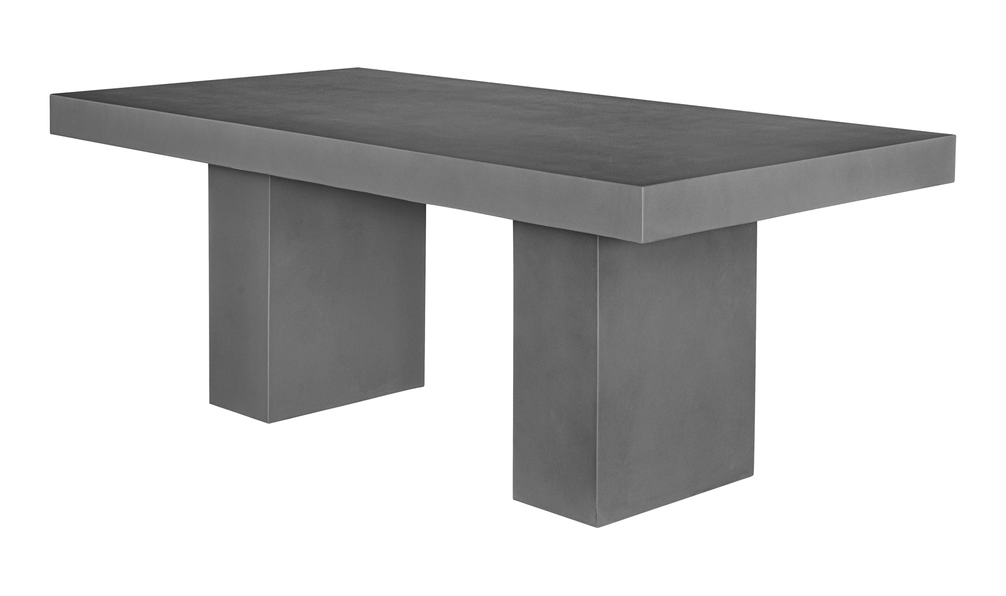 Our outdoor tables are made with a high quality concrete and fiber mix, to give them the cool, modern look you want, but keeping them light and movable. The Antonius Table boasts a strong rectangular design set on two large pillar legs.