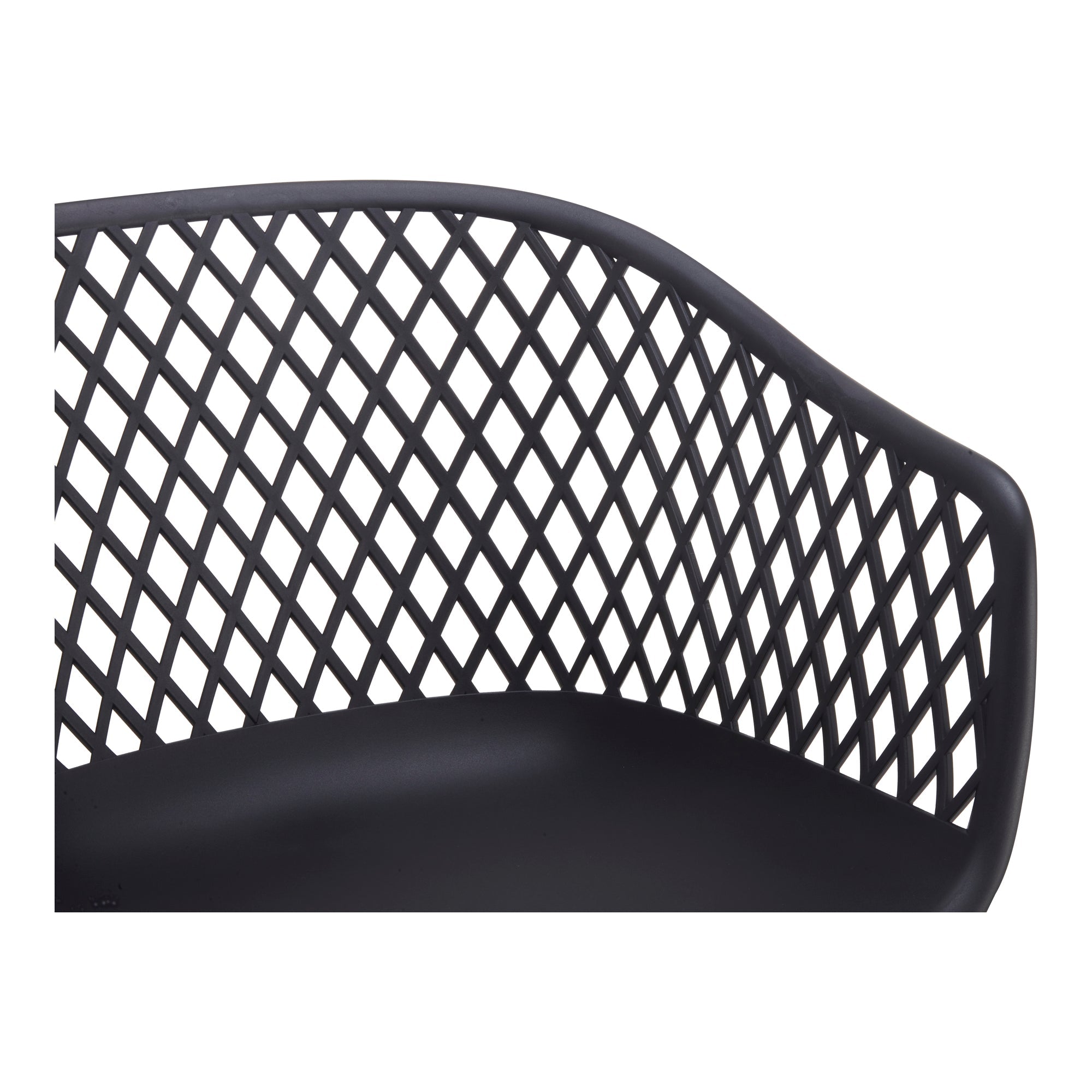 Take a seat in the stylish and comfortable Piazza Chair. Made with a durable polypropylene, this chair comes in several colors that will be sure to complement your outdoor design with its whicker backing and powder coated metal legs