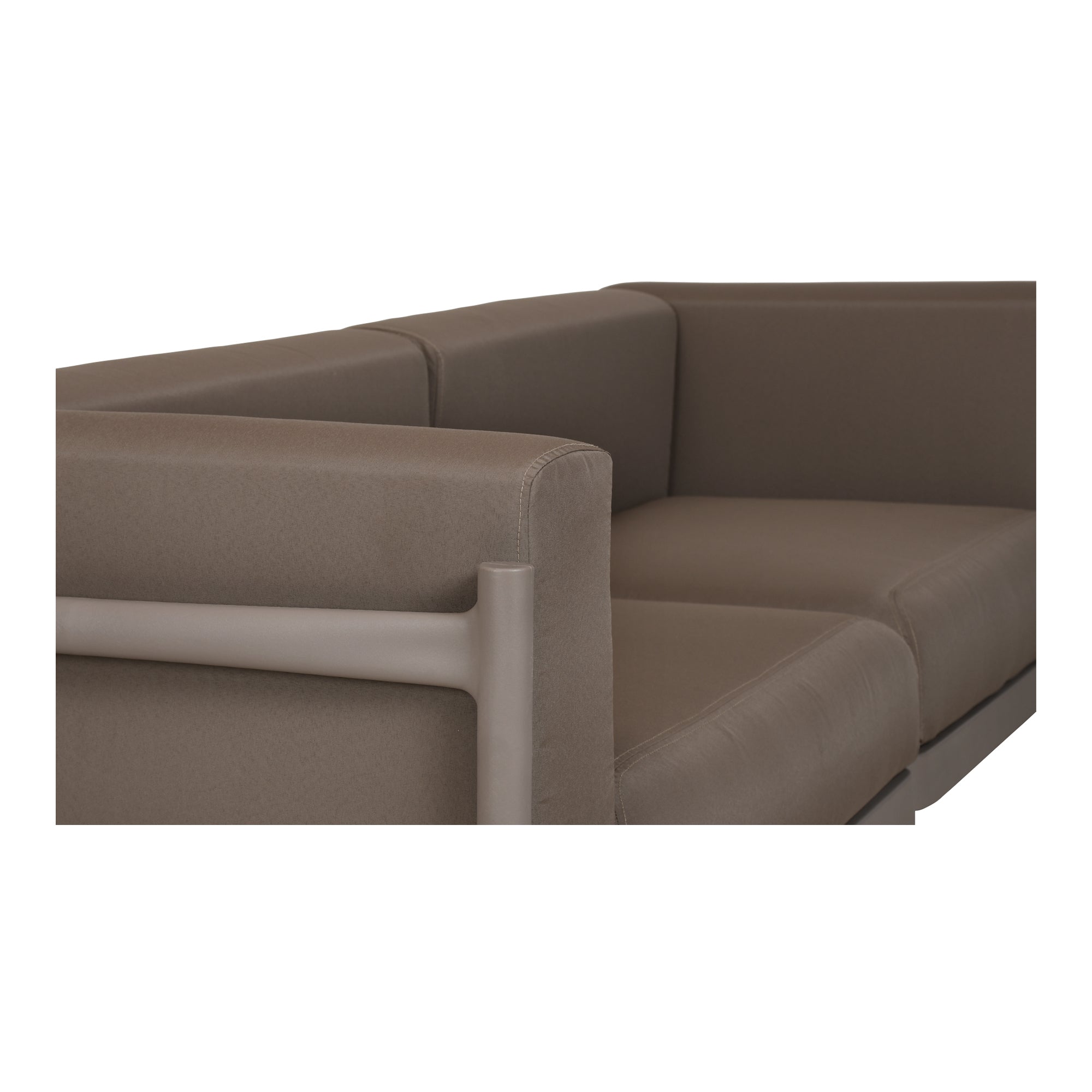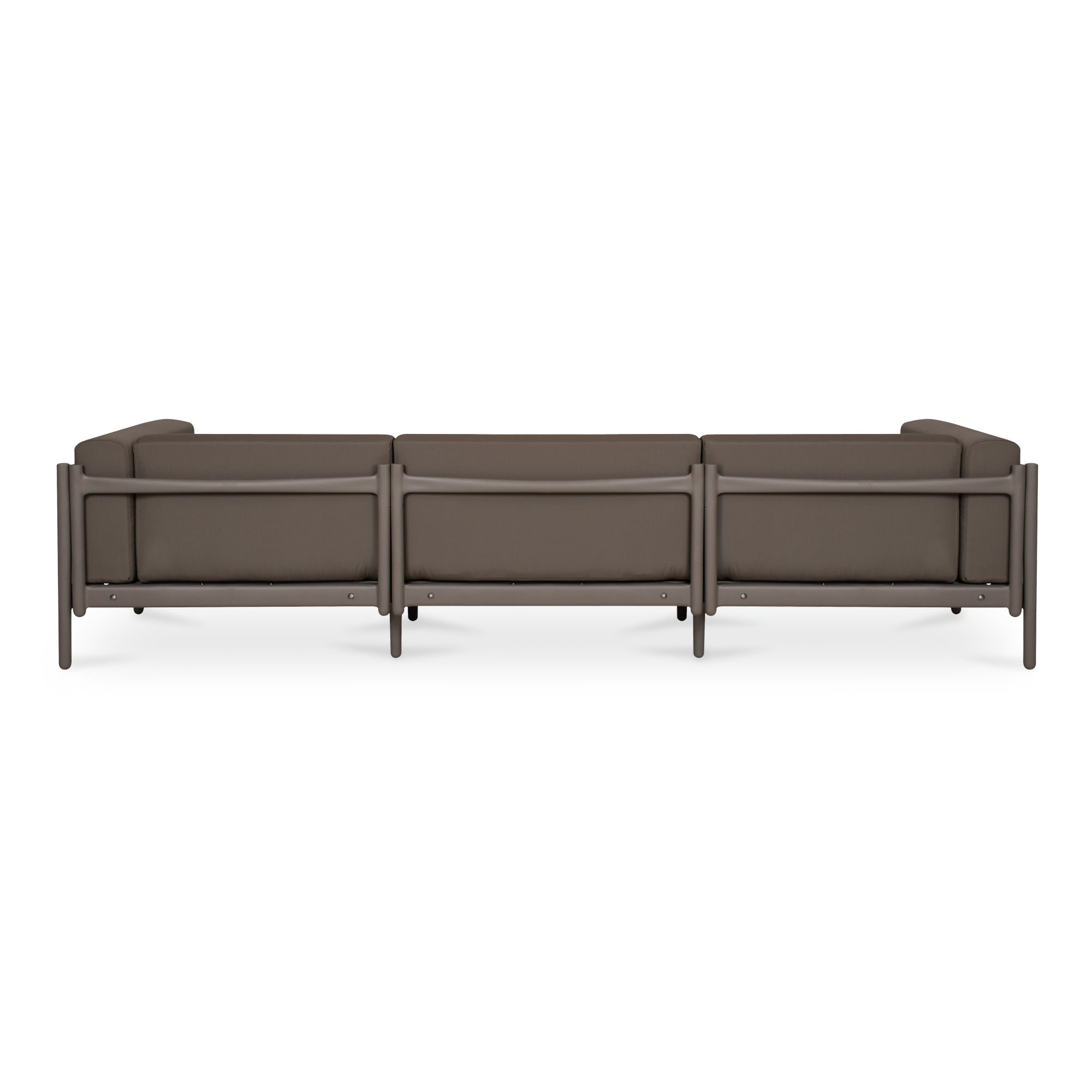 Crafted with a lightweight polypropylene frame and finished in a durable outdoor-safe polyester, the Suri outdoor 3-seat sofa is weather-ready. While the tonal color on the frame and upholstery adds a playful touch, the KD construction allows for easy assembly and transport.