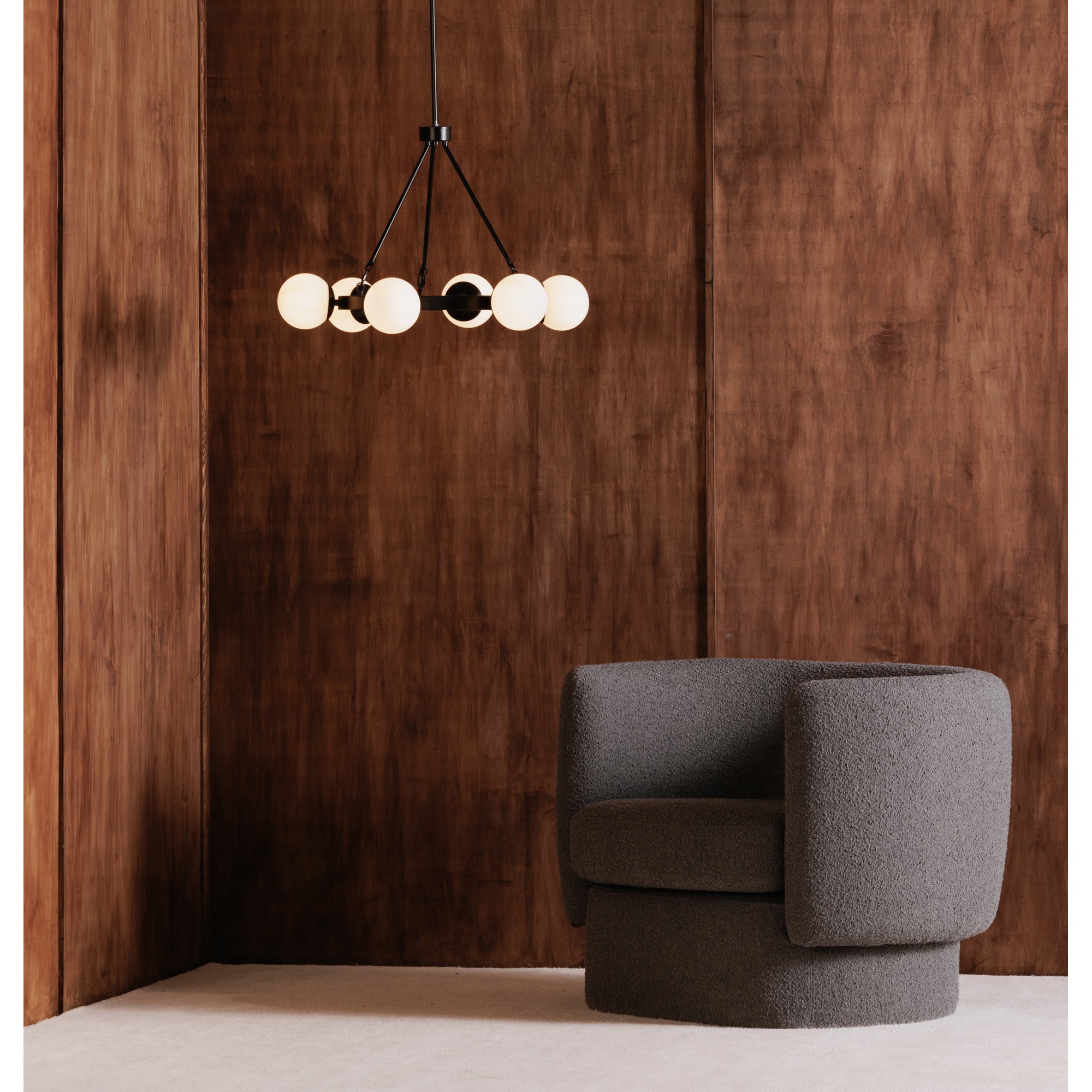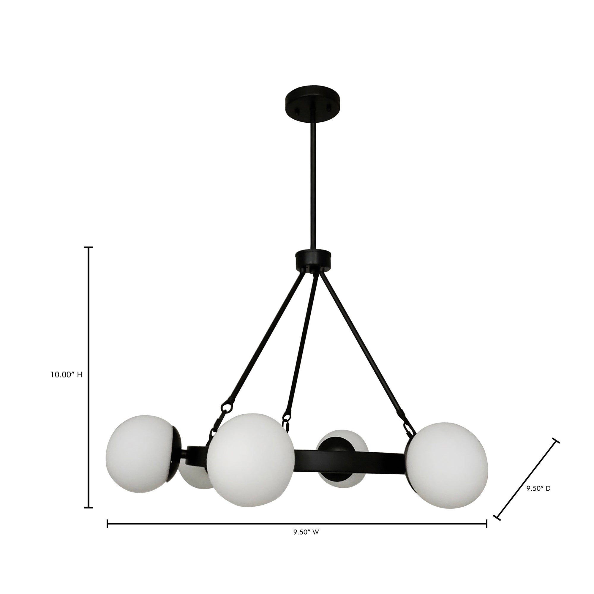 Vintage inspiration meets enchanting illumination in the sophisticated design of the Oaha pendant light. This captivating lighting fixture showcases a collection of beautiful globe bulbs effortlessly suspended from a gracefully crafted iron frame ring, evoking a sense of nostalgia and timeless elegance -- a carefully considered, visually stunning focal point.
