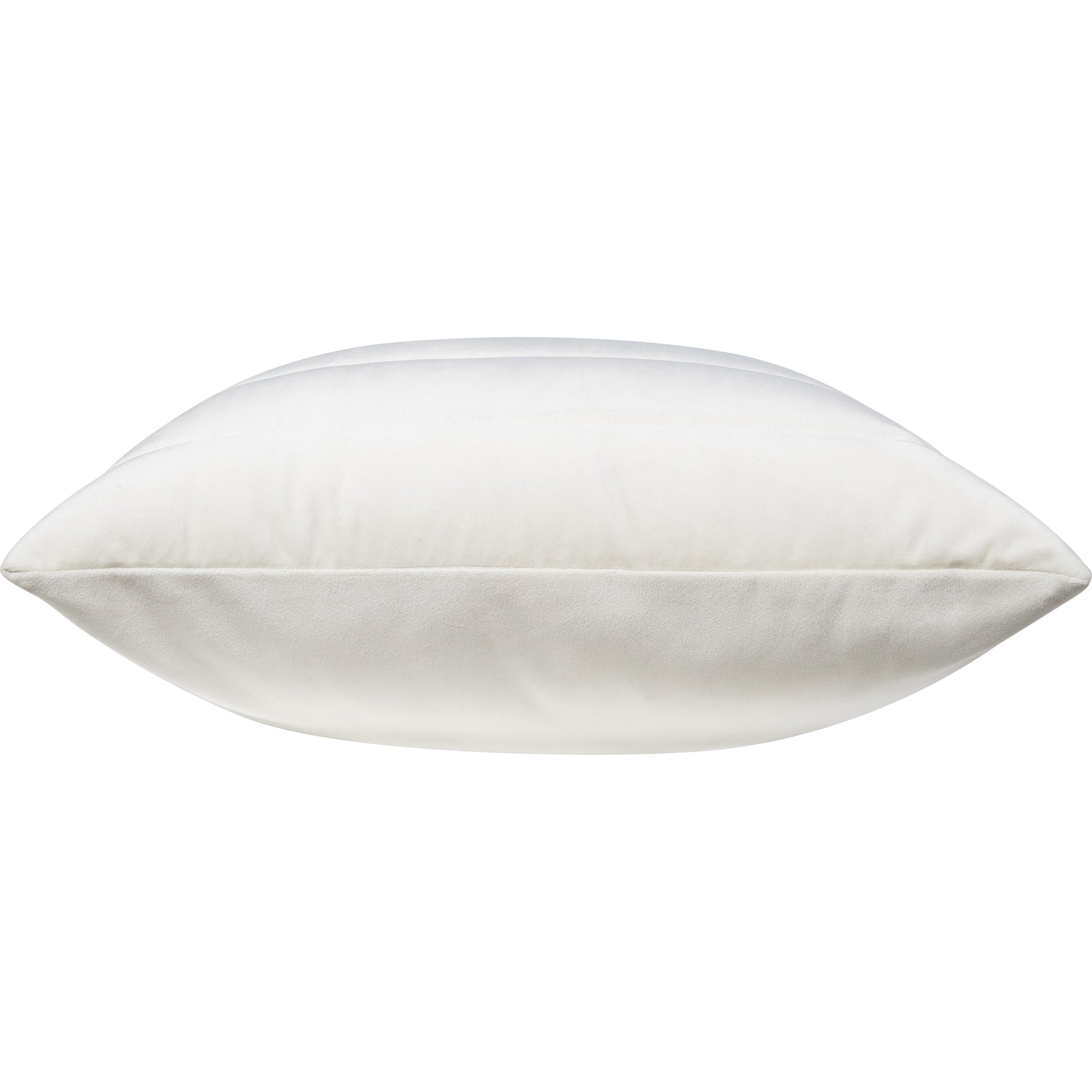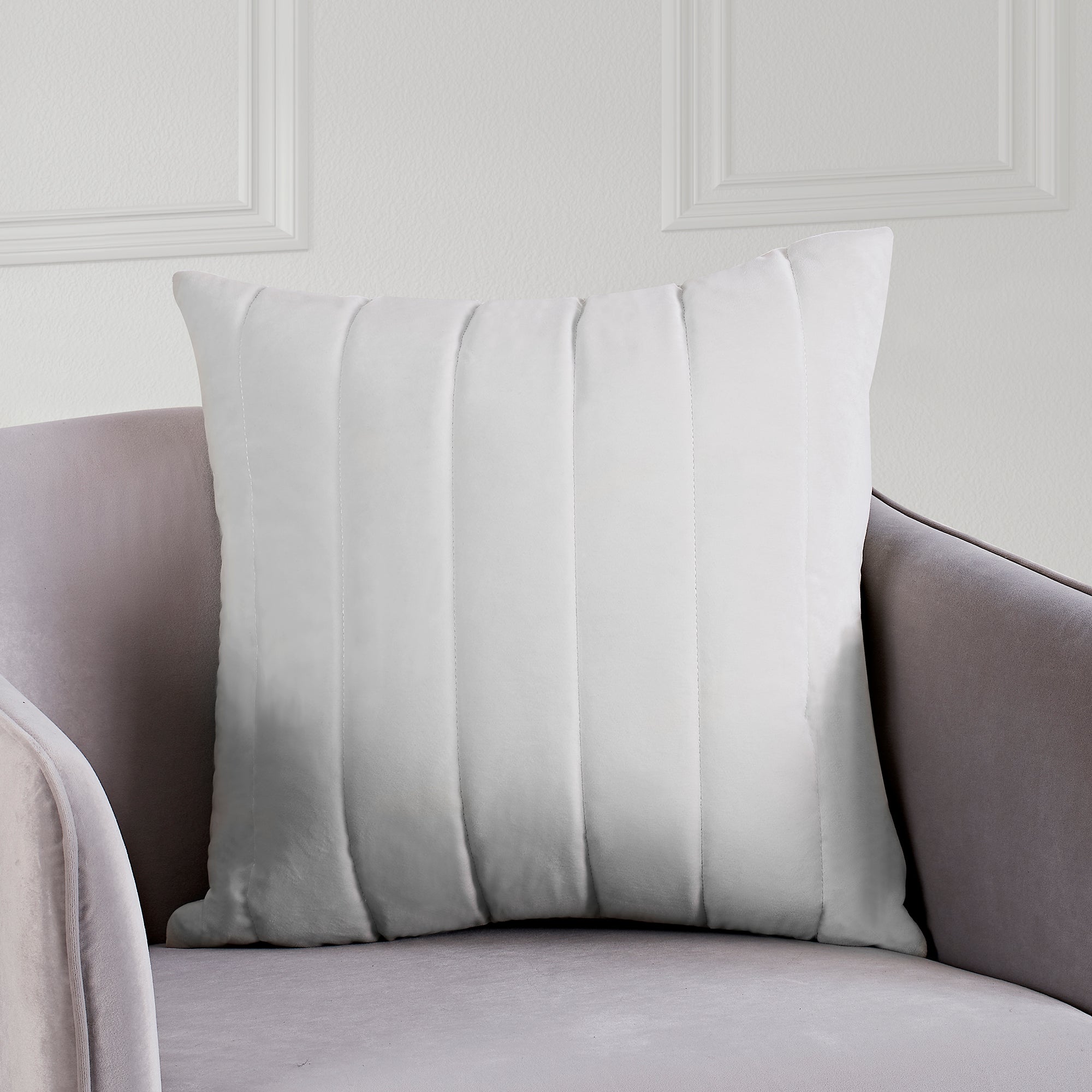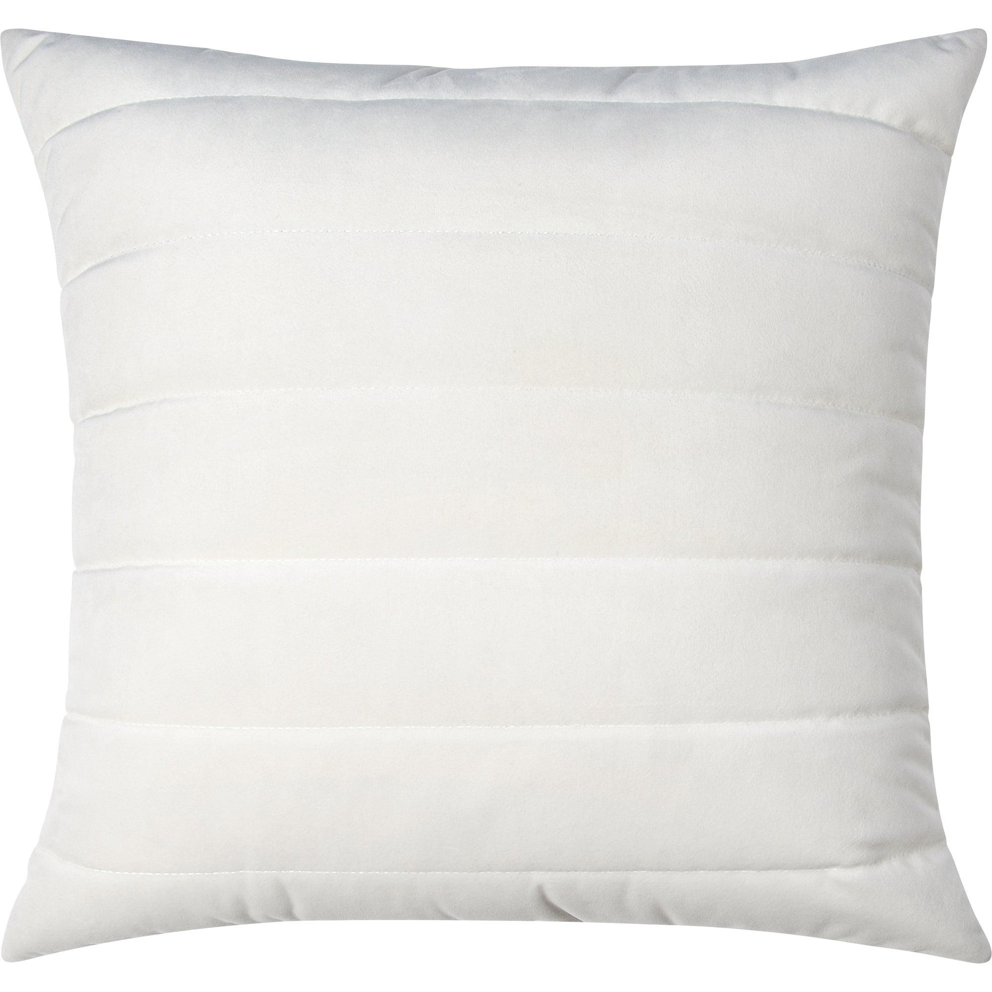 Ivory velvet fabric envelops the contemporary living space with a regal quality through this pillow design. Featuring subtle quilted stripe details, it contains character while maintaining simplicity. With a feather-down filling set inside its 20 by 20-inch form, it provides support and style equally.