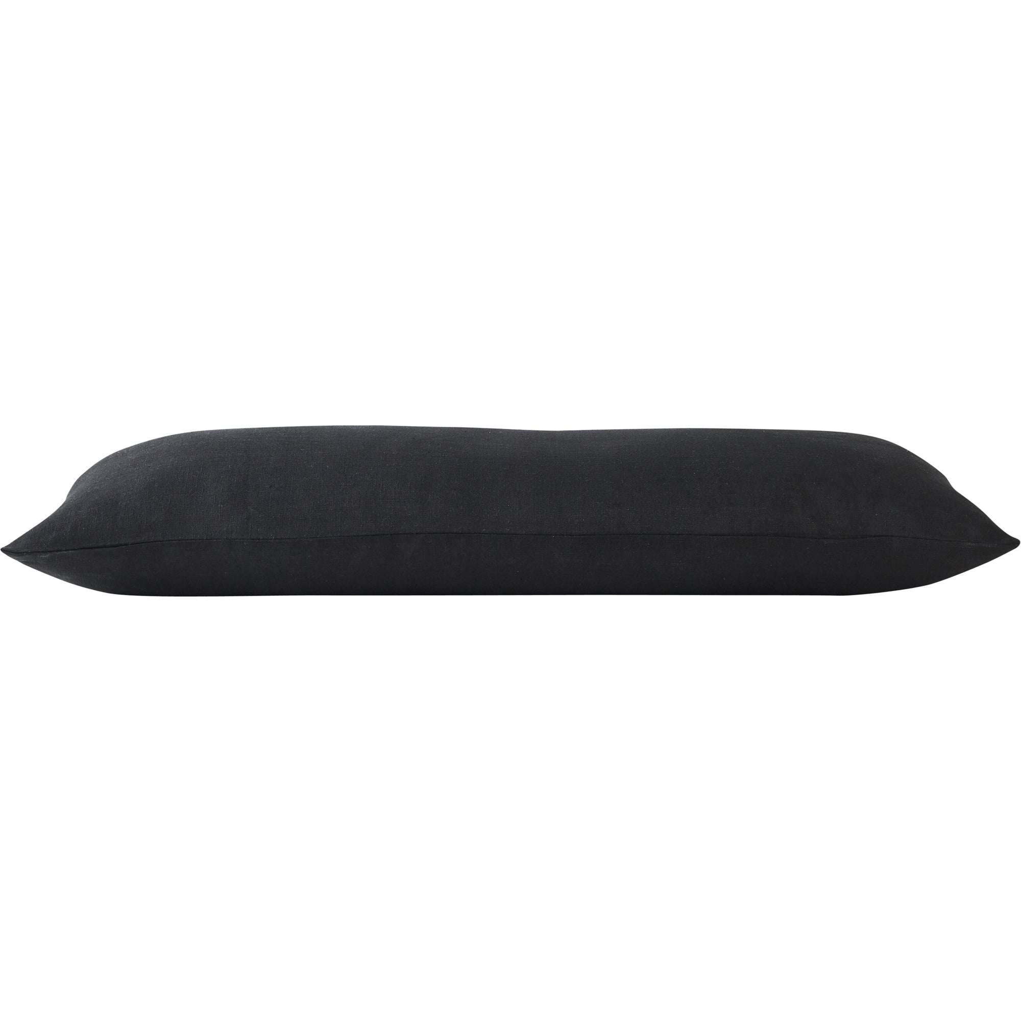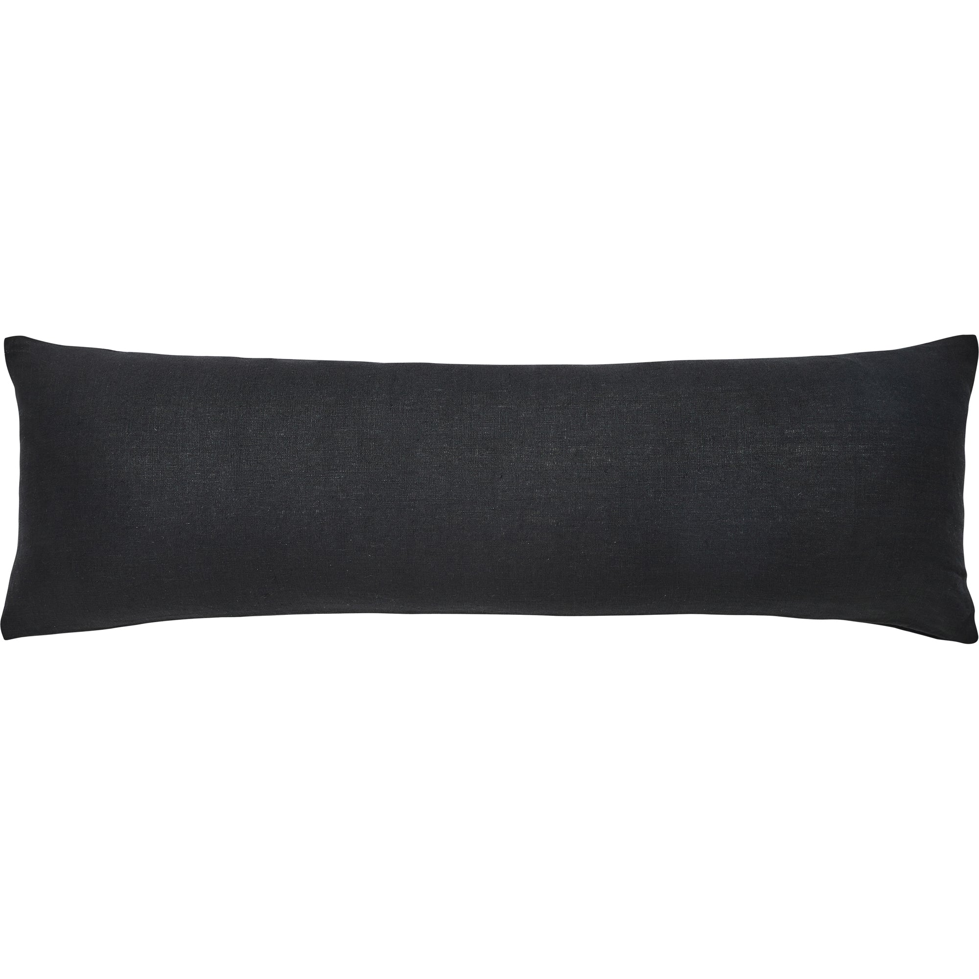 This lumbar pillow's basic black construction makes a bold impression in the industrial style interior. Lengthy in structure, it adds versatility to the decor arrangement with ease. Made from 100 percent linen, its sleek tone is softened through its natural fabric.