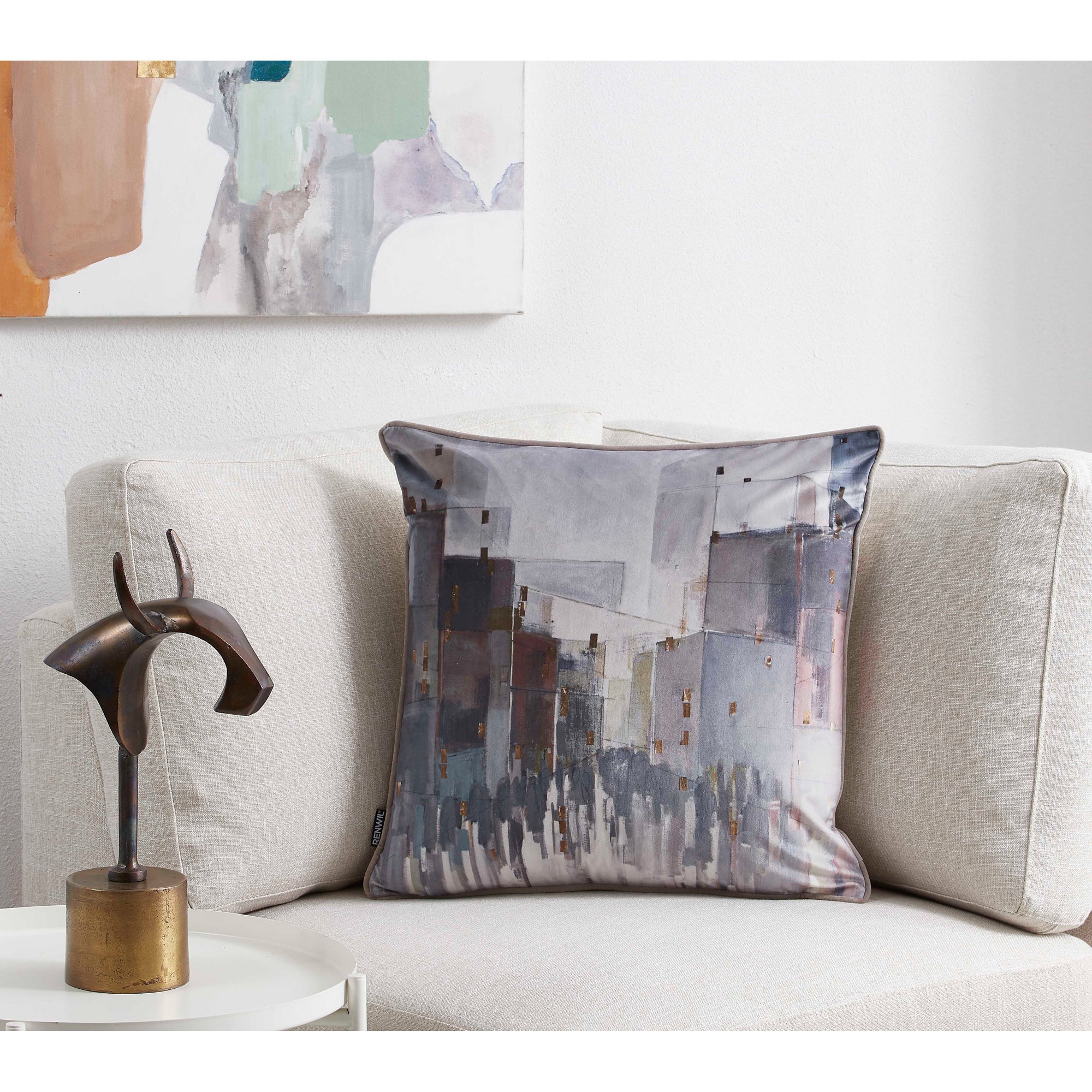 The bustling energy of city streets is captured and transported to the contemporary living space through this pillow design. While the muted tones are pleasing to the eye, the soft feel of velvet is pleasing to the touch. Set solo or paired with solid-colored accent throw cushions, it completes the stylish appeal of the interior as a whole.